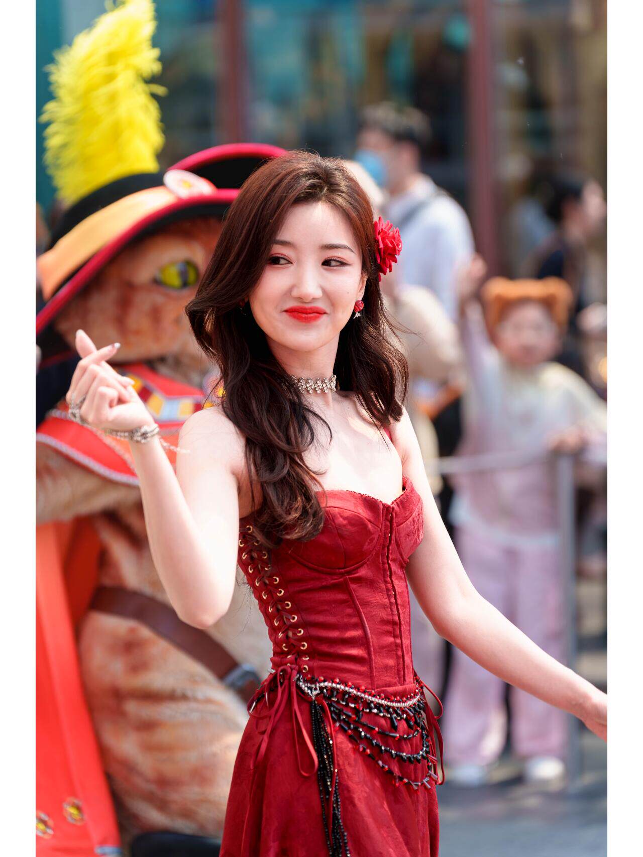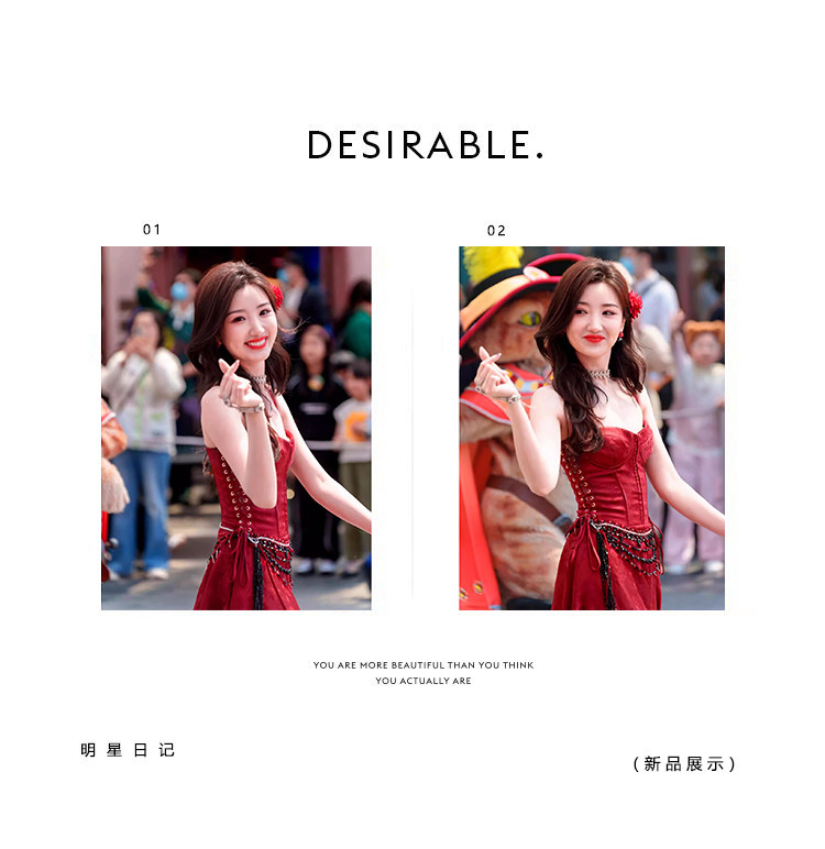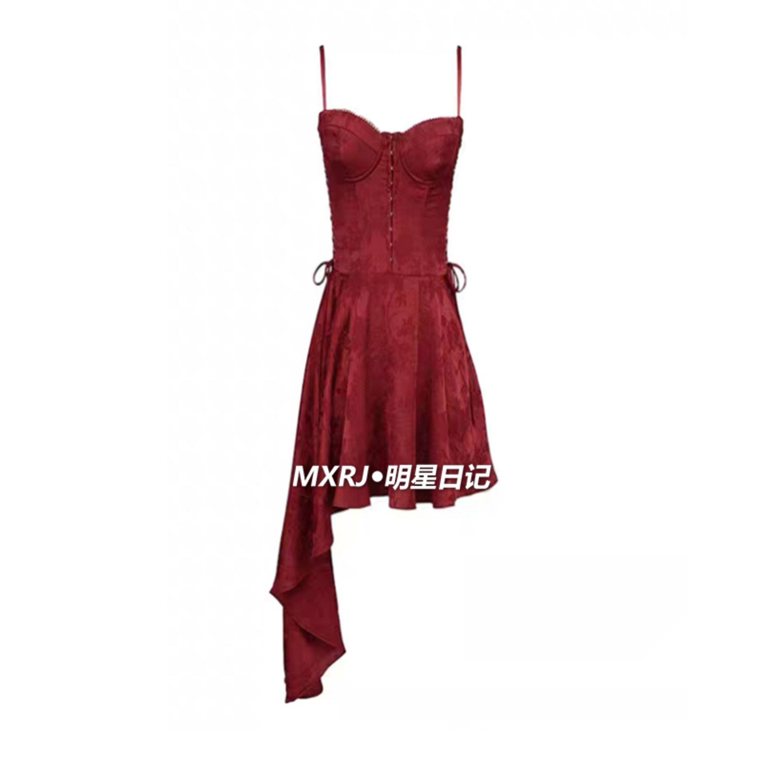 Mao Xiaotong's Same Style Retro Palace-Style Red Strapless Dress with a High-End Feel, Waist-Cinching and Slimming Long Dress for Summer