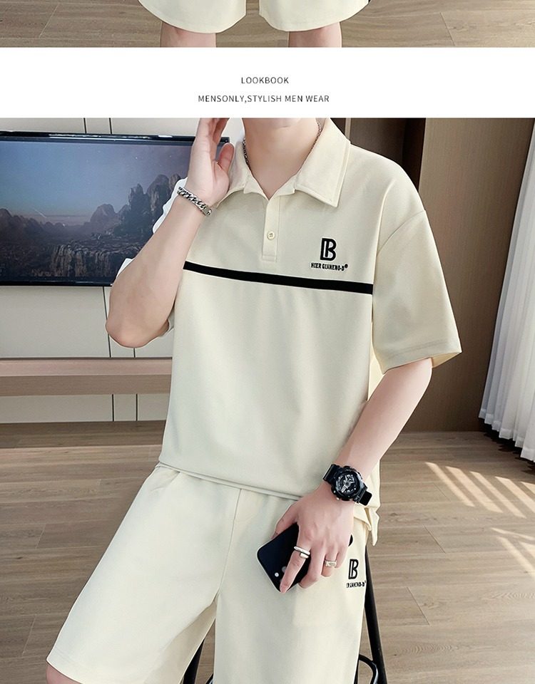Lapel Short-Sleeved Suit for Men, Summer Trendy High-End T-Shirt Paired with a Handsome Casual Men's Polo Shirt