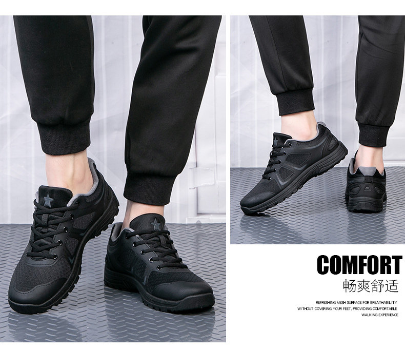 Men's and Women's Spring Military Training Shoes, New Physical Fitness Shoes, New Style Summer Breathable Training Shoes, Wear-Resistant Labor Protection Black Training Shoes for Running