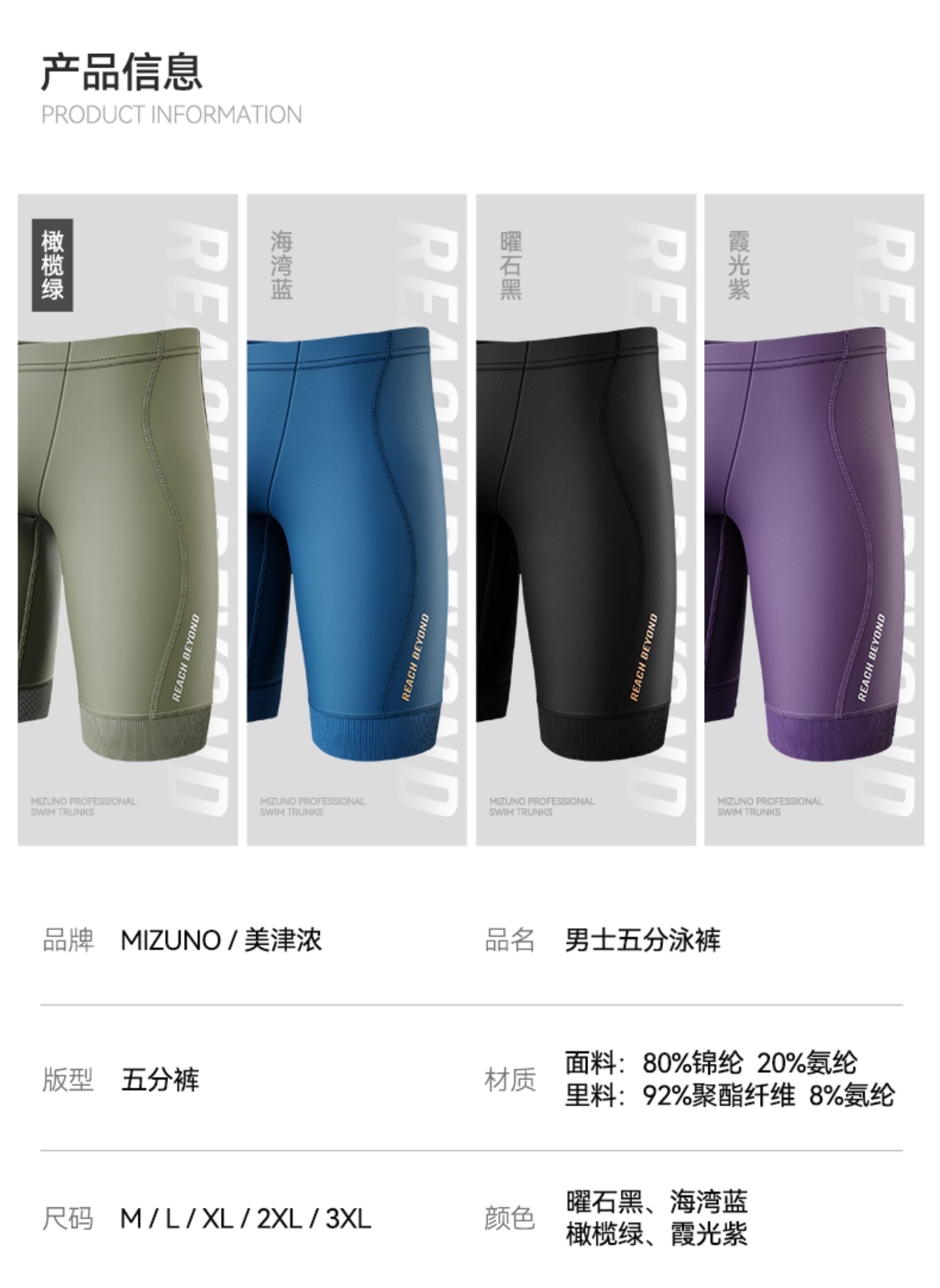 Mizuno Men Swimming Trunks 2025 New arrival Professional Training Quick-drying Anti-chlorine Racing Half Length Swimming Trunks Men's Swimming Trunks
