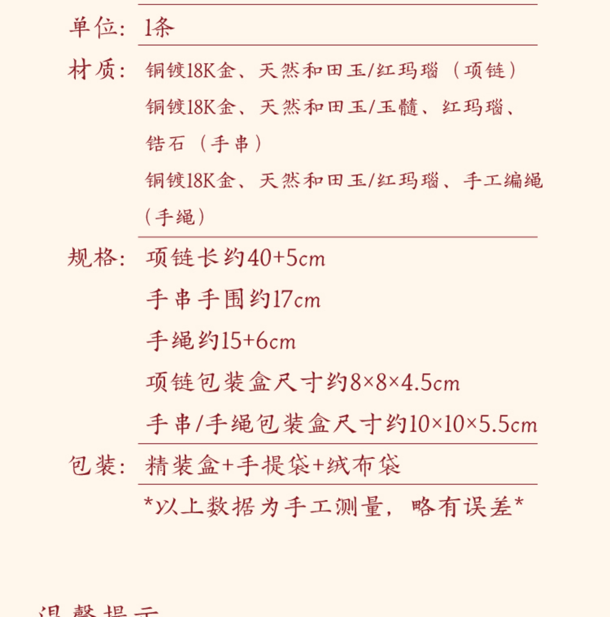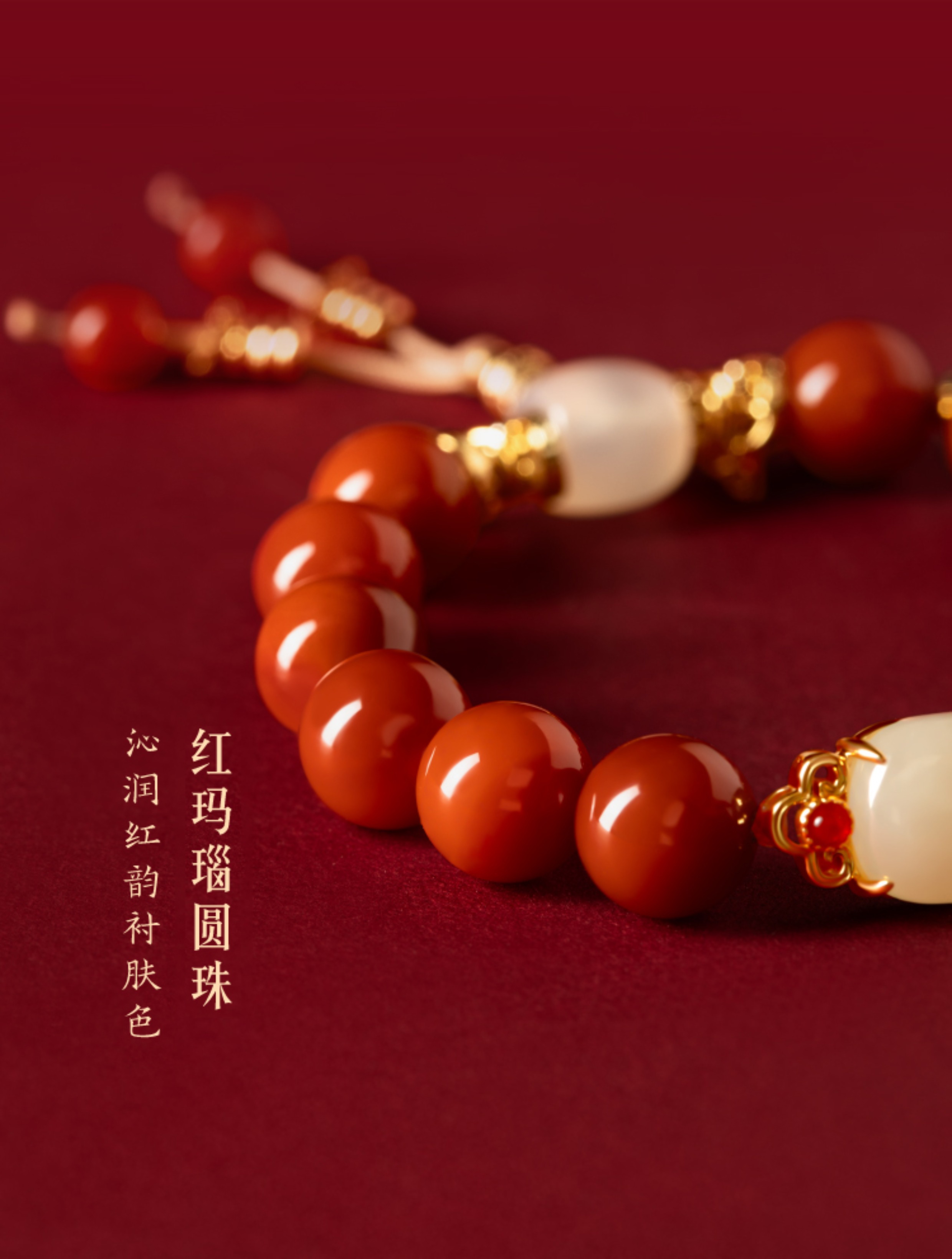 Forbidden City Taobao|Bai Fu Hetian Jade No-Design Pendant Bracelet Necklace Red Agate Bead Bracelet New Year Birthday Gift