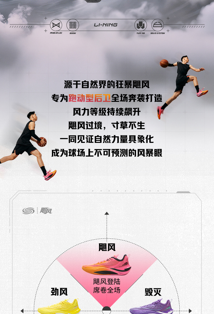 Li-Ning Hurricane | Low-Top Basketball Shoes for Men, New Model, Supportive, Stable, Breathable, Non-Slip, Wear-Resistant, Supportive, Practical Sports Shoes