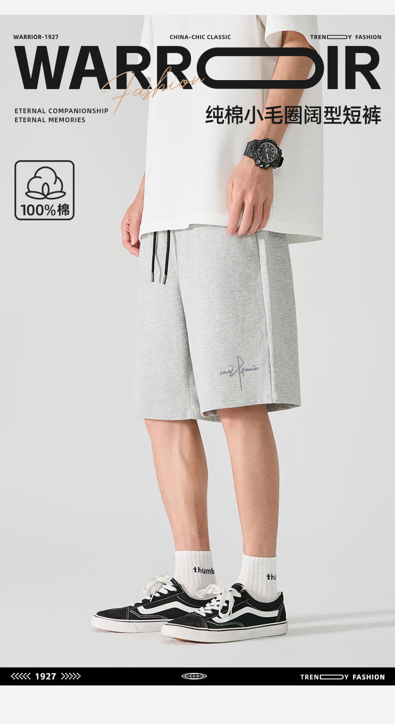 Pull-Back Design Pure Cotton Shorts for Men 2025 New Summer Trendy Brand Mid-Length Shorts Loose Casual Pants
