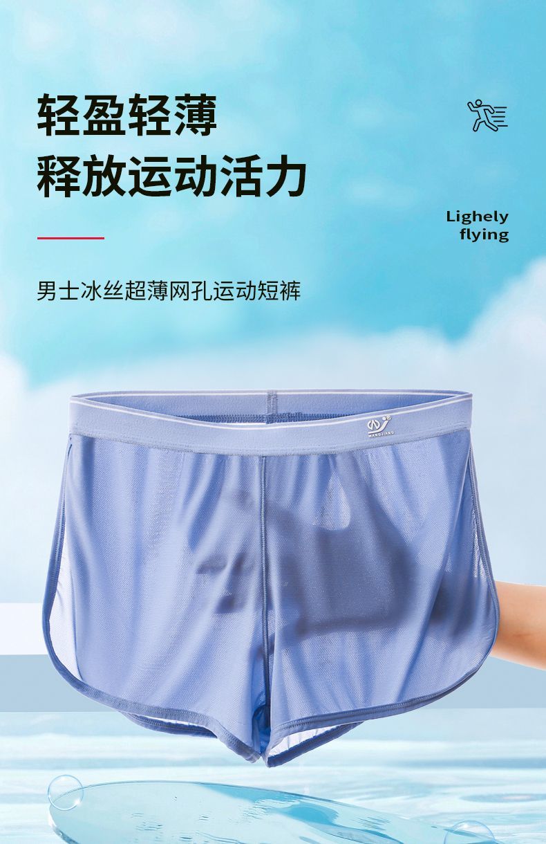 Men's Boxer Briefs Ice Silk Summer Ultra-Thin Mesh Sexy Transparent Breathable Low-Rise Four-Corner Shorts