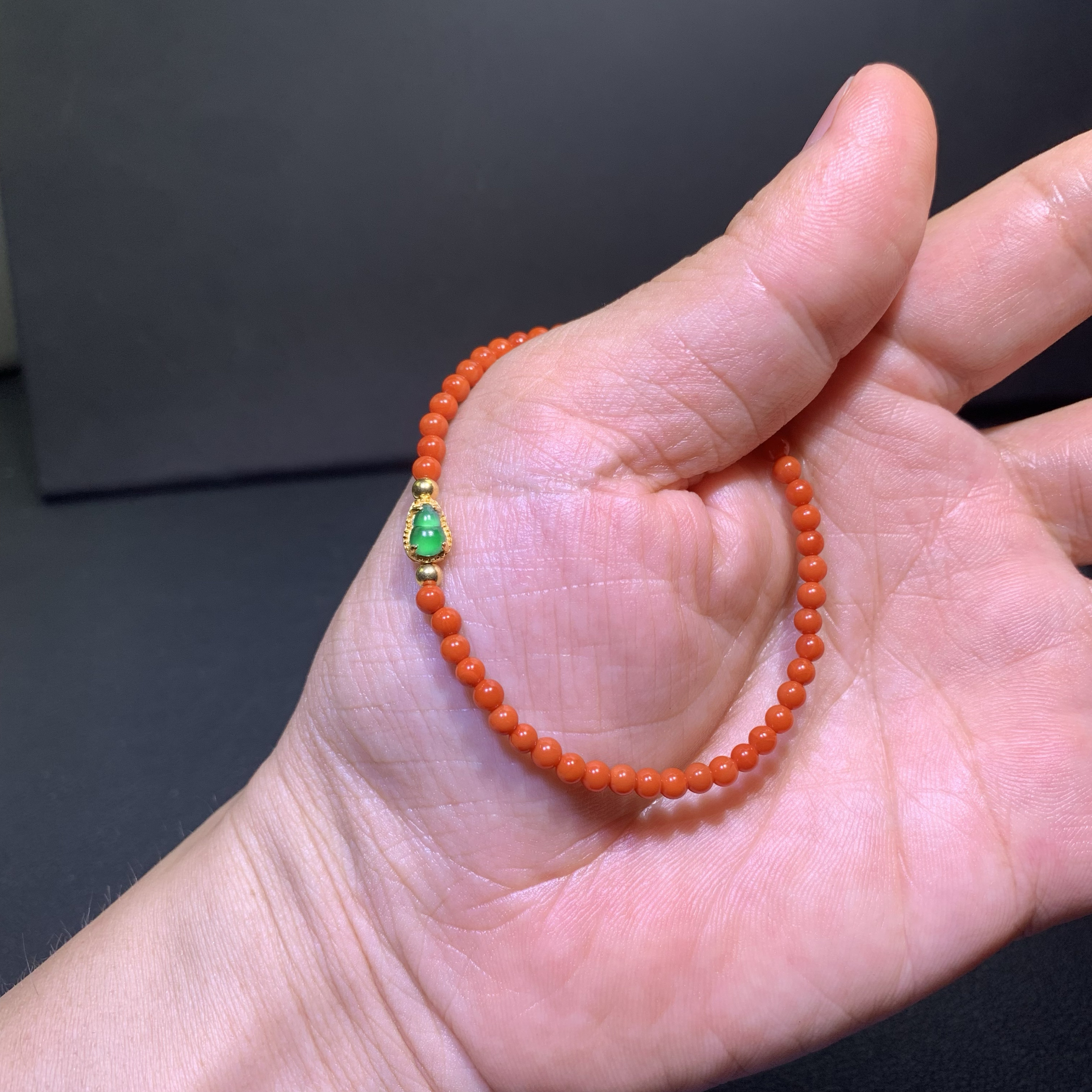 Natural A-Grade Jade High Ice Light Green Gourd-Shaped Bracelet with Southern Red Jade, Chinese Style, Elegant Women's Small Jewelry, Small Rice Bead String