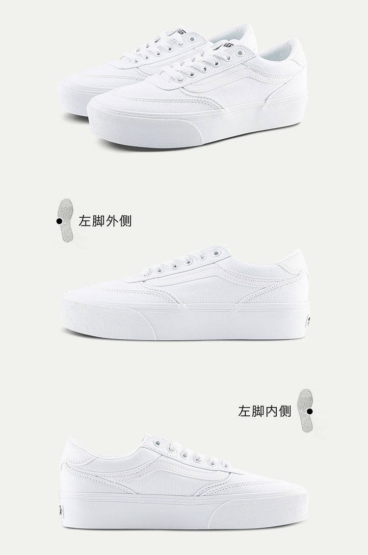 Vans Official Brooklyn Ls Platform White Shoes Thick-Soled Women's Shoes Canvas Shoes