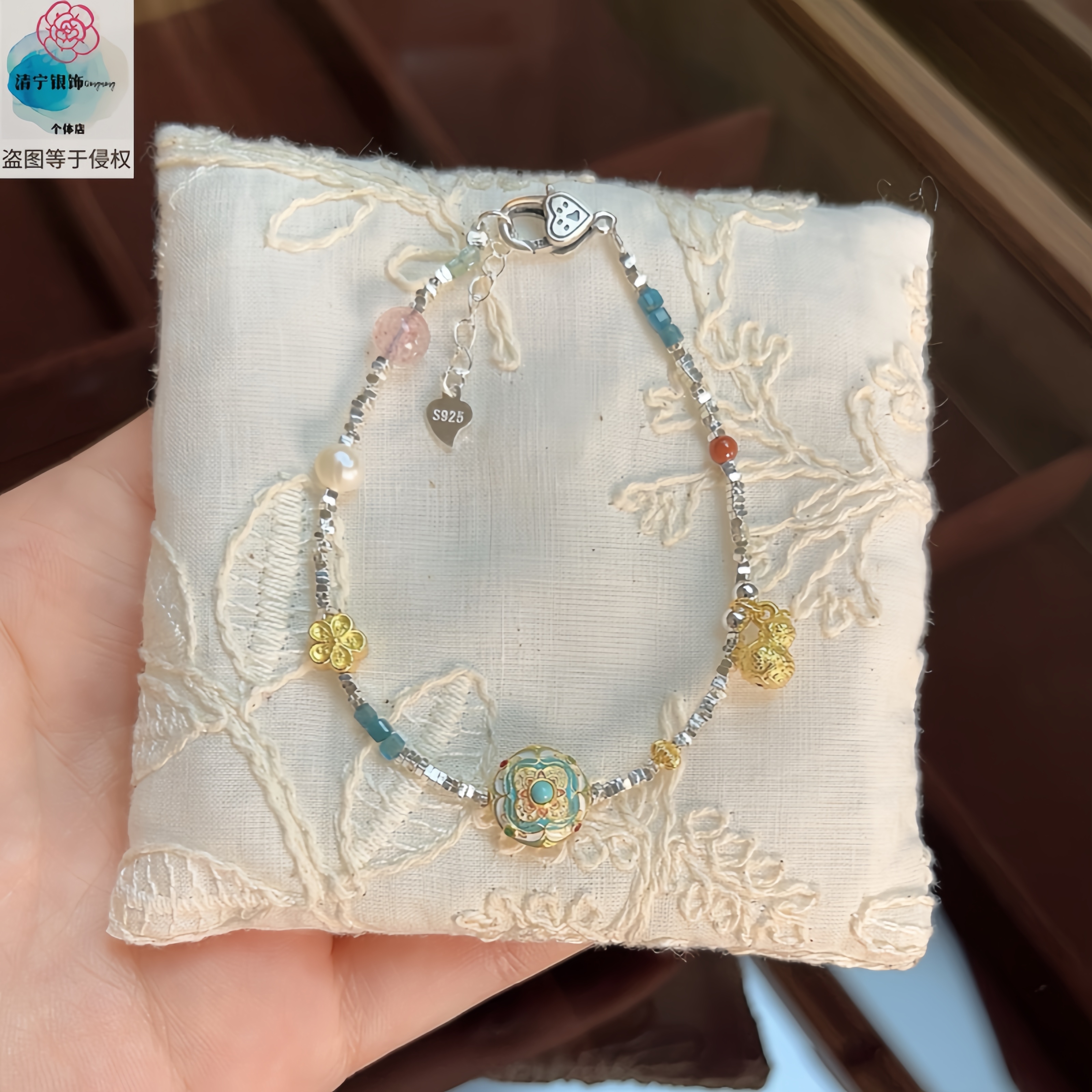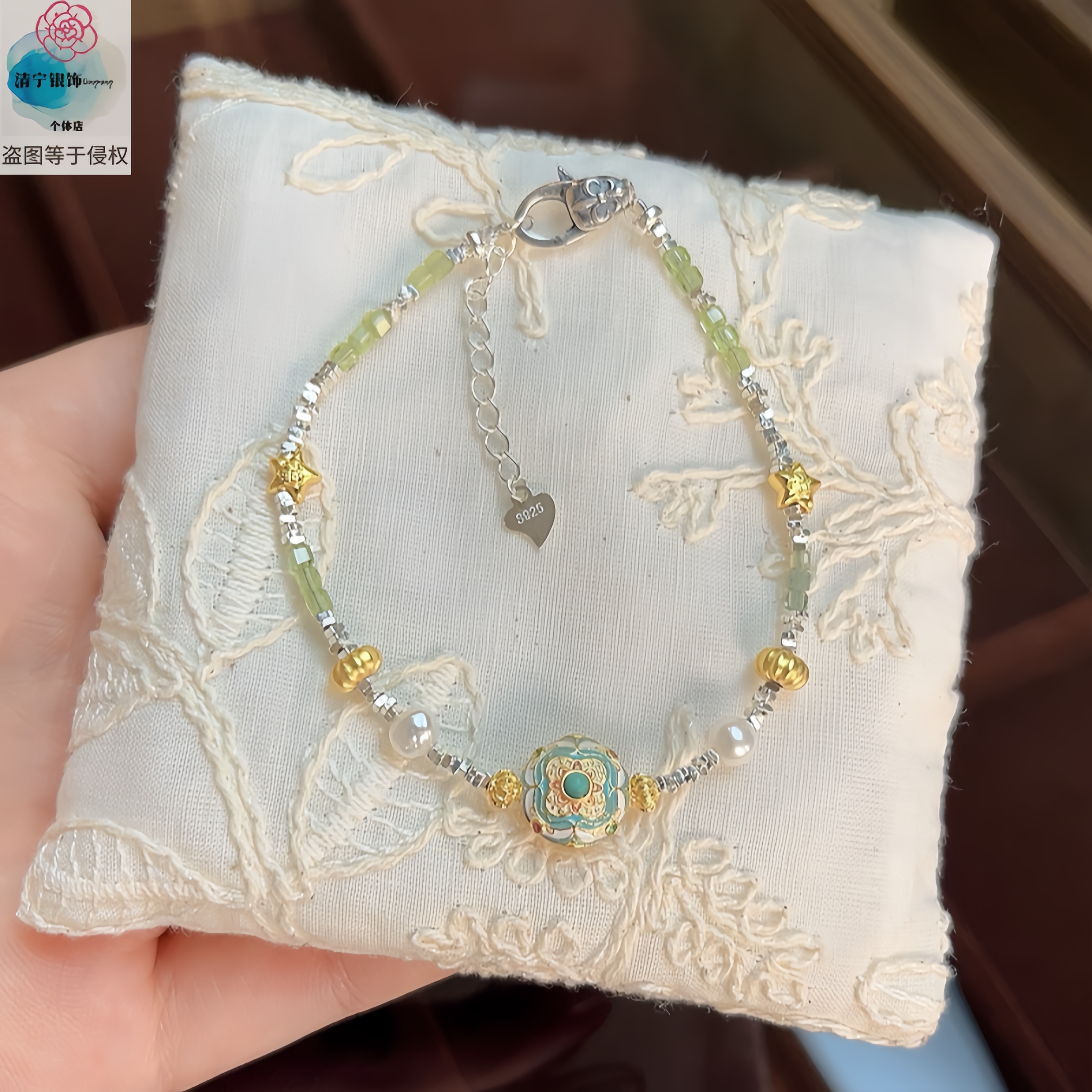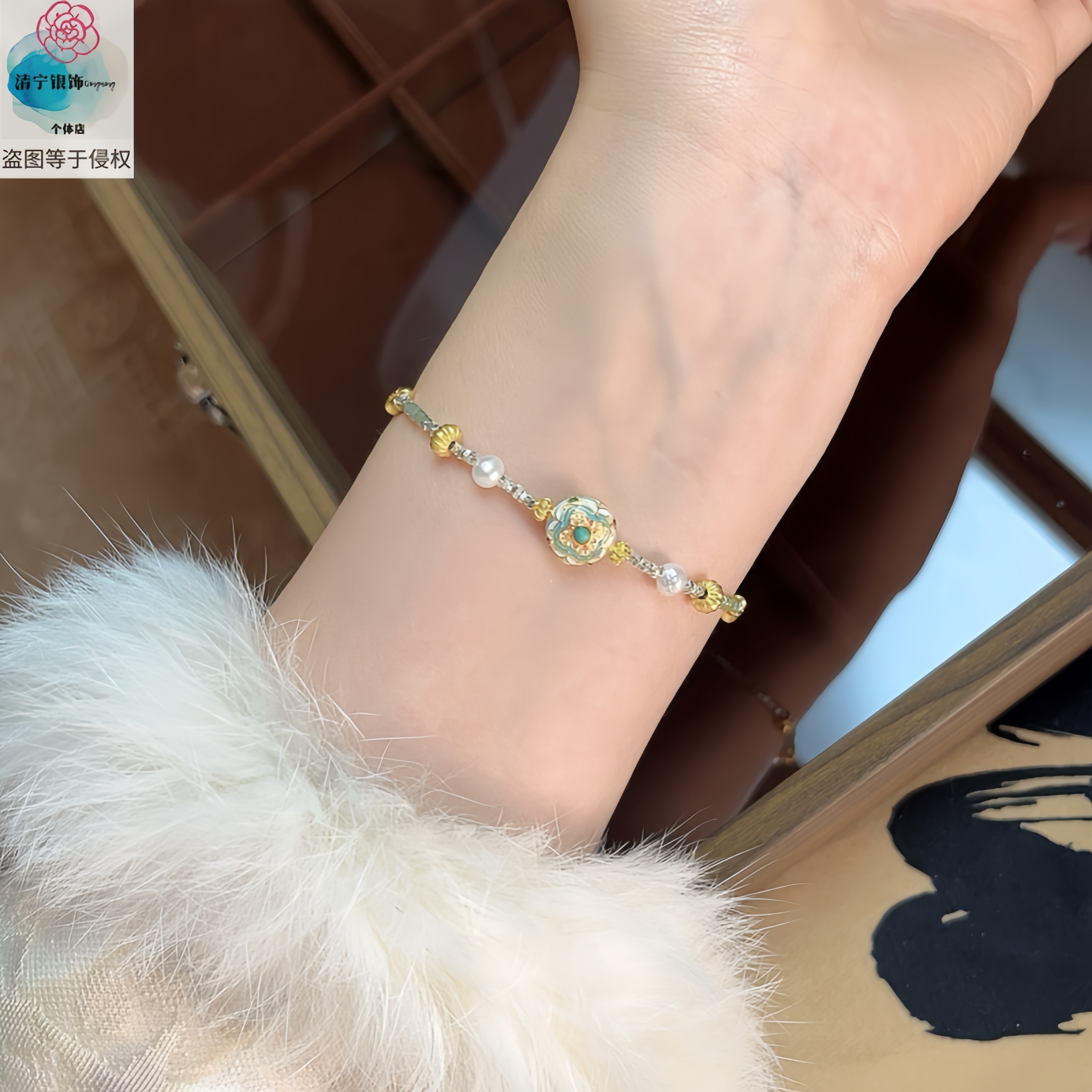 「兰」 National Style New Chinoiserie Broken Silver Enamel 925 Sterling Silver Versatile Niche Bracelet as a Gift for Your Girlfriend