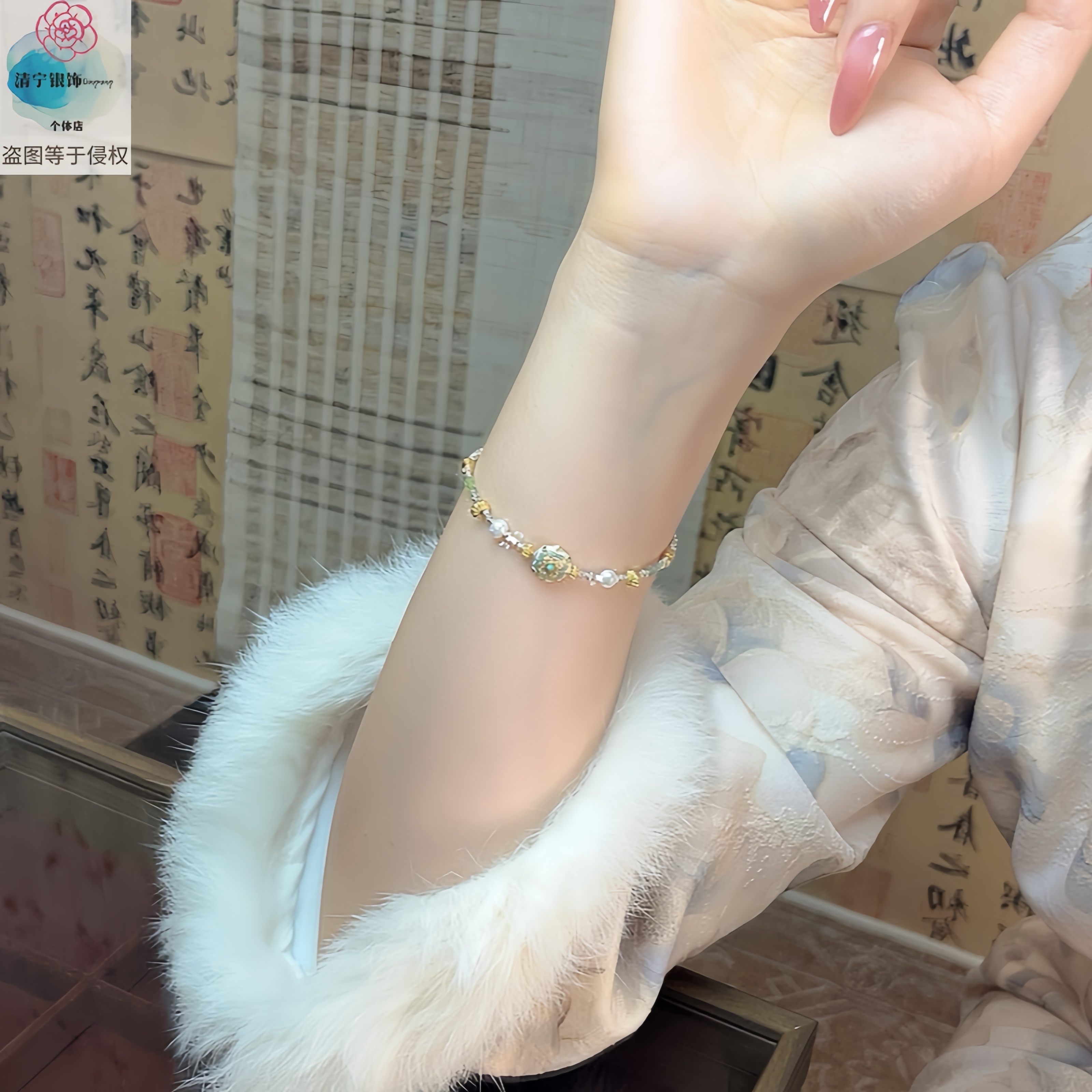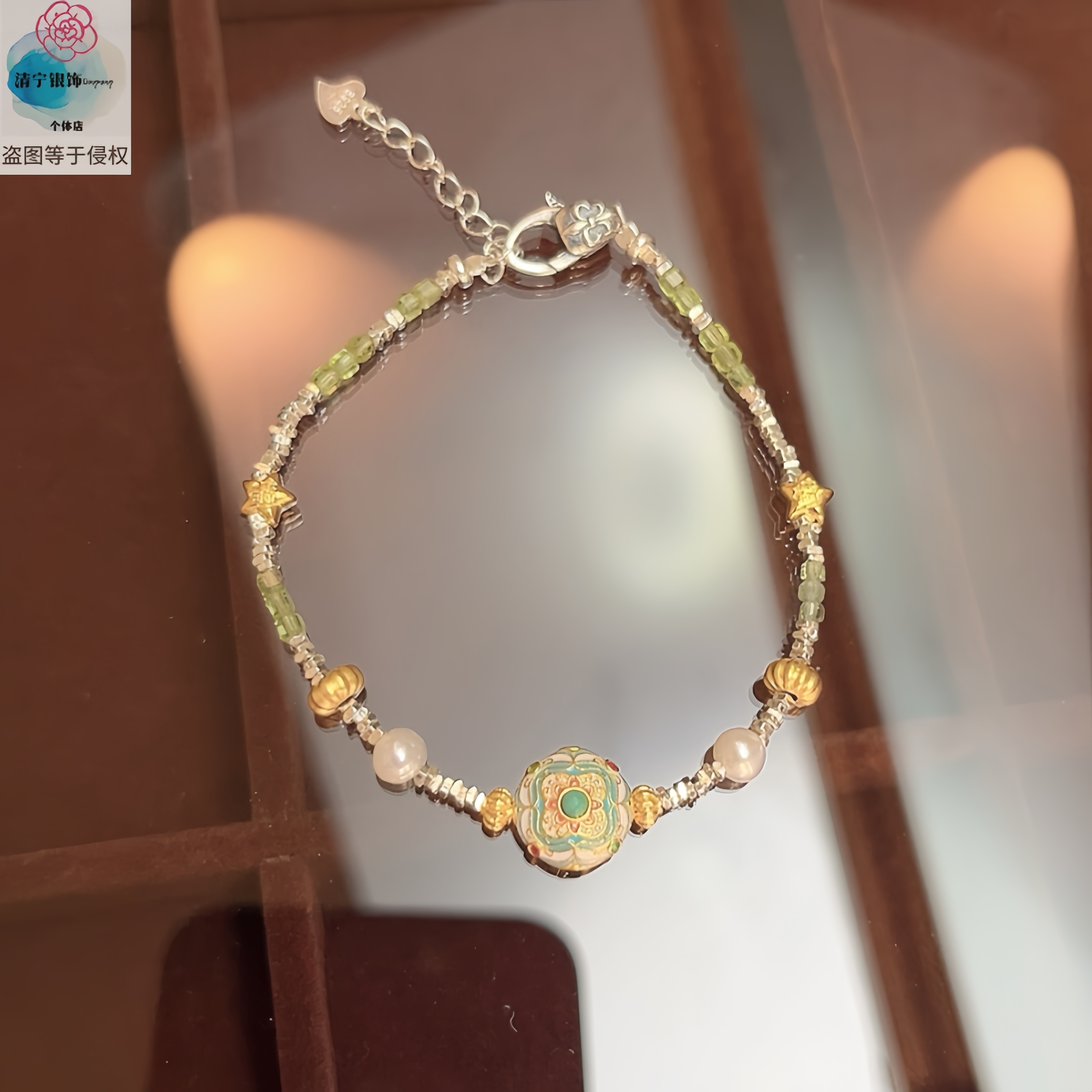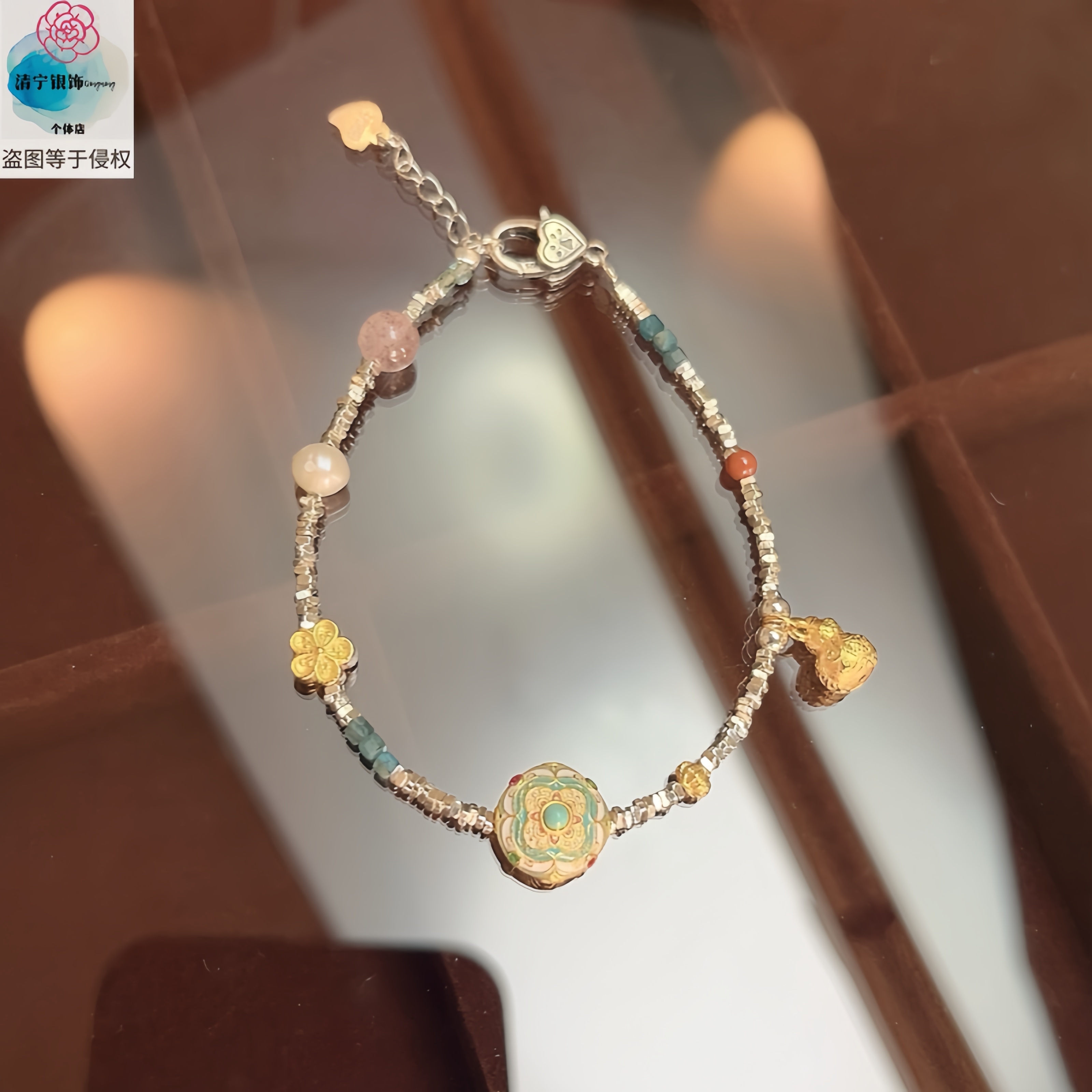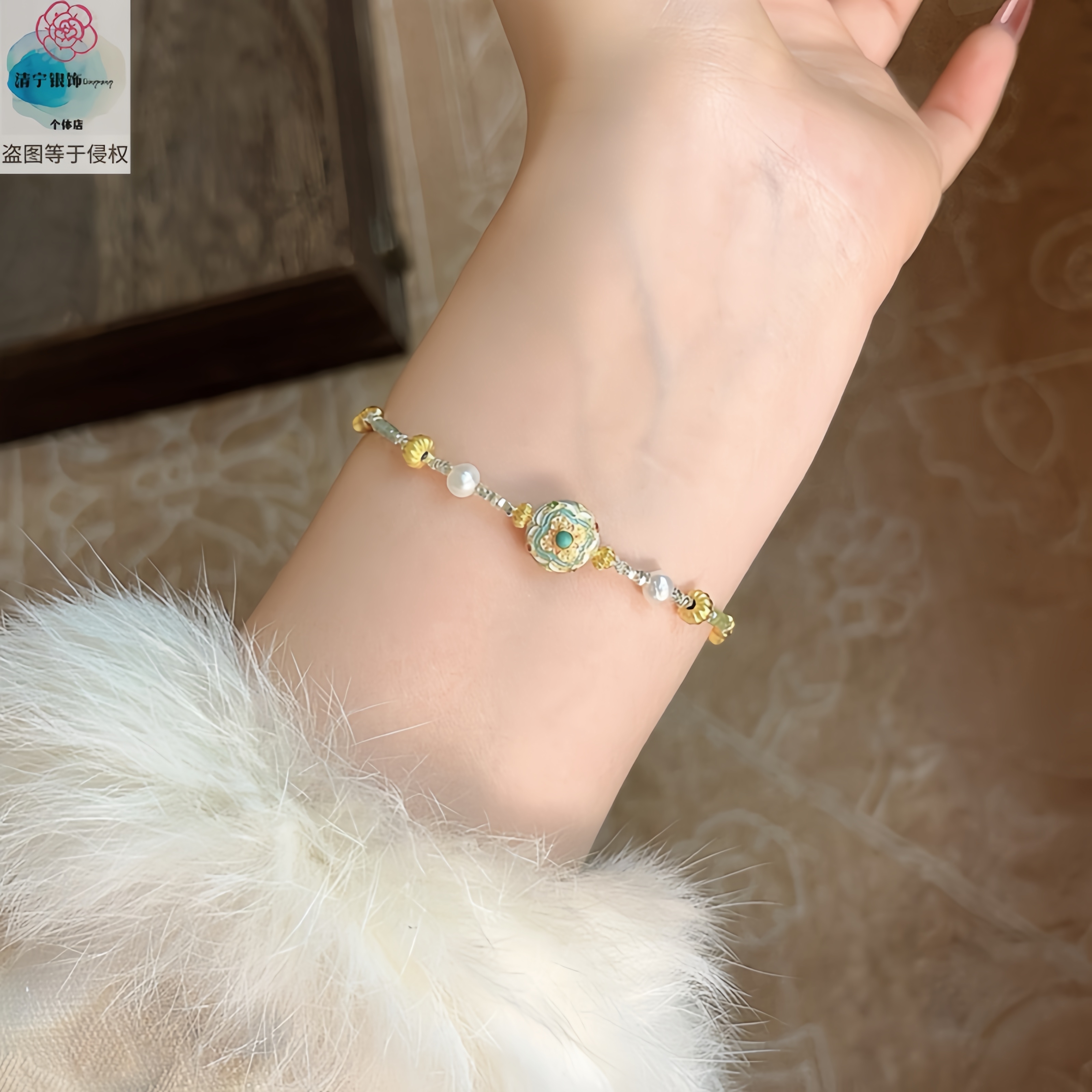 「兰」 National Style New Chinoiserie Broken Silver Enamel 925 Sterling Silver Versatile Niche Bracelet as a Gift for Your Girlfriend