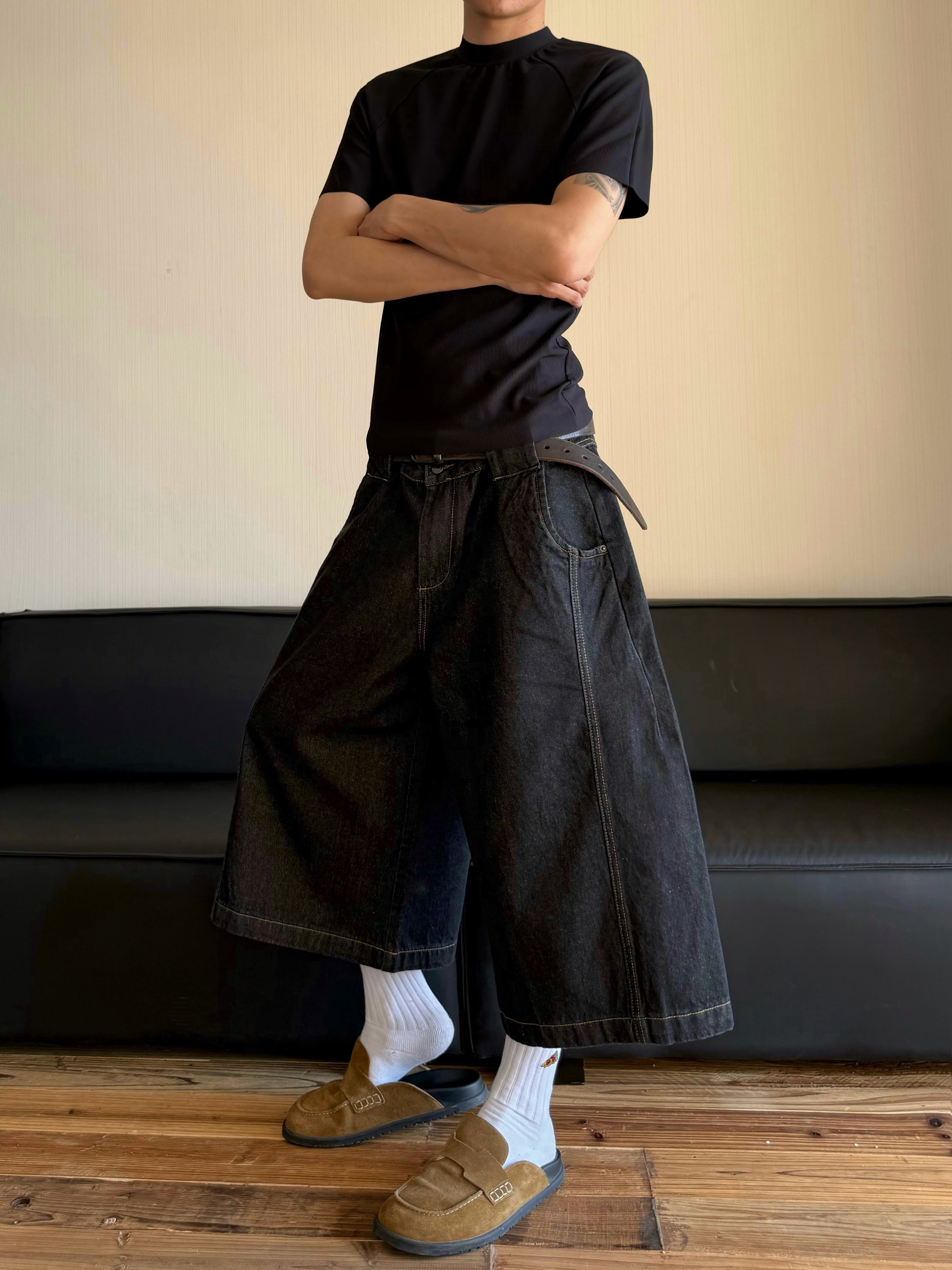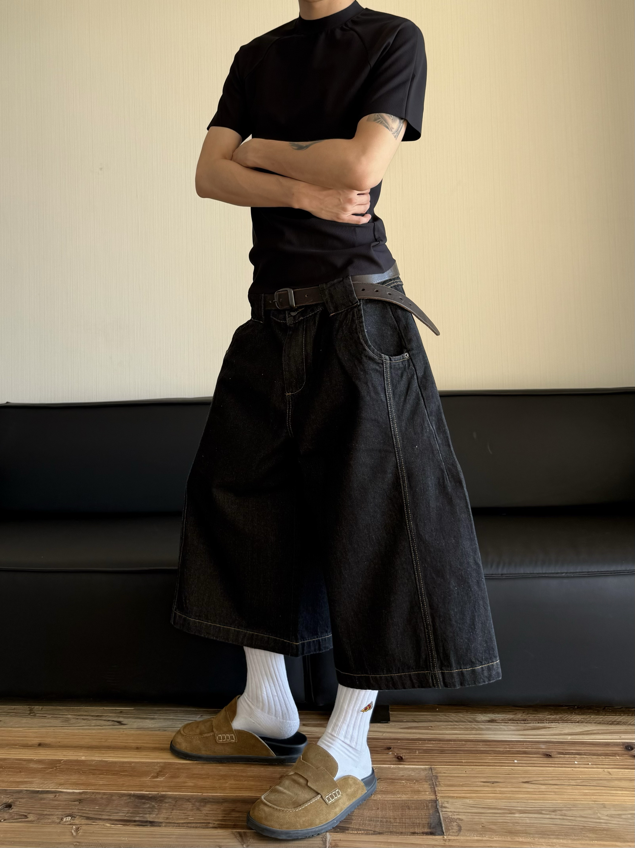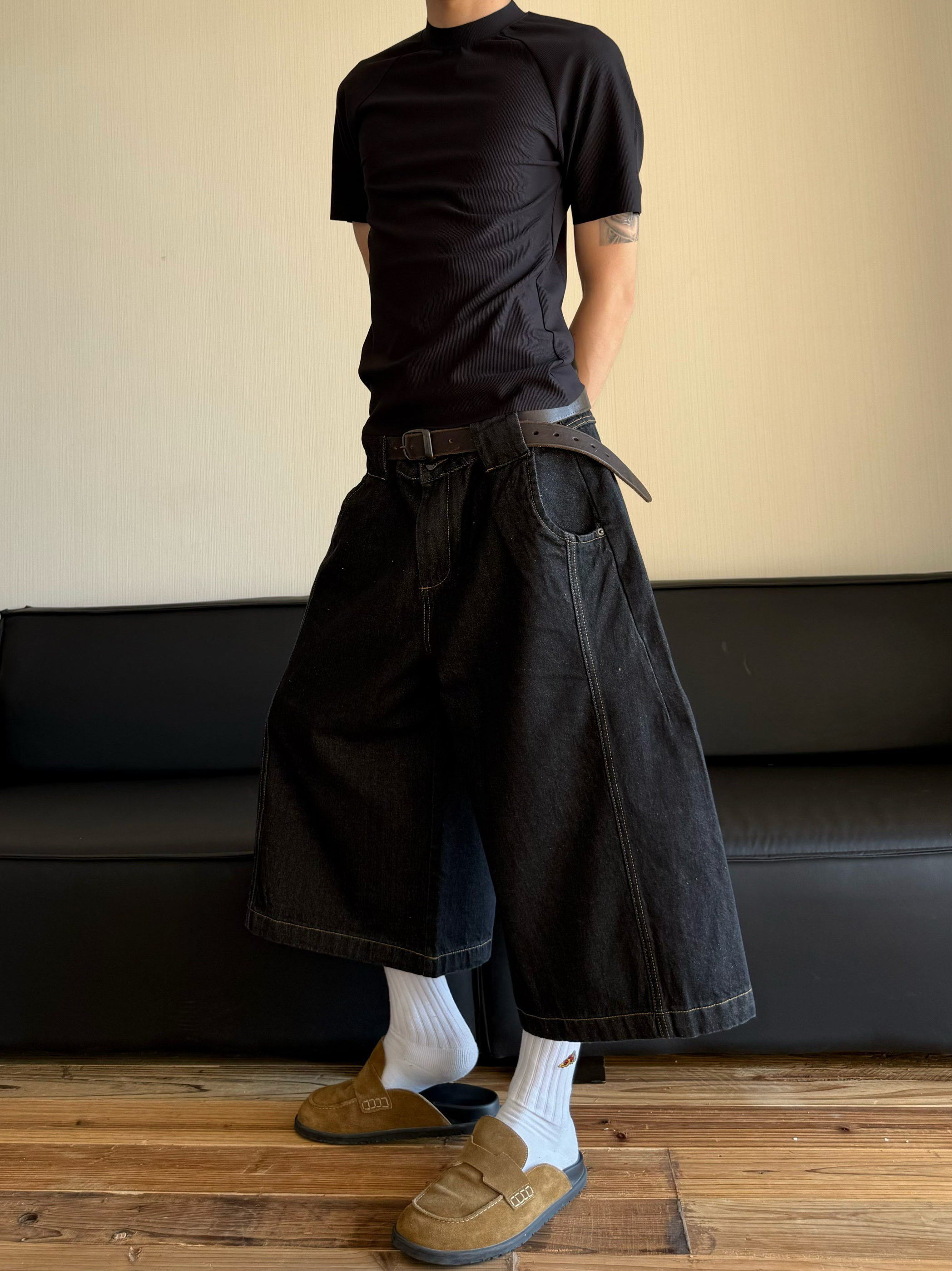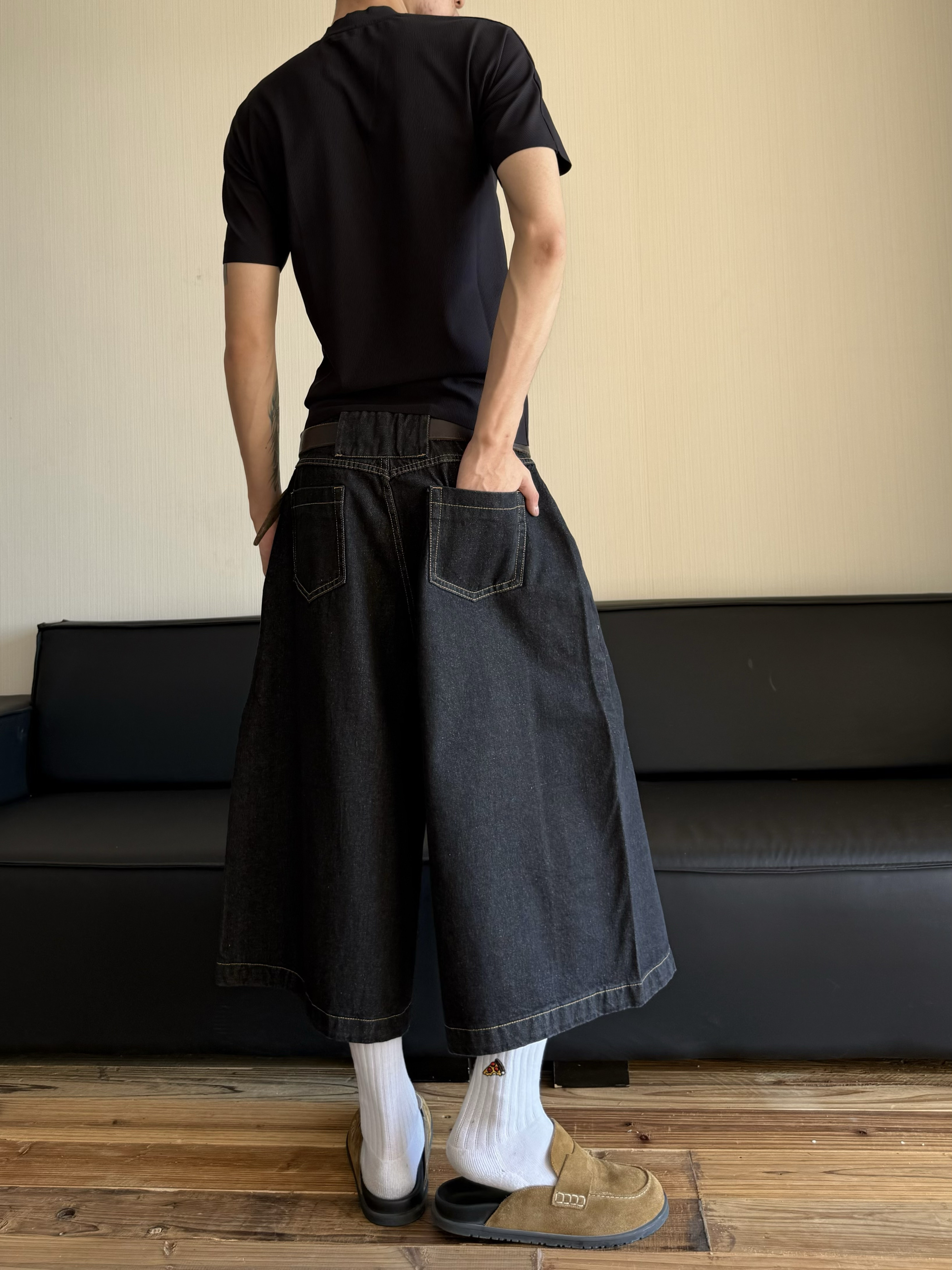 American Retro Wide-Leg Baggy Scimitar Shorts Jeans for Men and Women, Summer Street Loose Casual Three-Quarter Shorts
