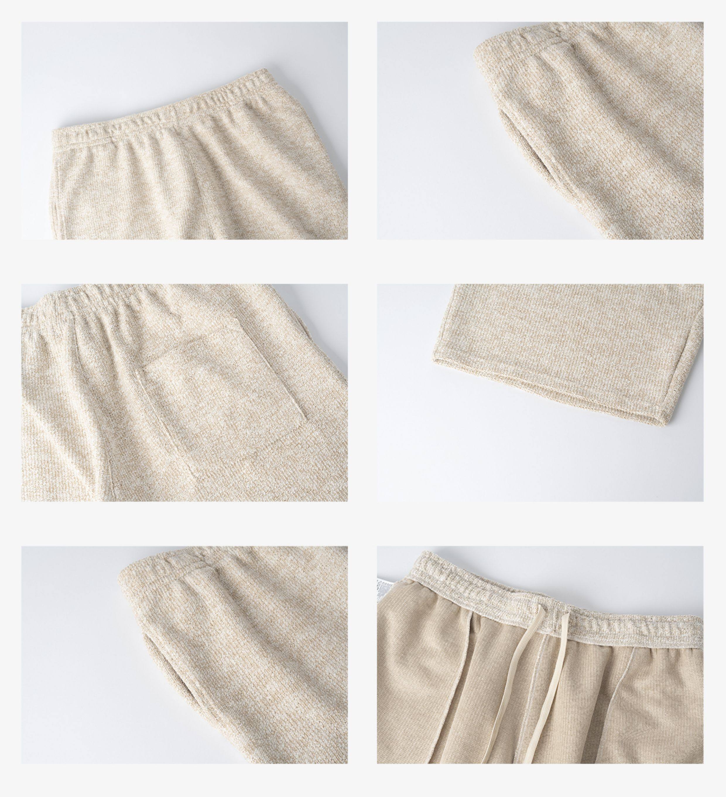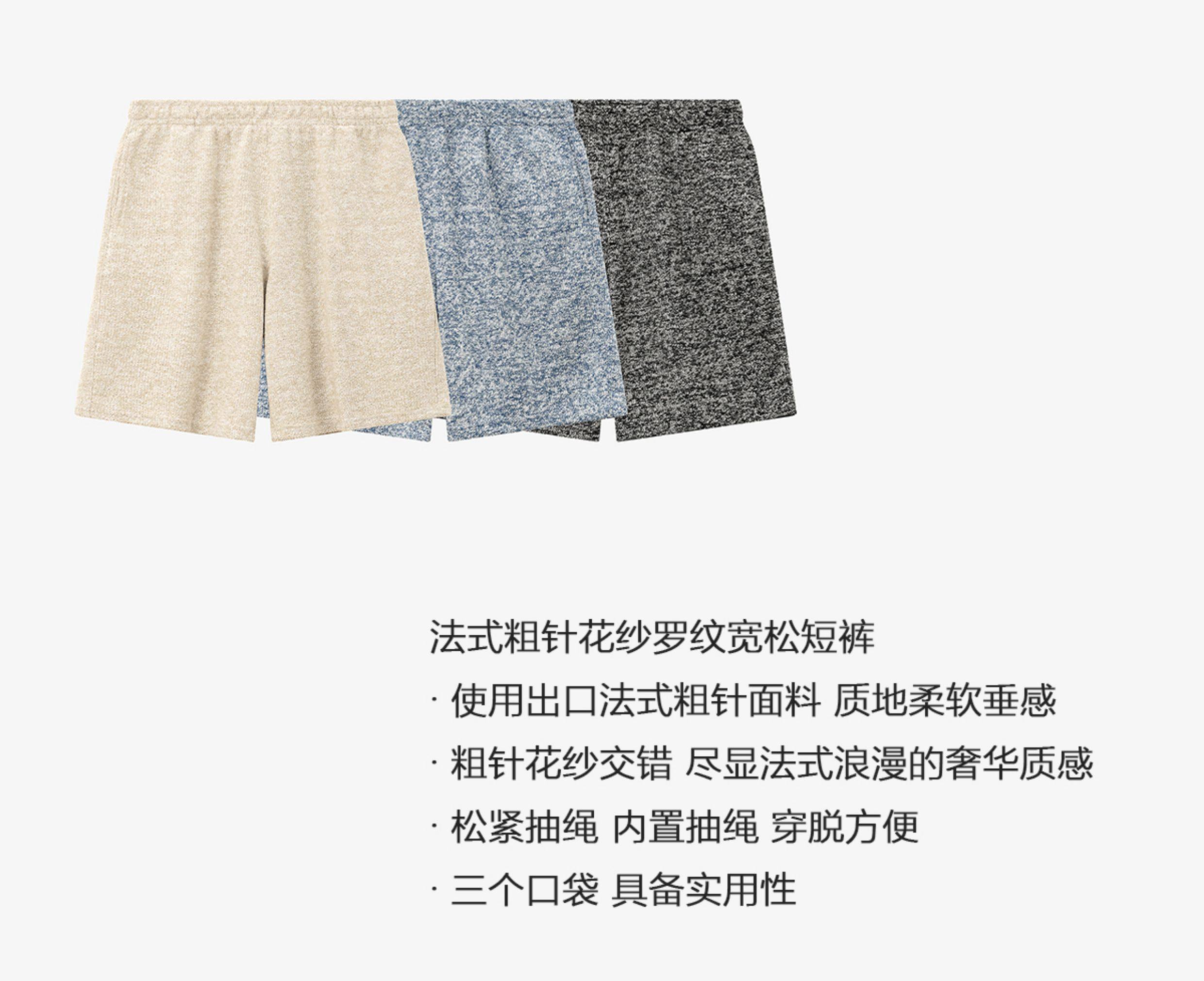 No Logo / Cozyfit Casual Loose Shorts in Coarse Knit Floral Yarn with French Ribbed Knit Style