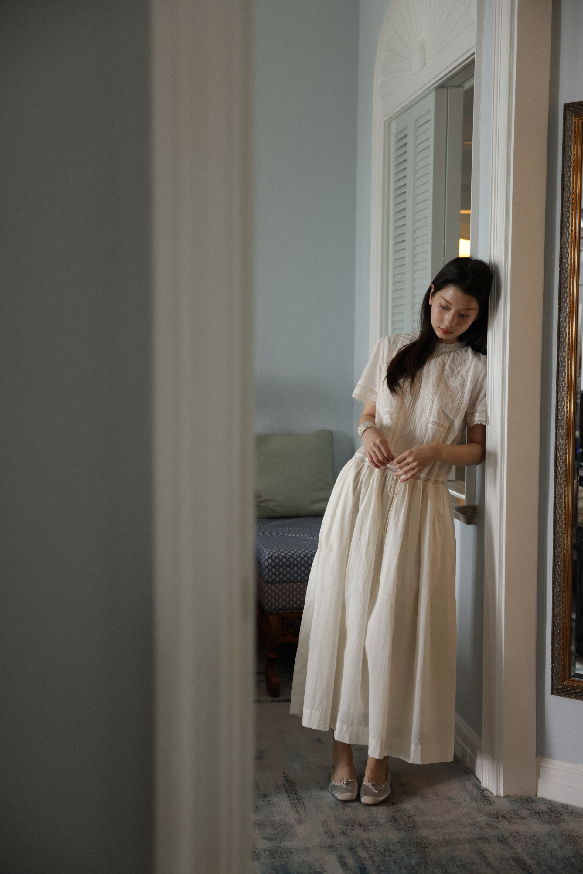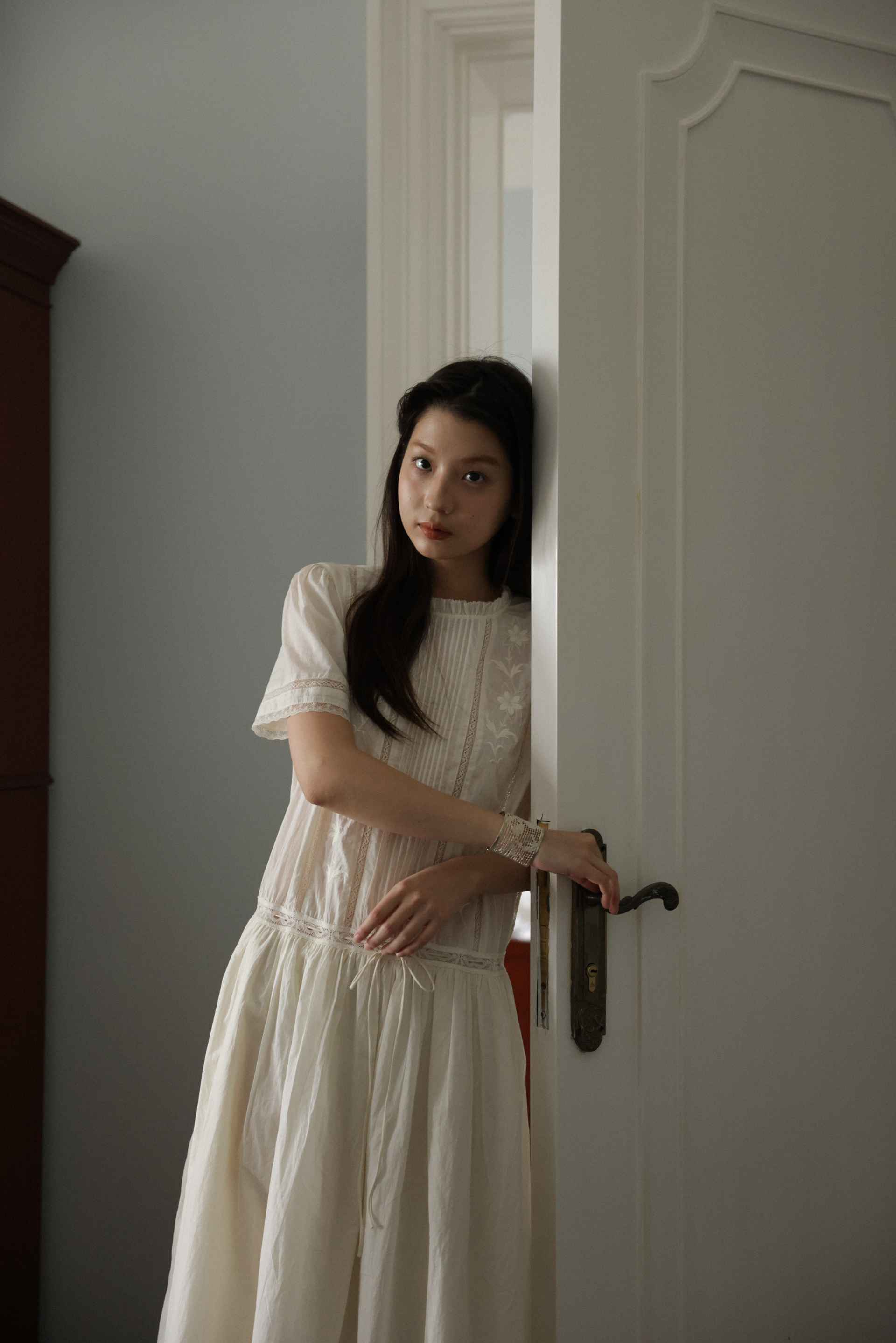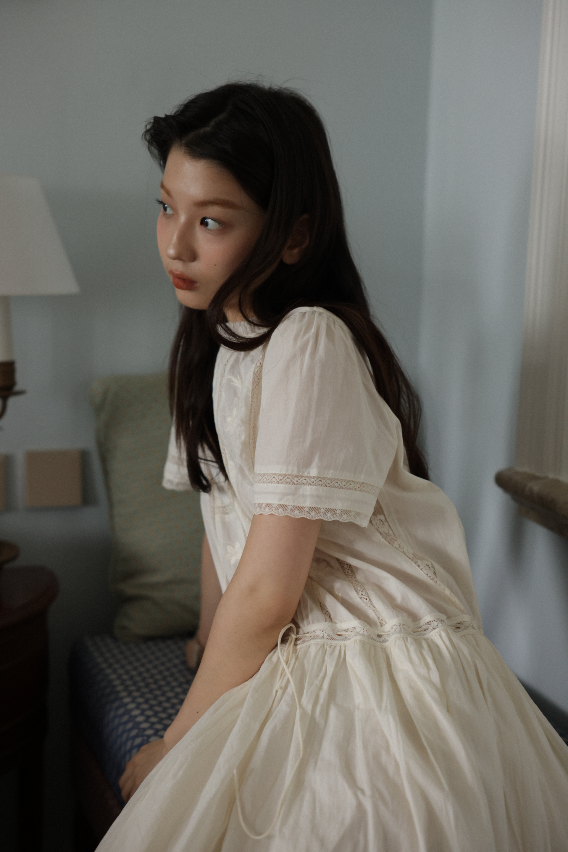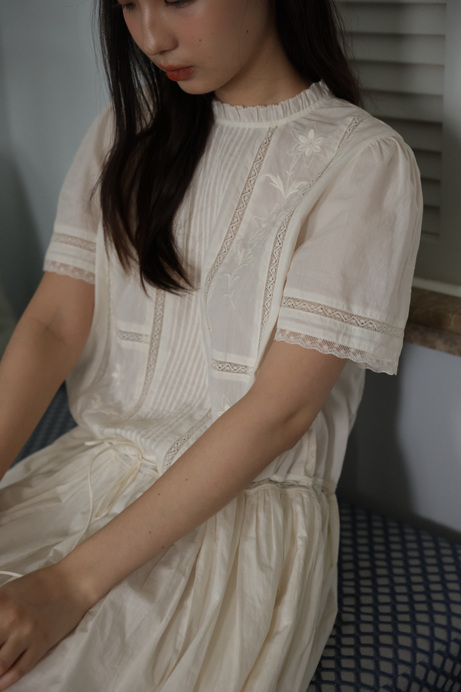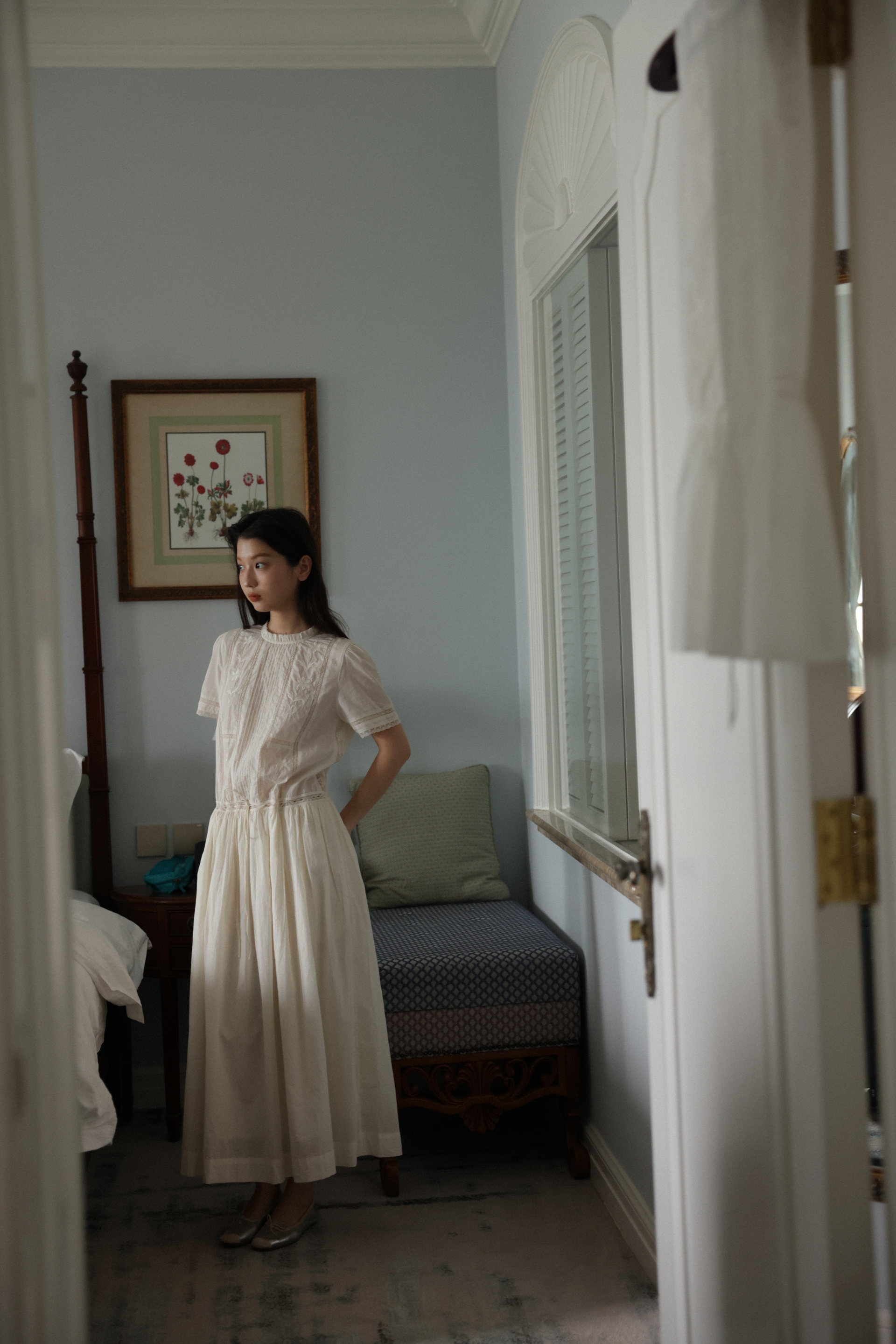 Miroment Delicate Embroidered Small Stand Collar Antique Beige Low-Waist Dress Beige Sleeveless/Short-Sleeve Multiple Images