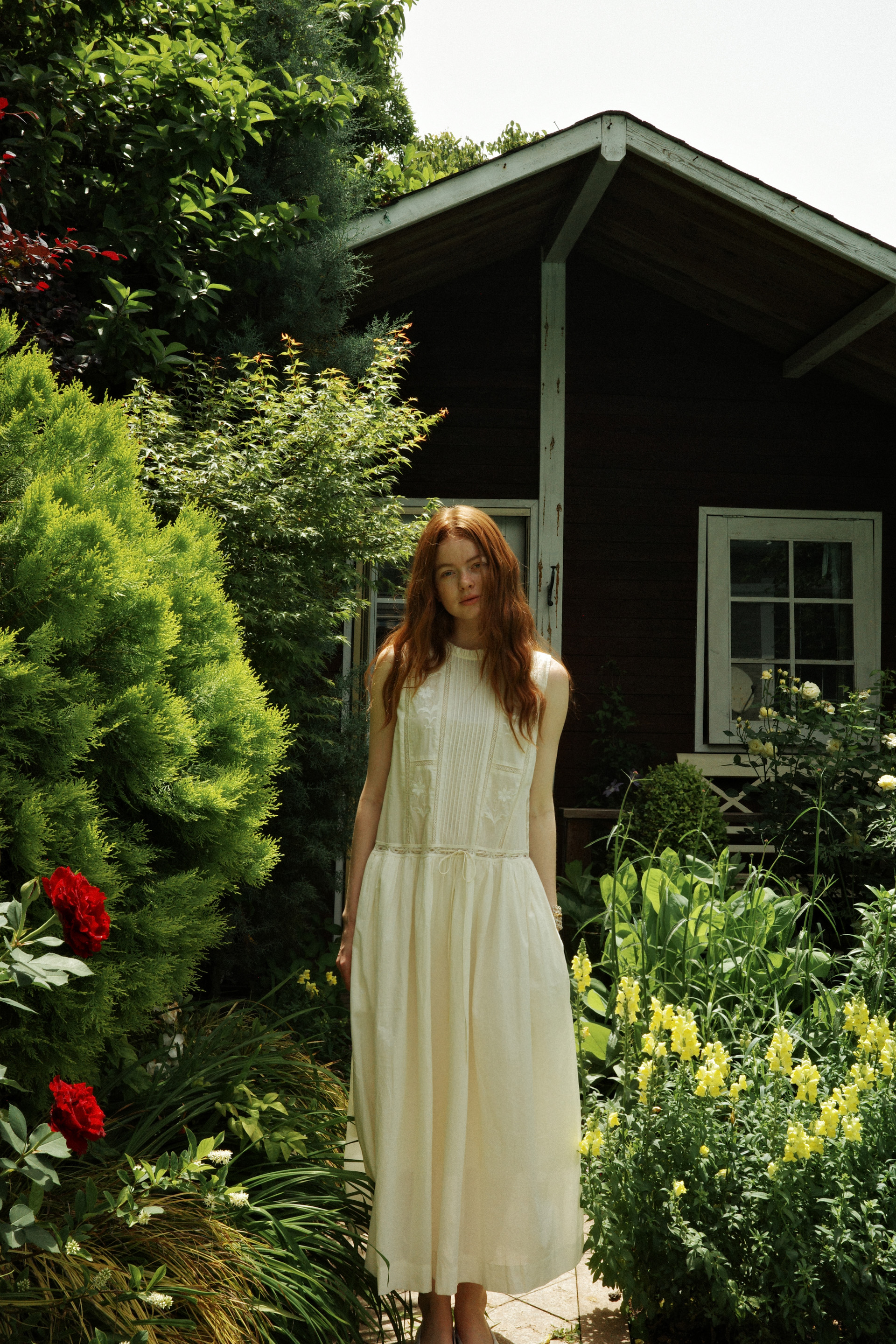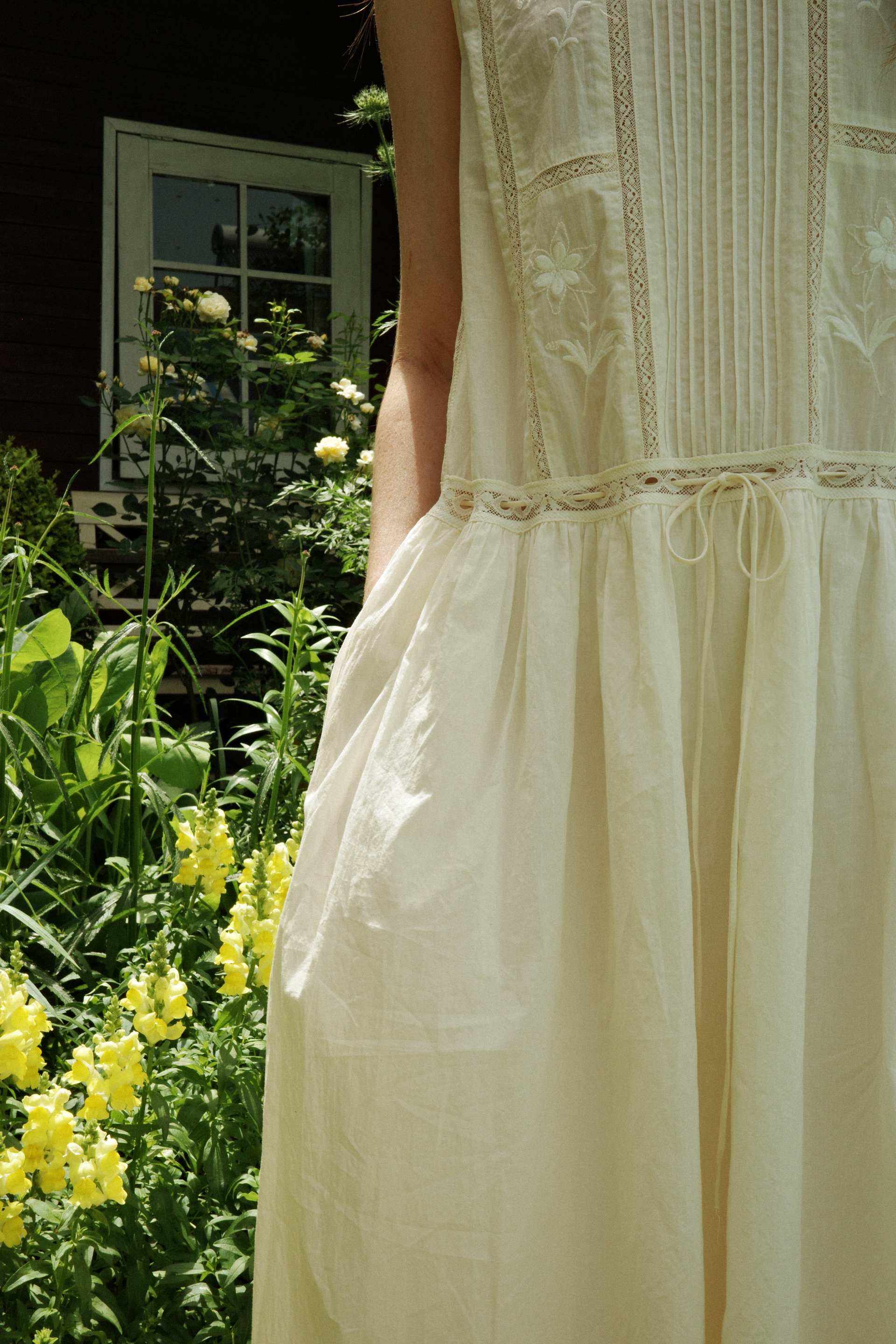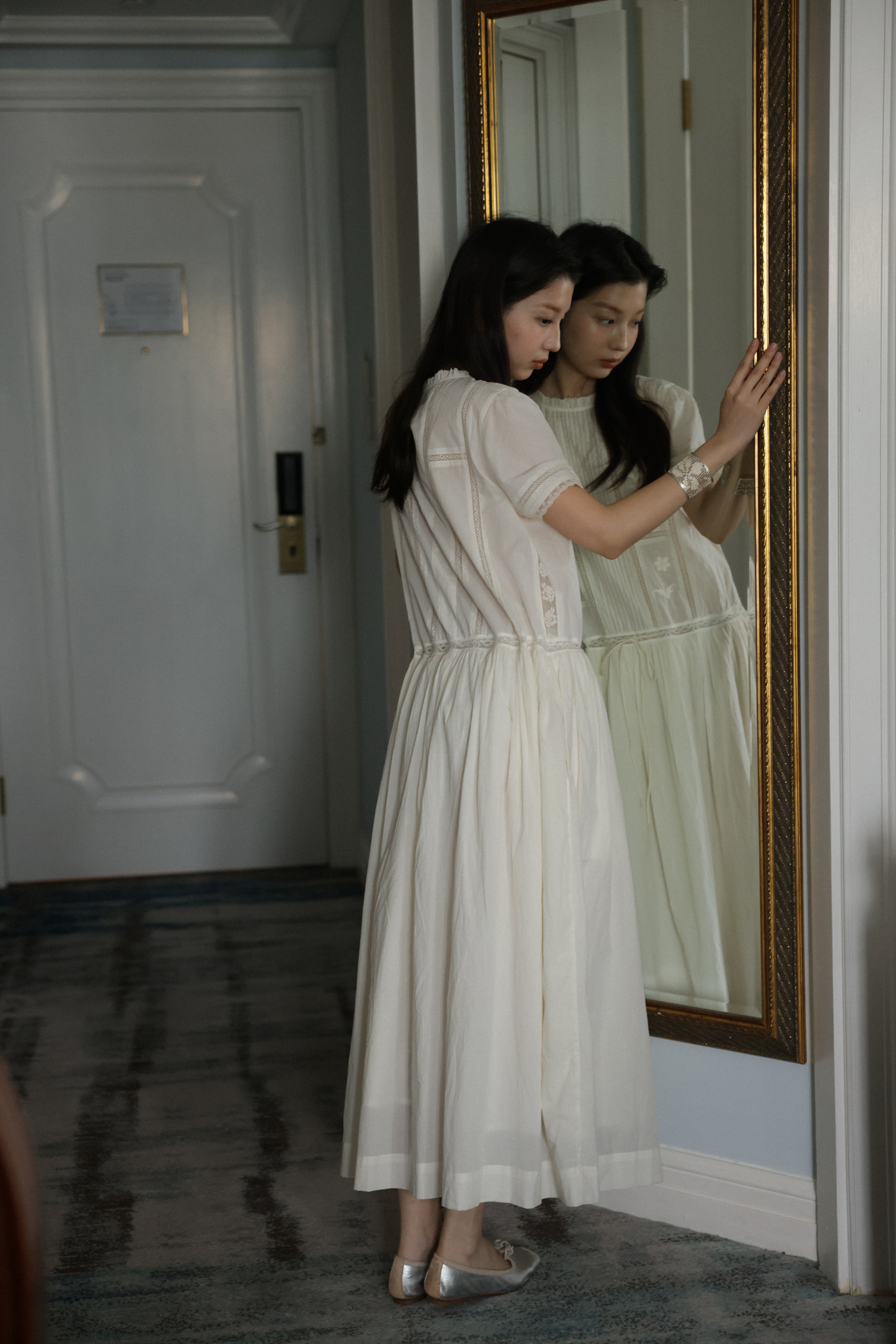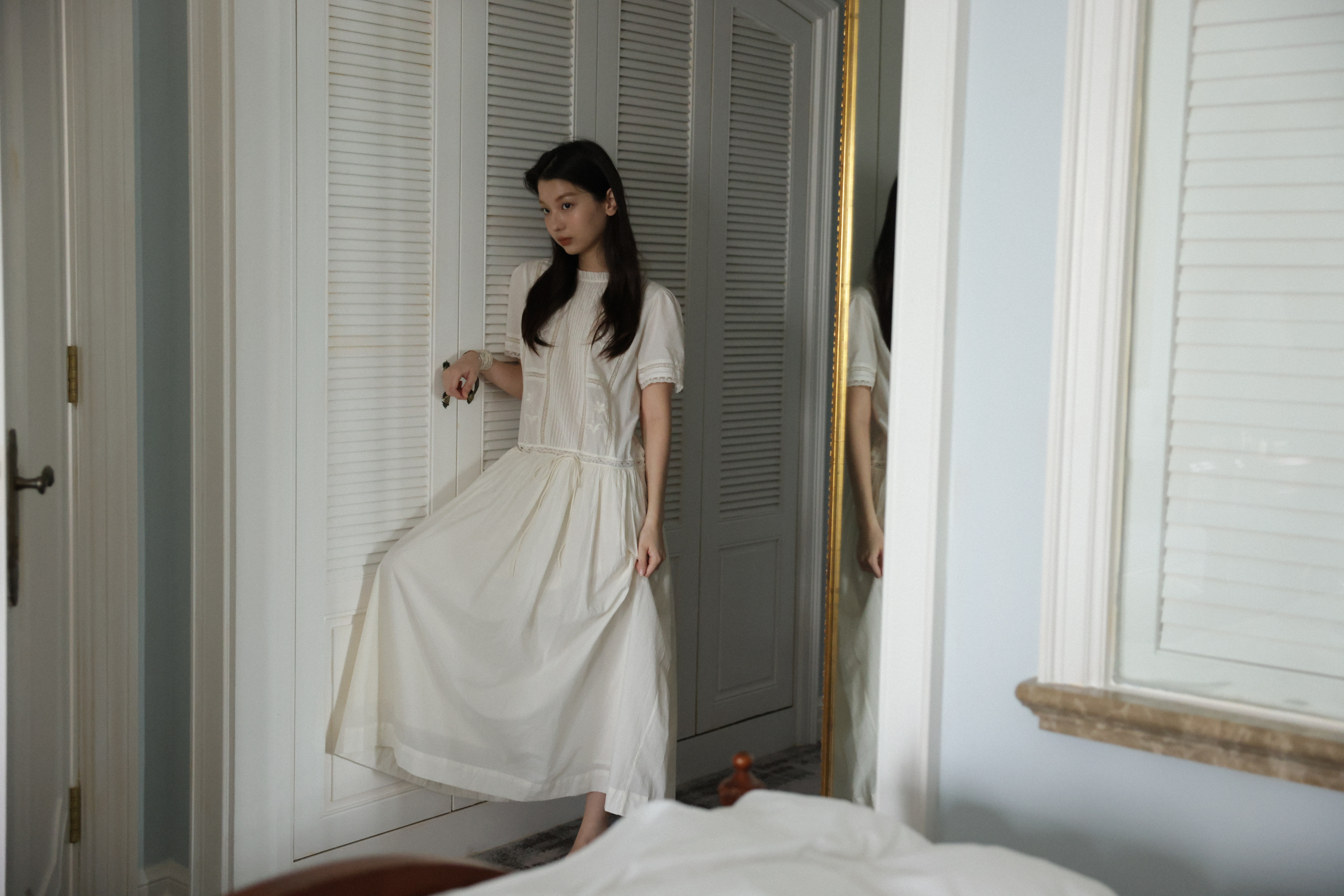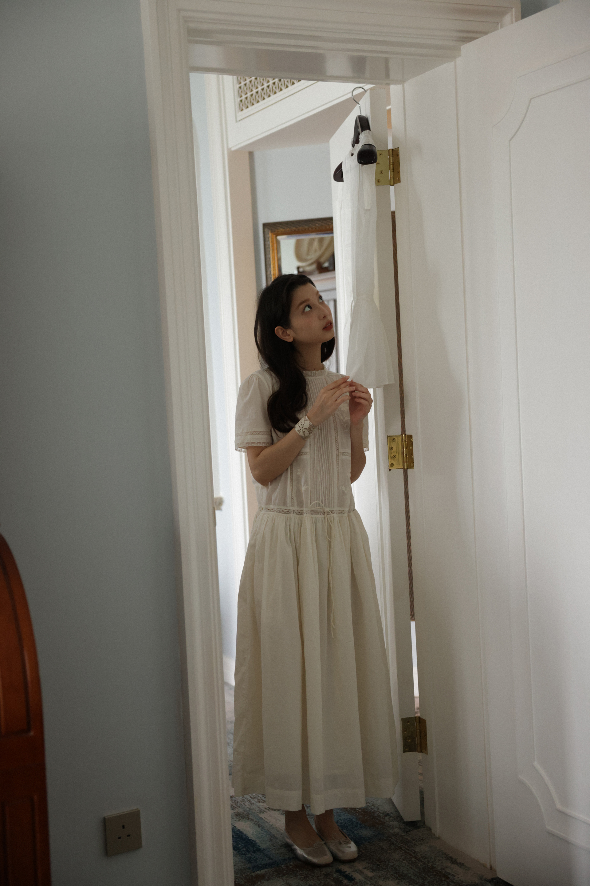 Miroment Delicate Embroidered Small Stand Collar Antique Beige Low-Waist Dress Beige Sleeveless/Short-Sleeve Multiple Images