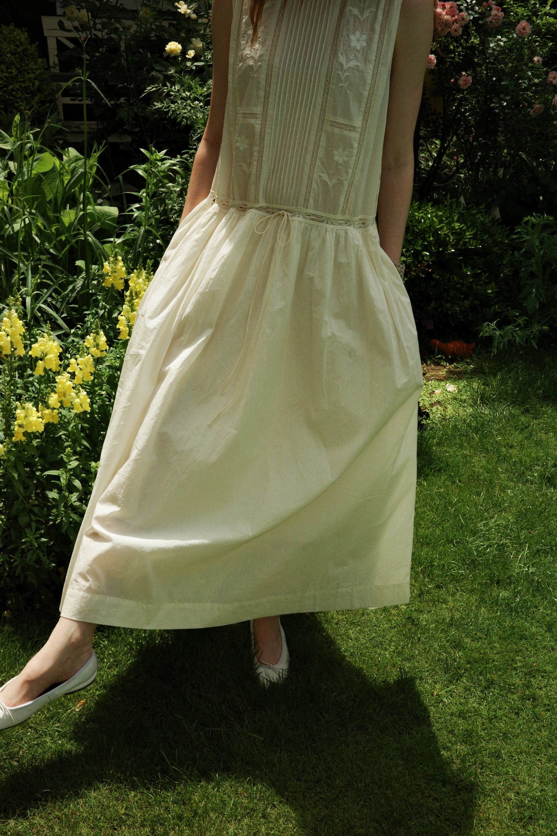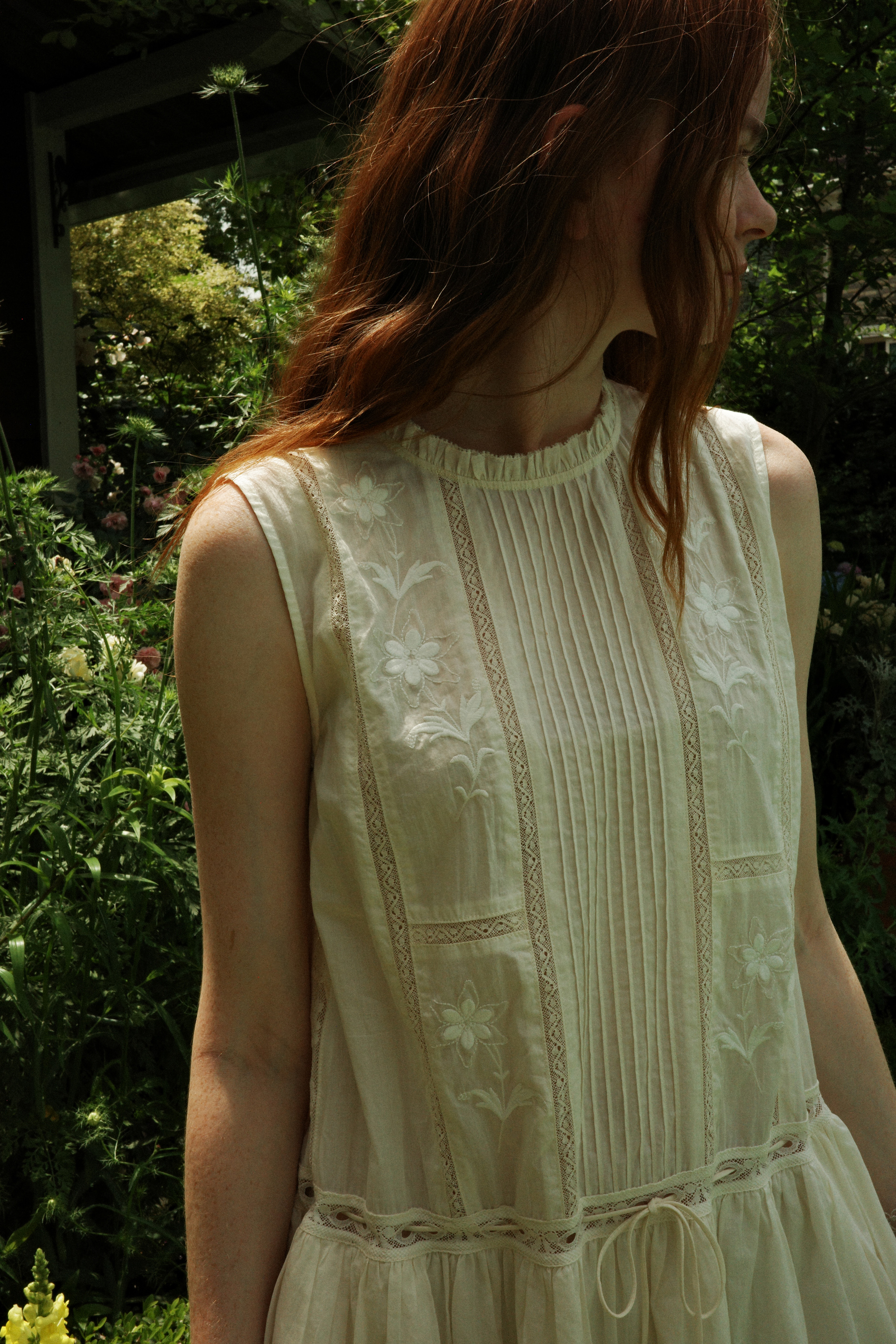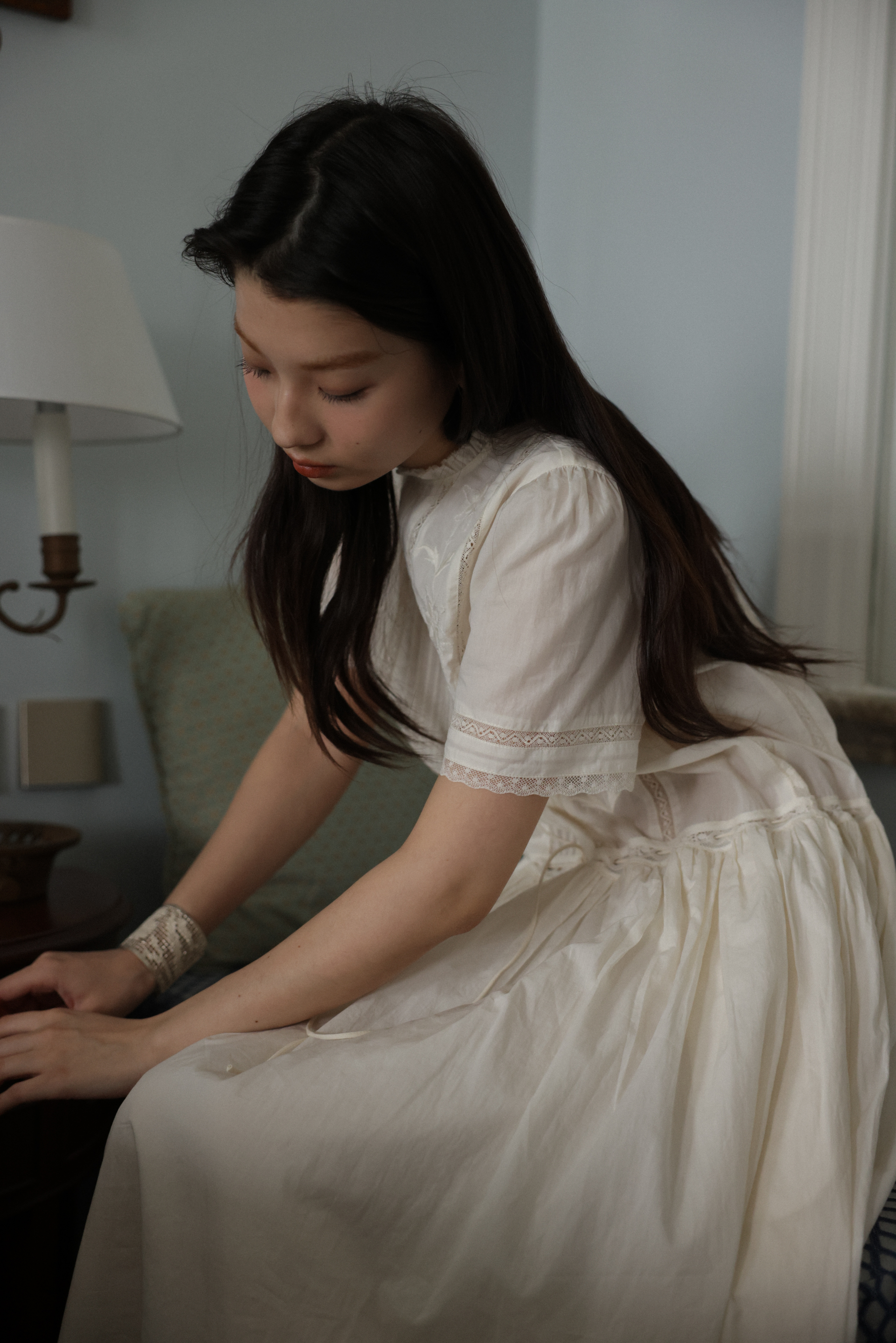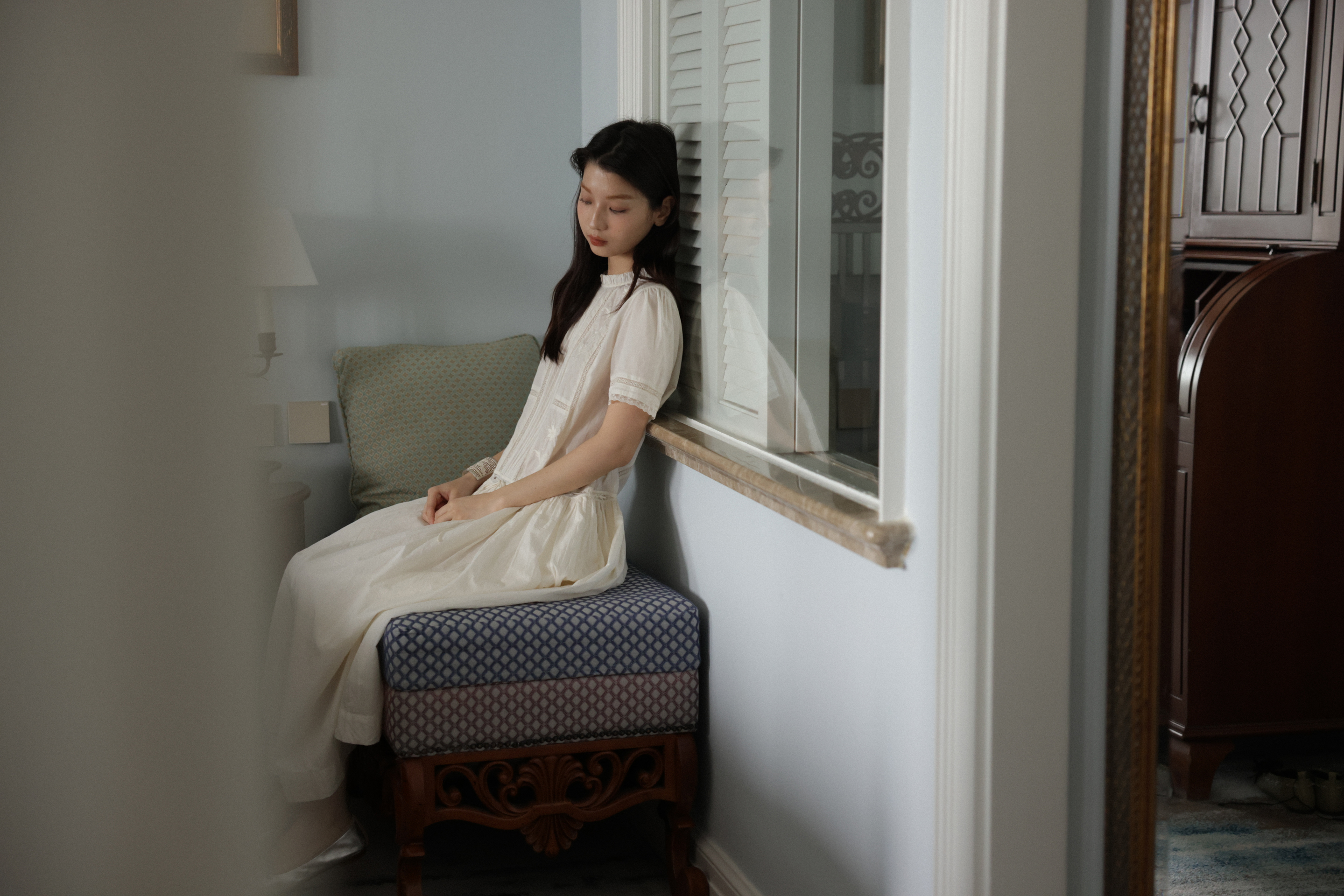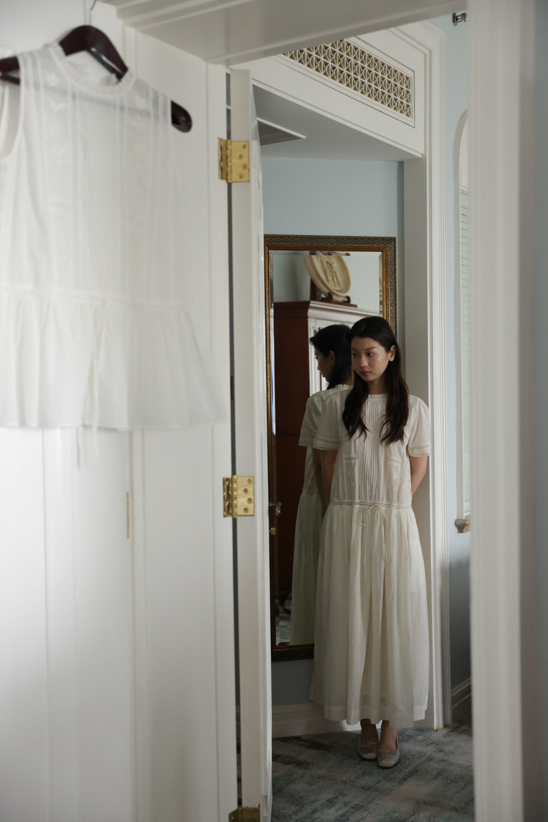 Miroment Delicate Embroidered Small Stand Collar Antique Beige Low-Waist Dress Beige Sleeveless/Short-Sleeve Multiple Images