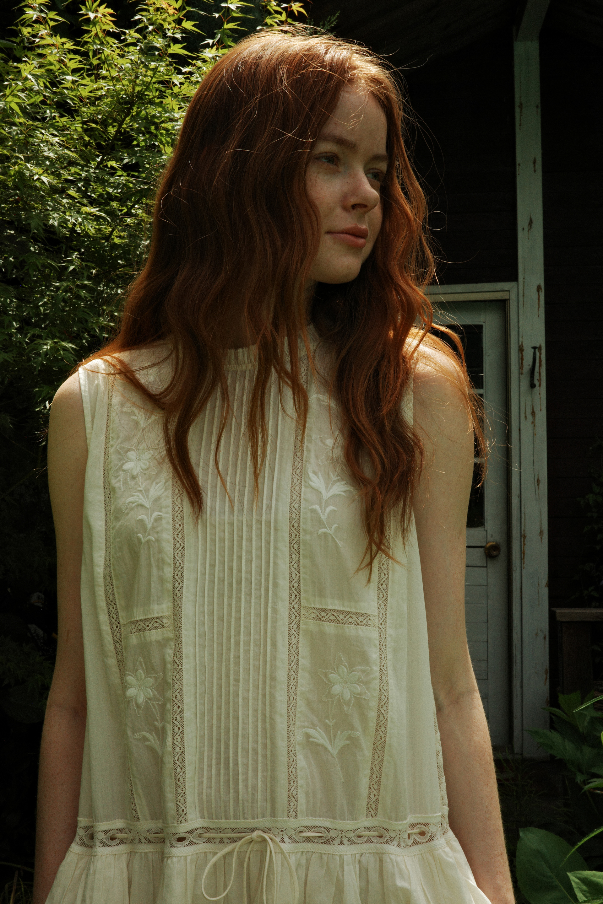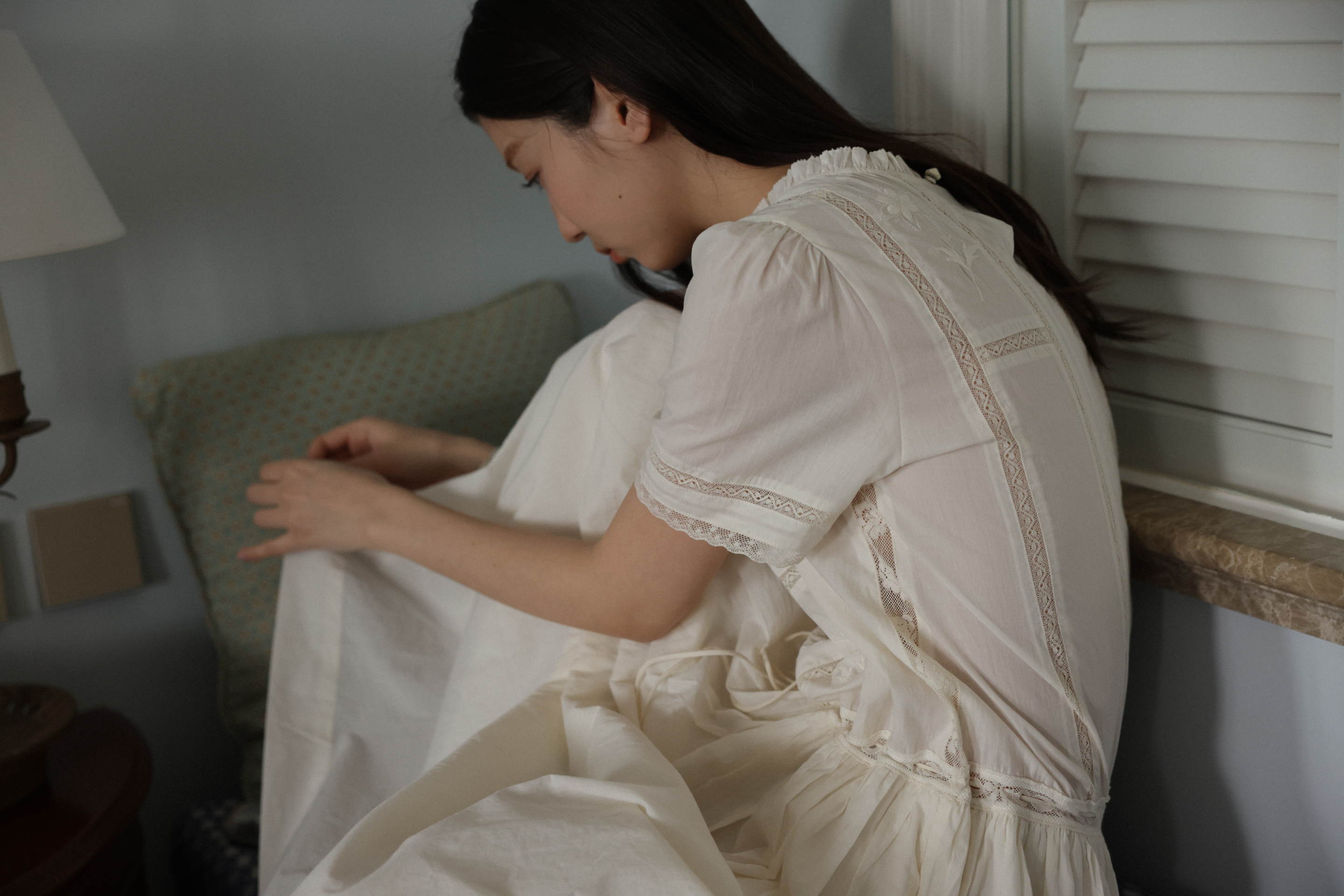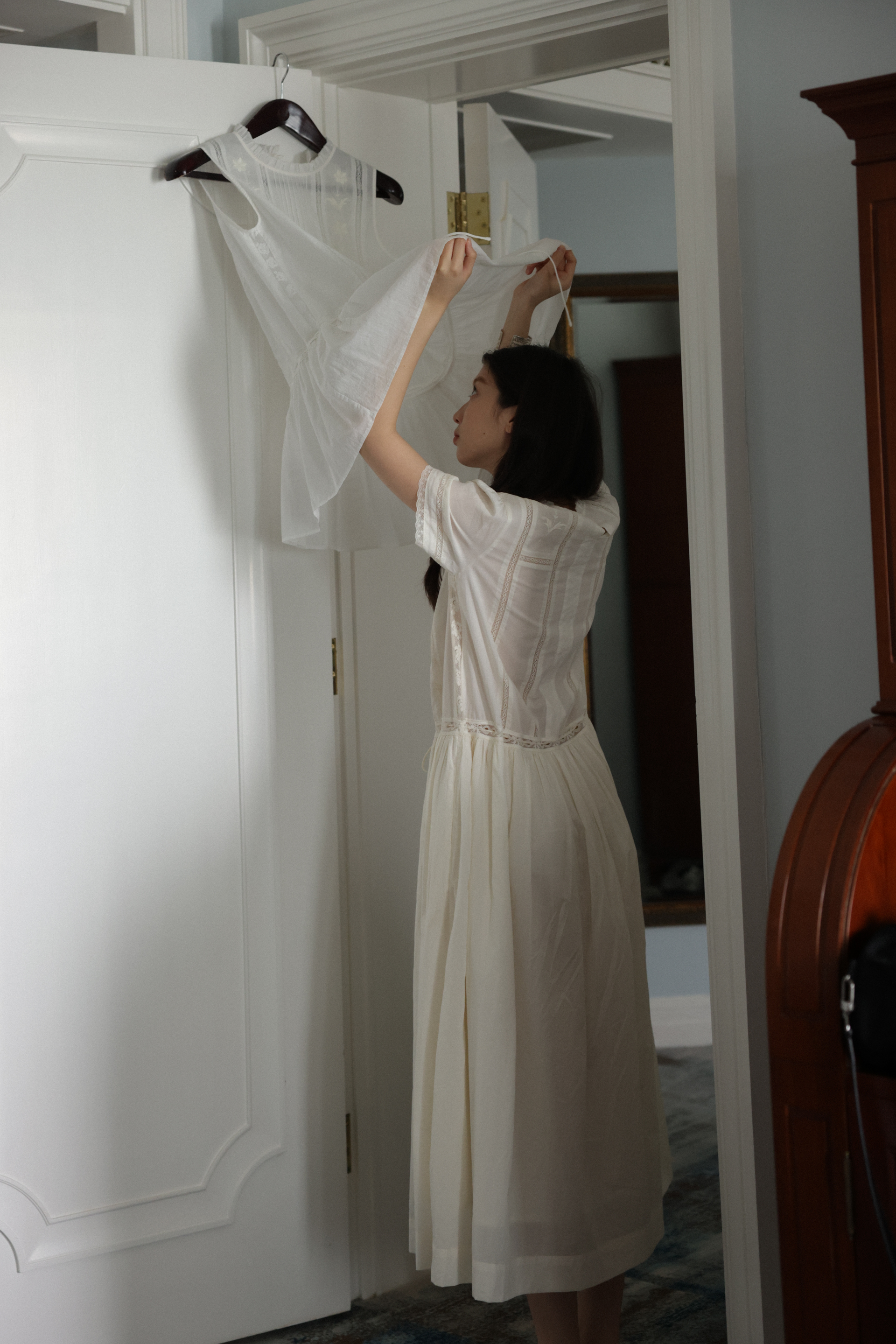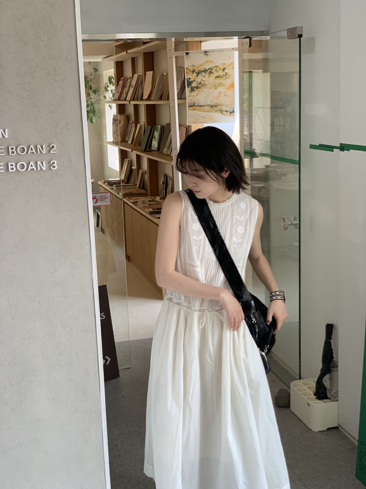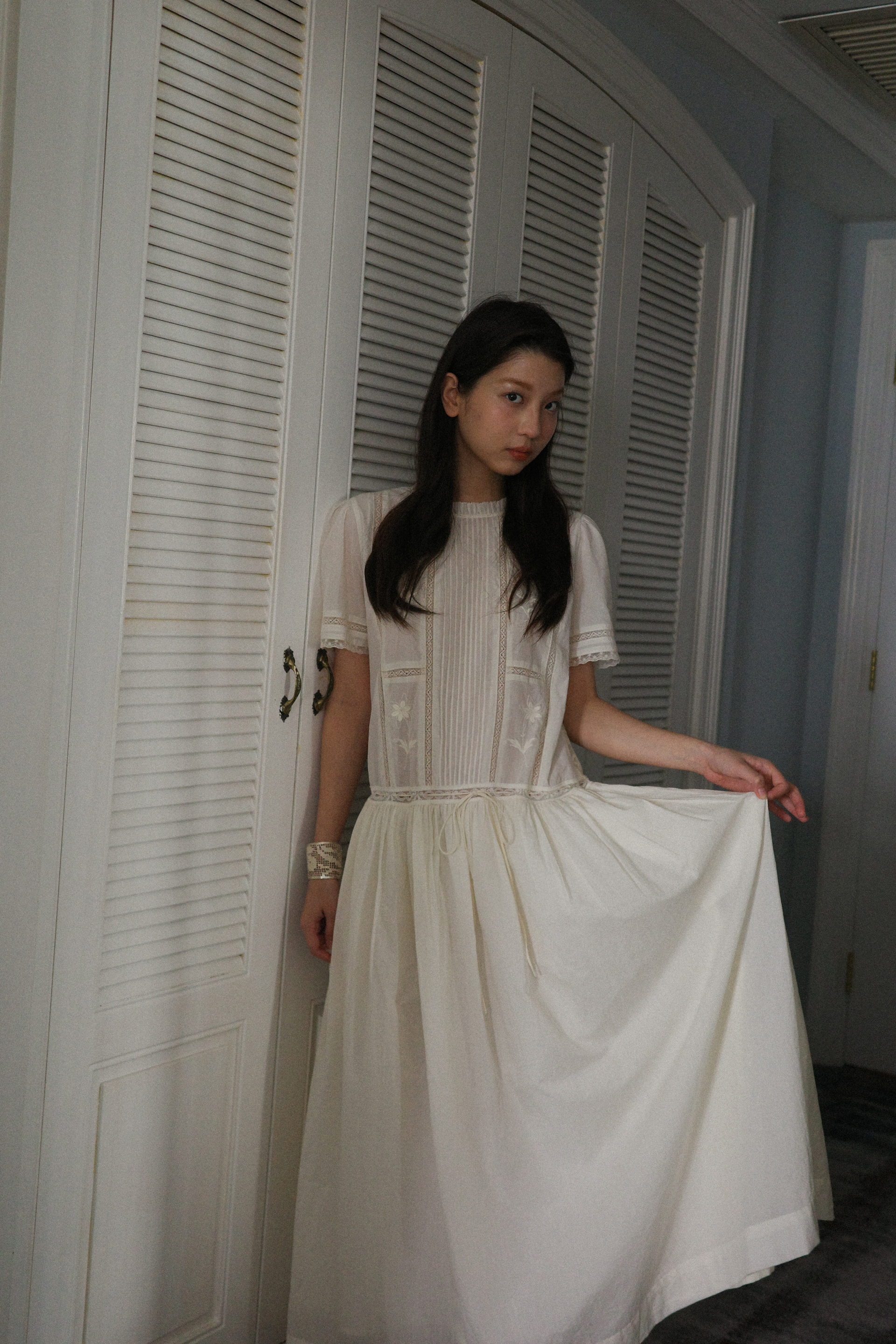 Miroment Delicate Embroidered Small Stand Collar Antique Beige Low-Waist Dress Beige Sleeveless/Short-Sleeve Multiple Images