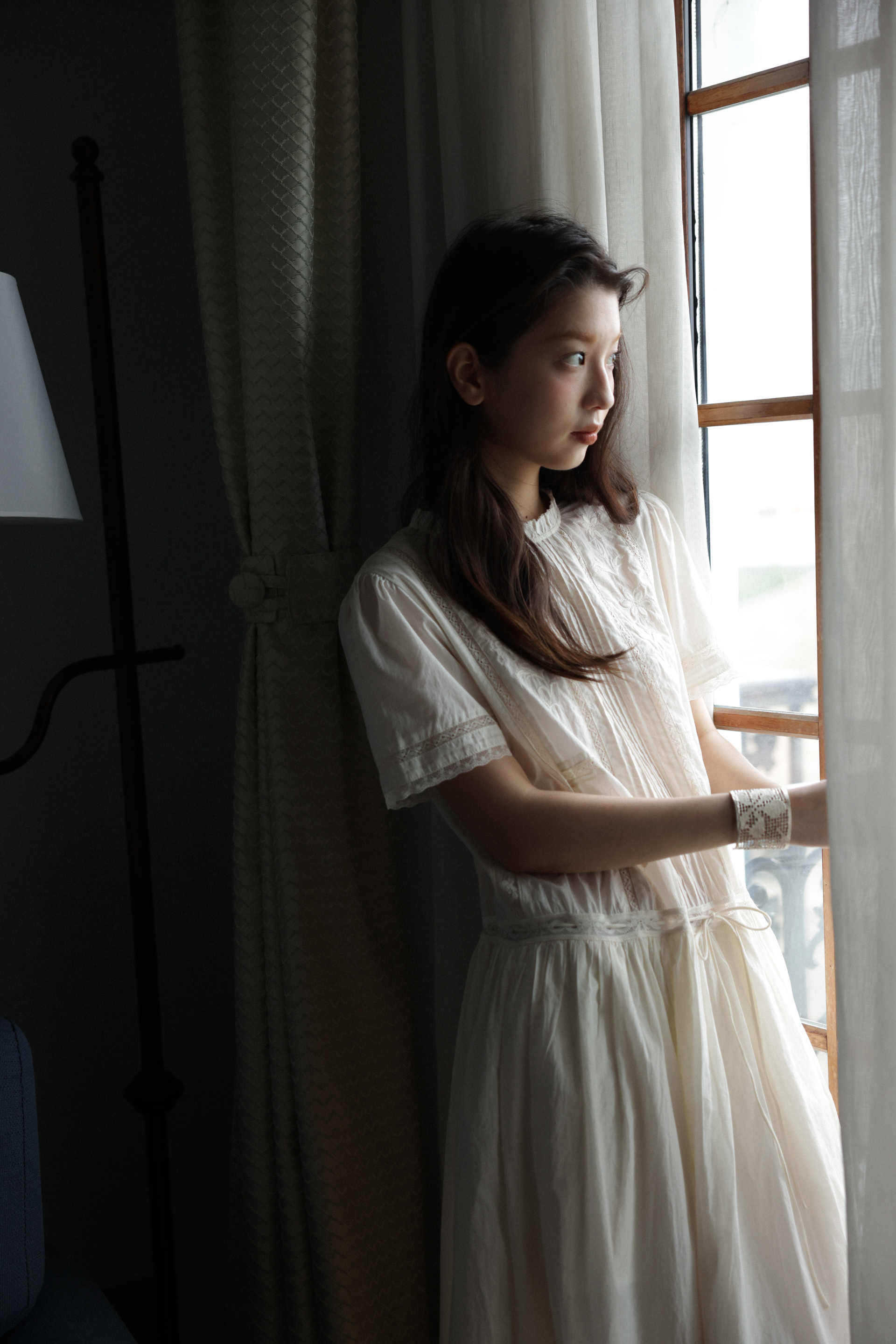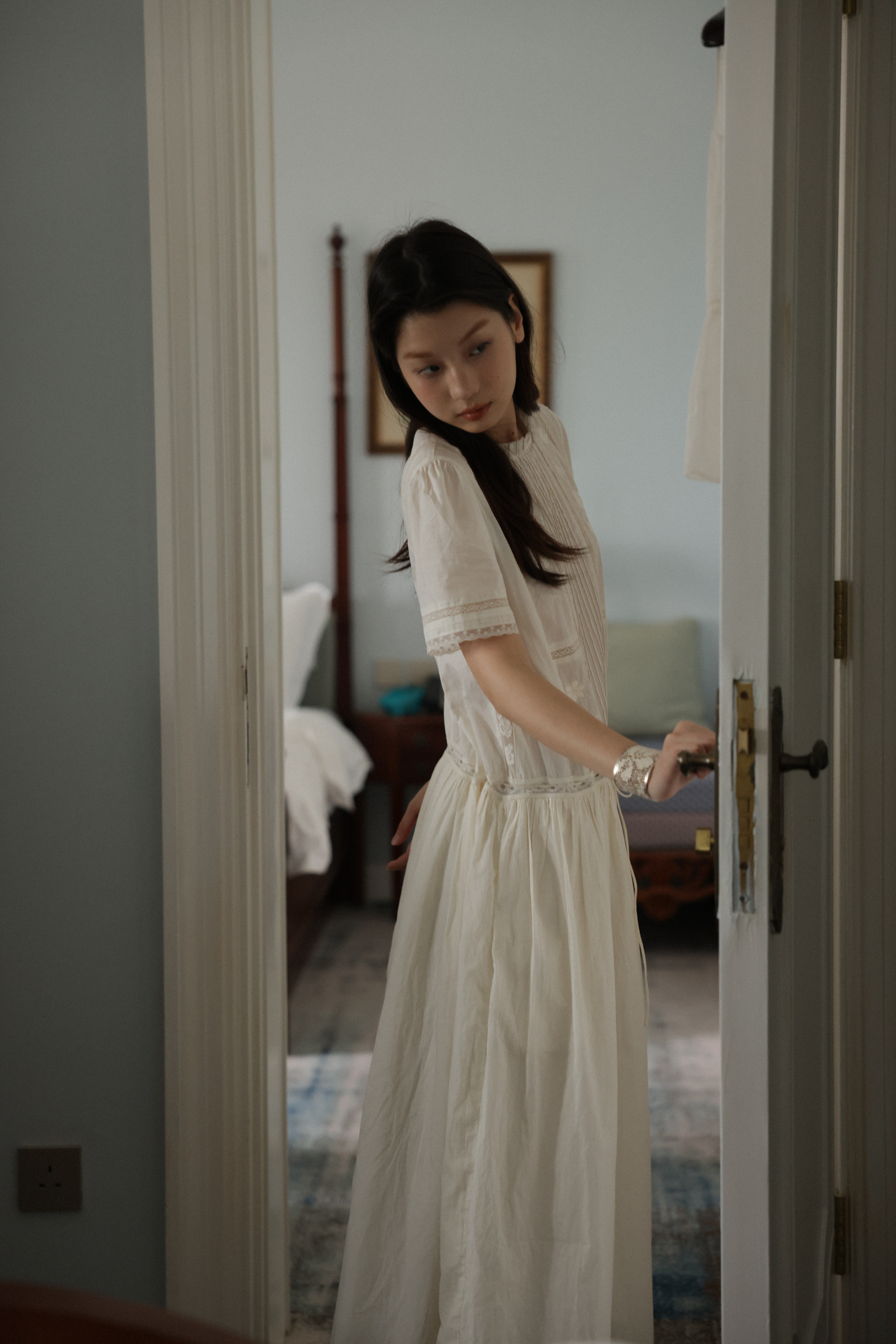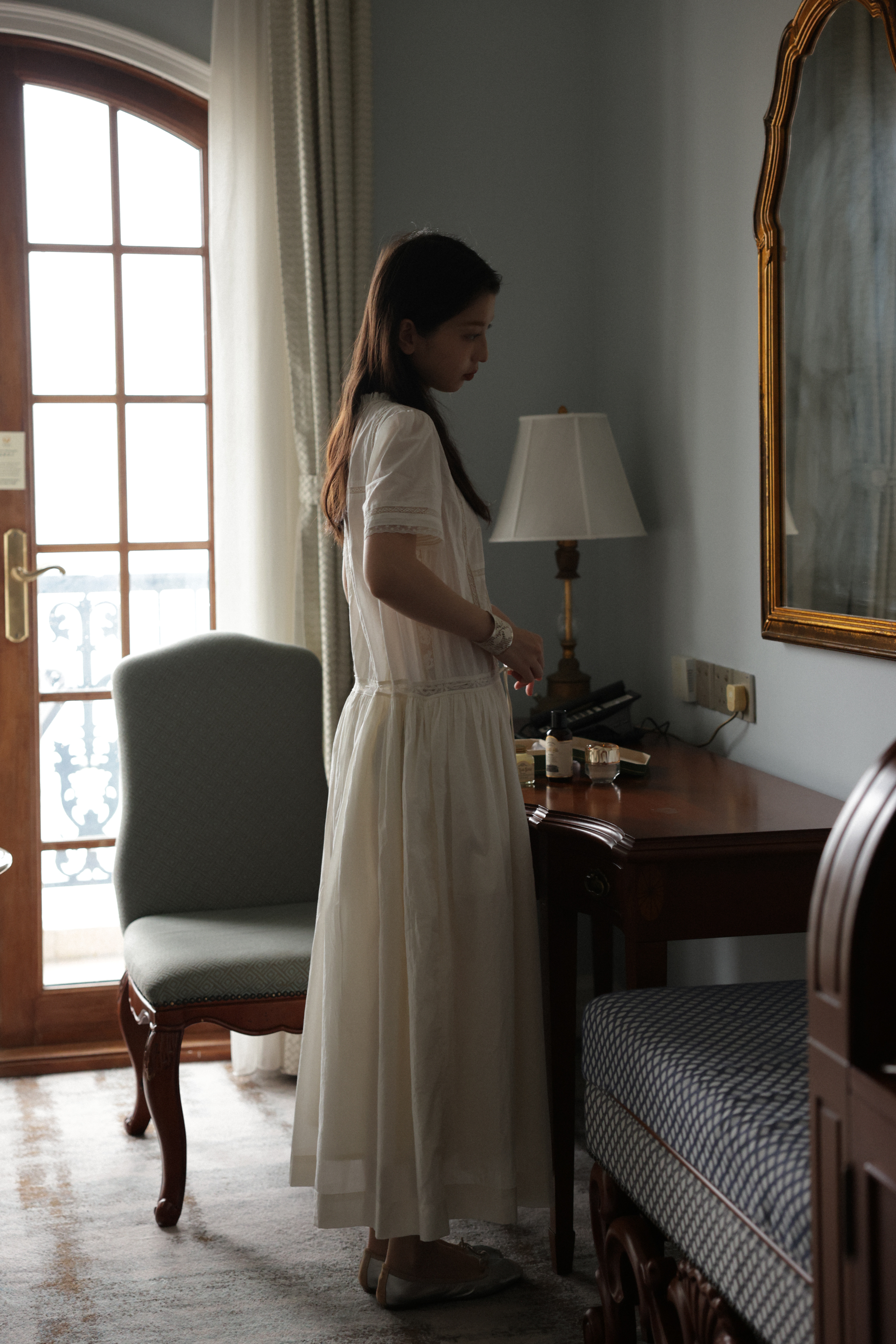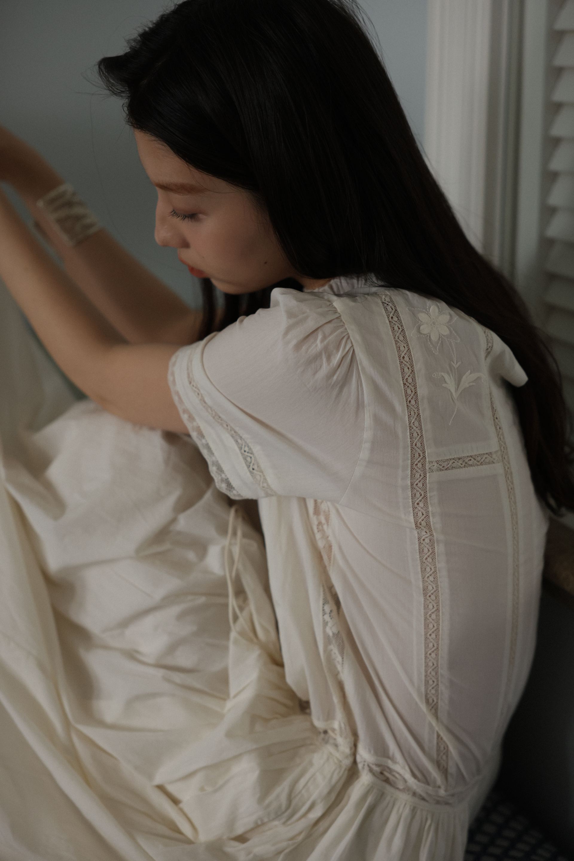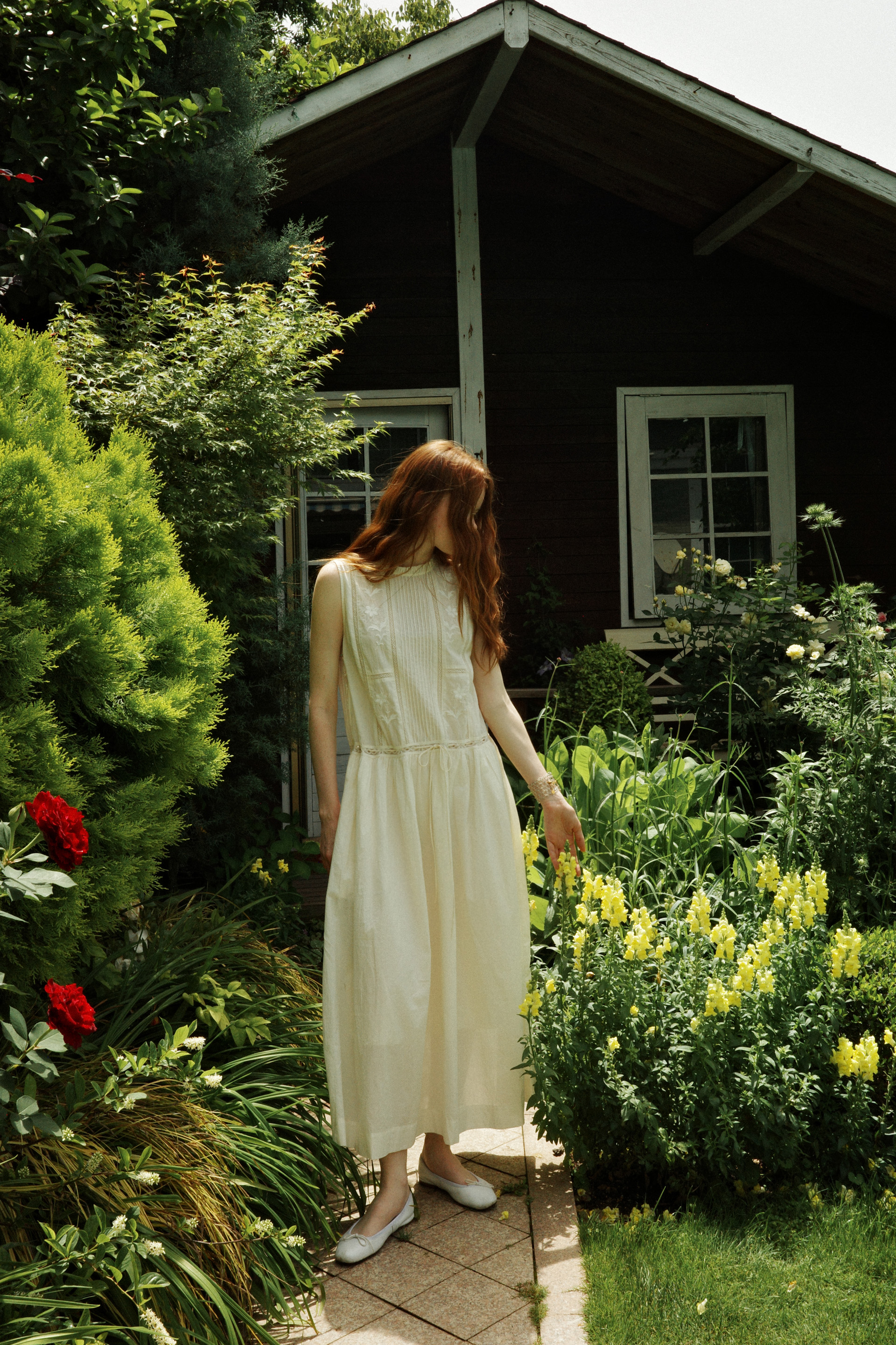 Miroment Delicate Embroidered Small Stand Collar Antique Beige Low-Waist Dress Beige Sleeveless/Short-Sleeve Multiple Images