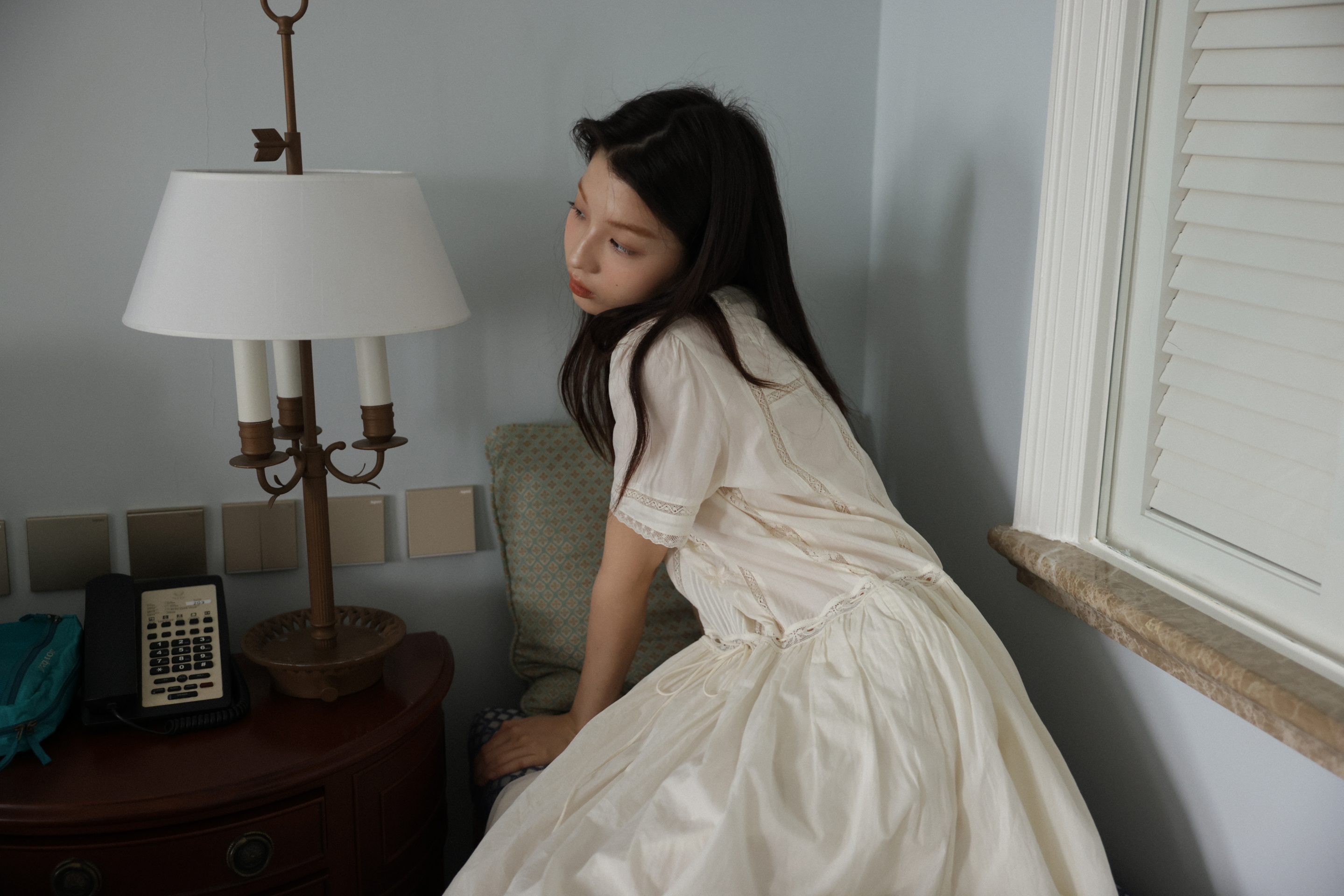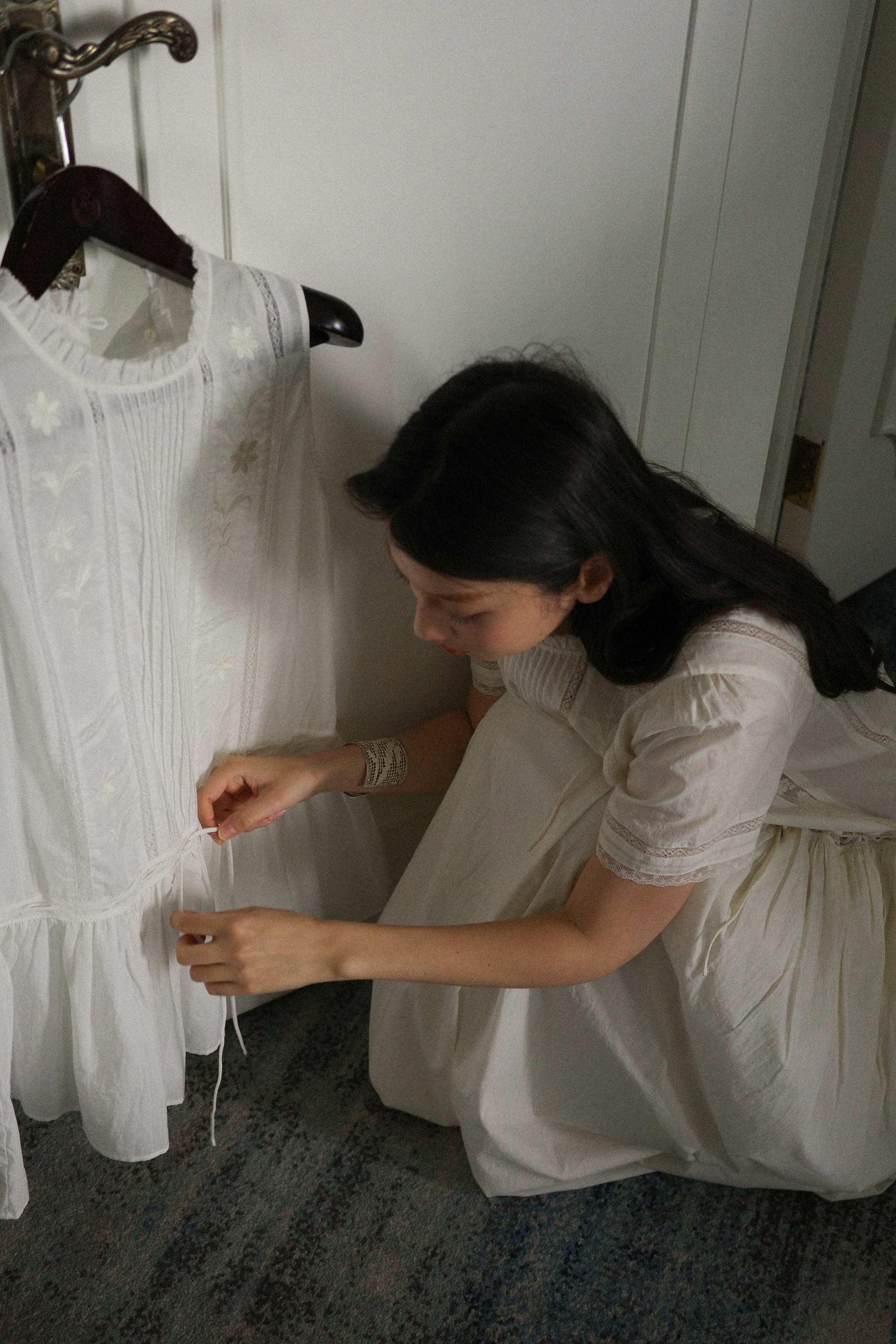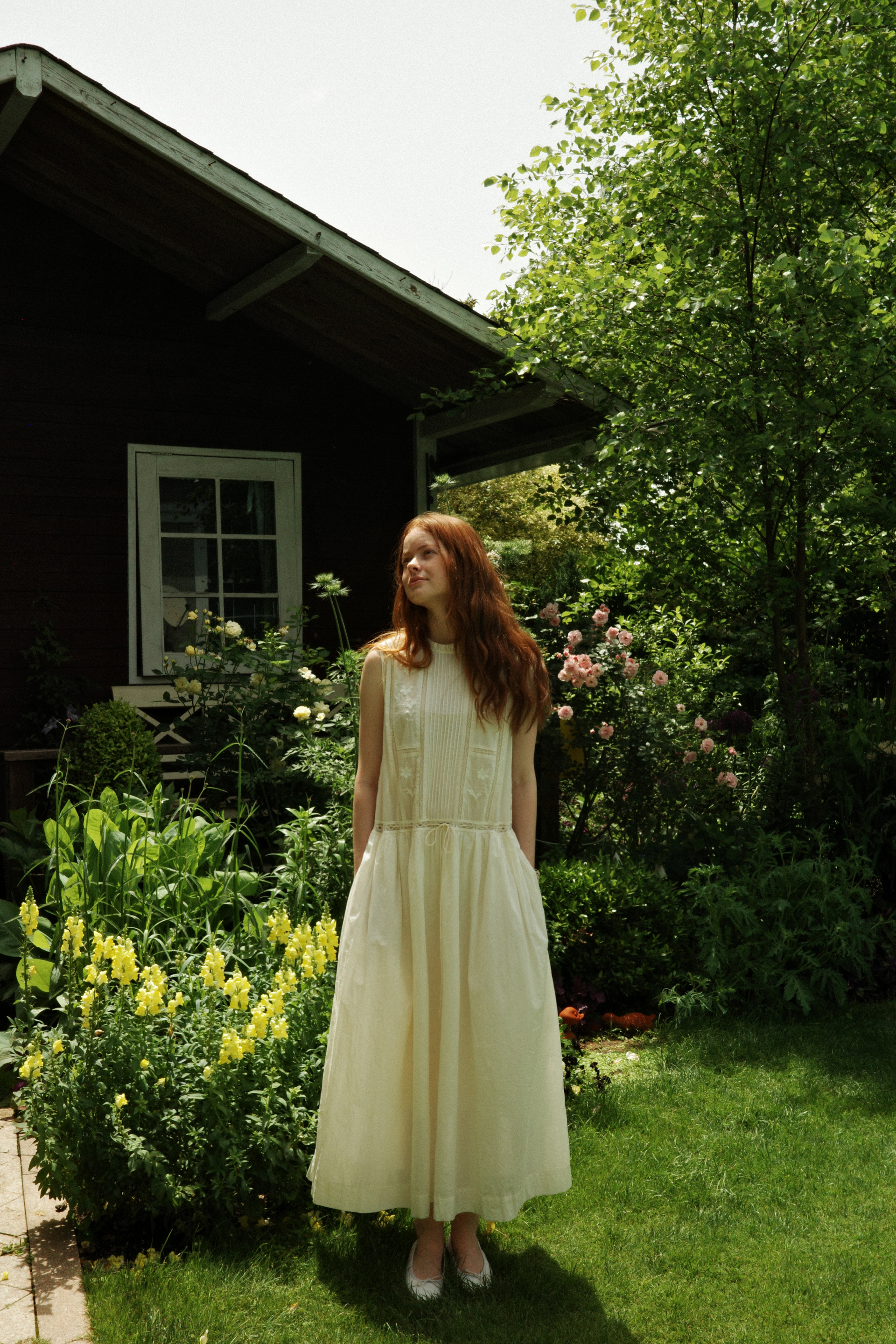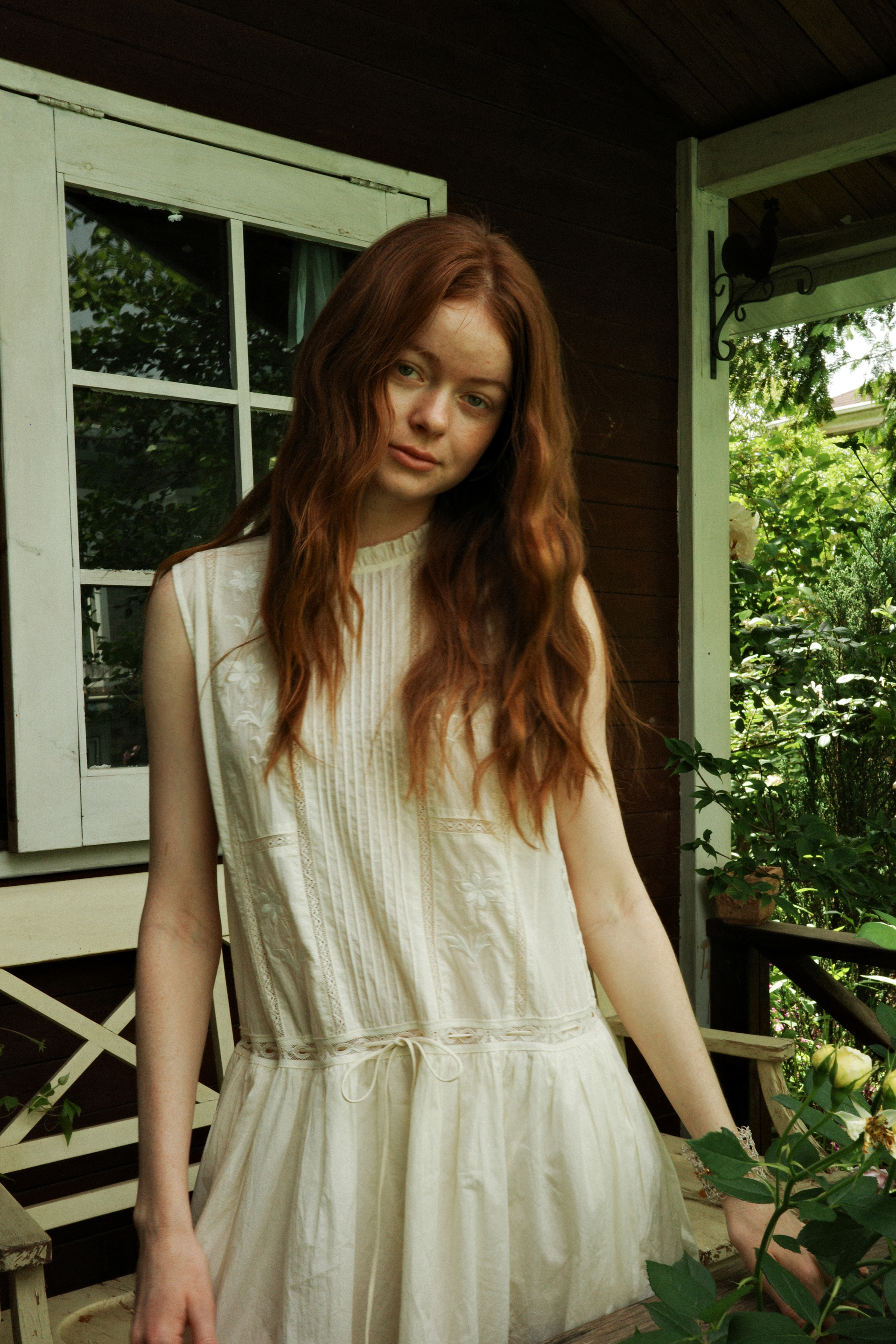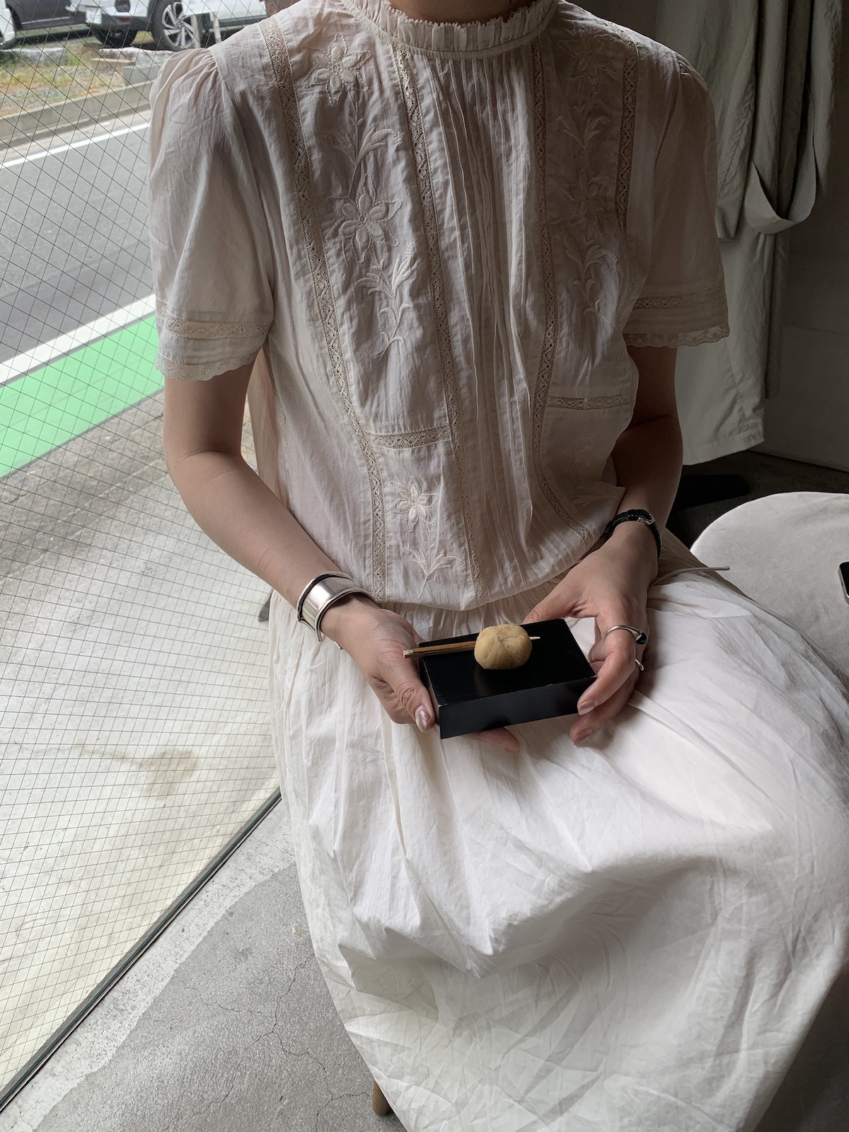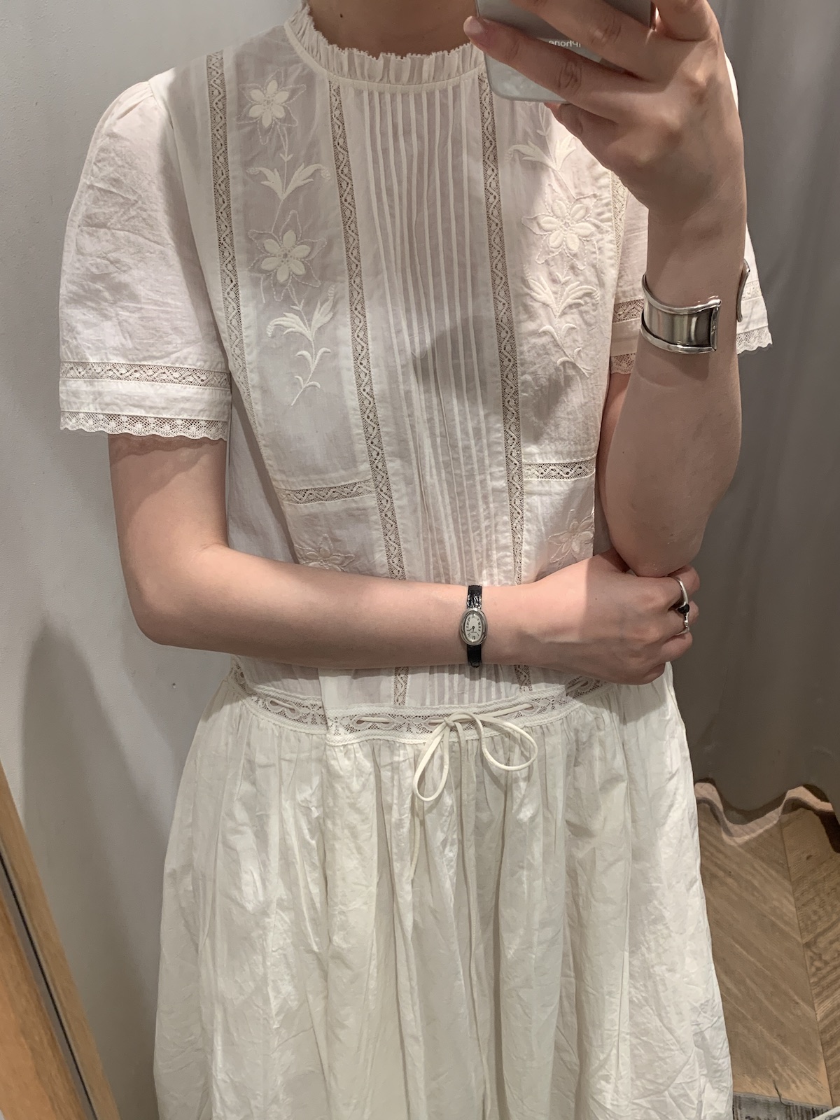 Miroment Delicate Embroidered Small Stand Collar Antique Beige Low-Waist Dress Beige Sleeveless/Short-Sleeve Multiple Images