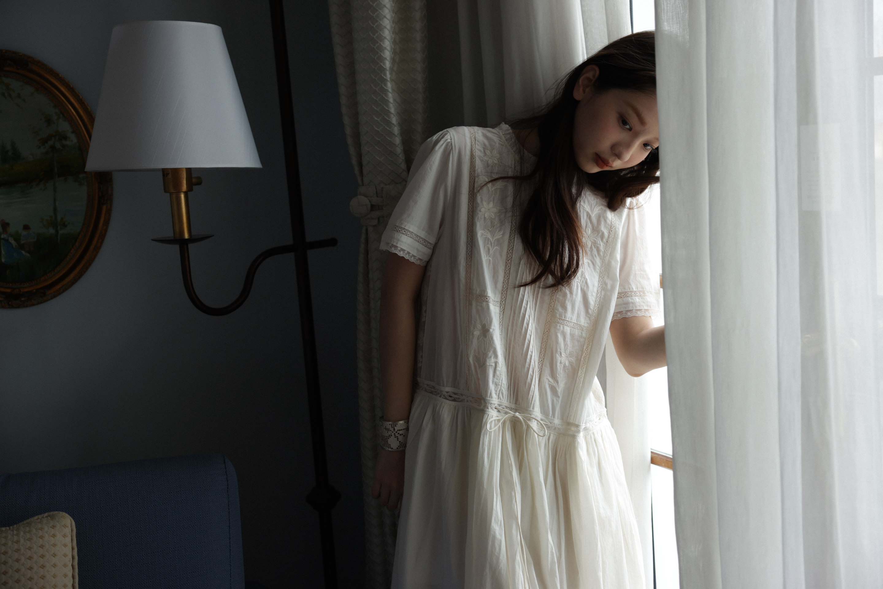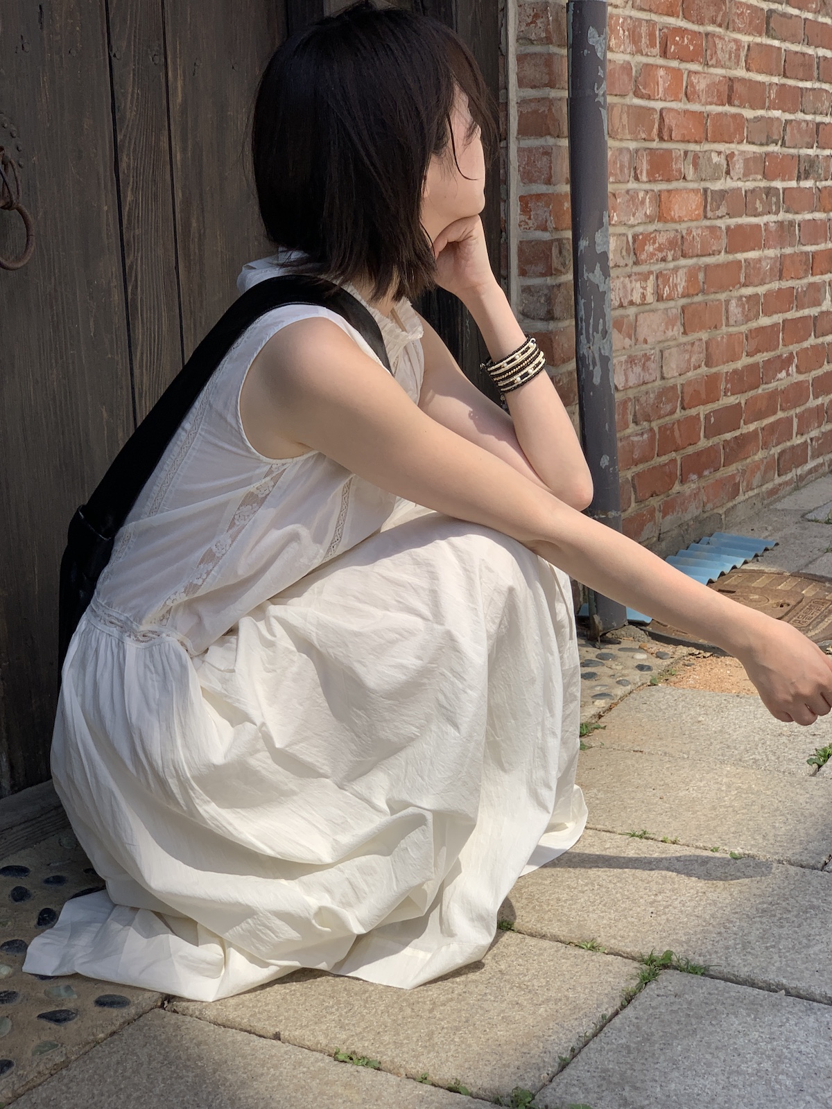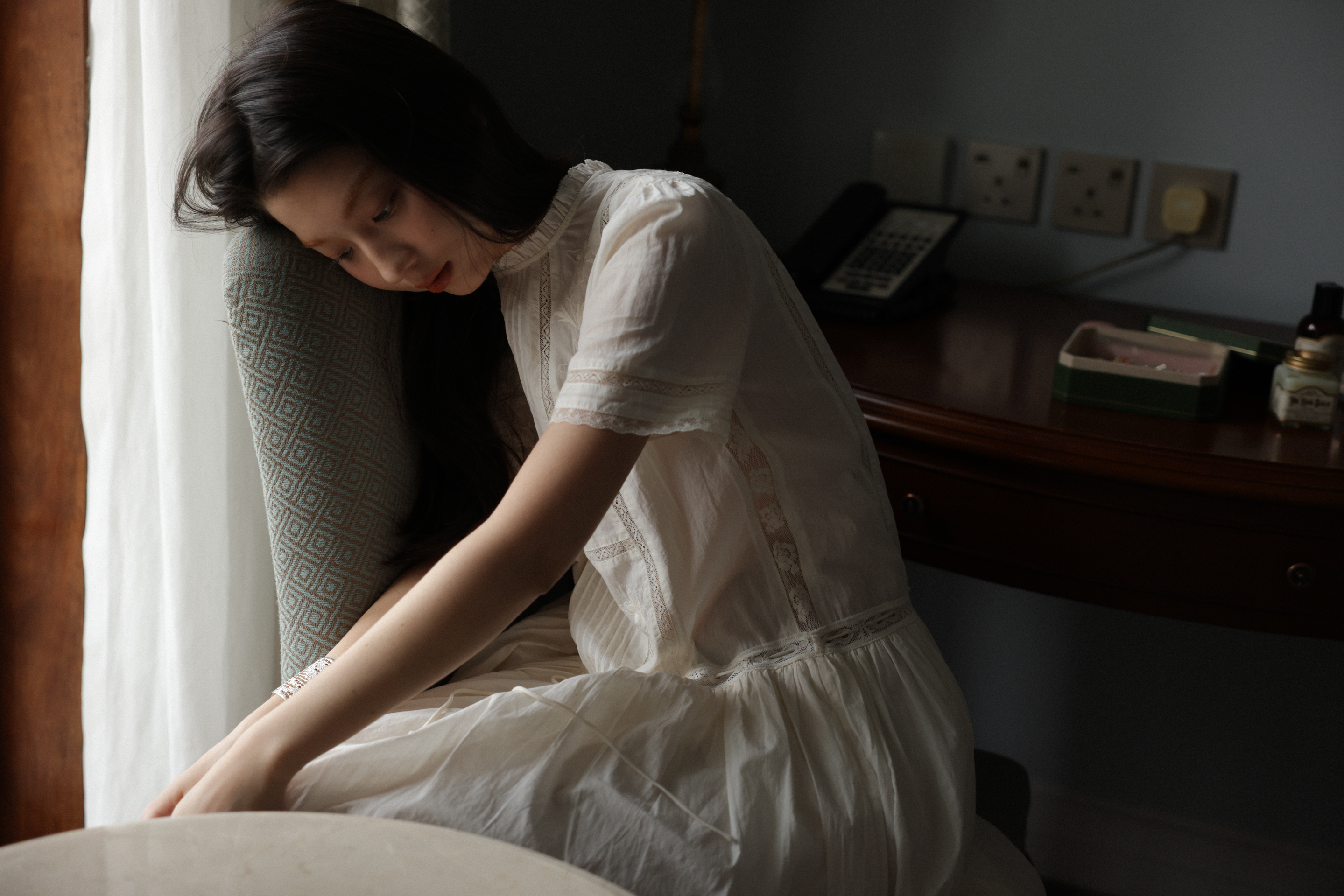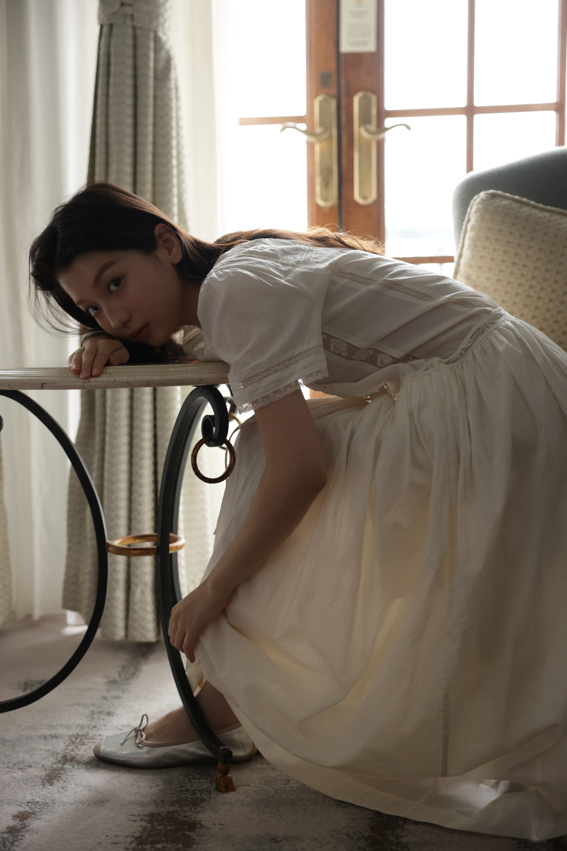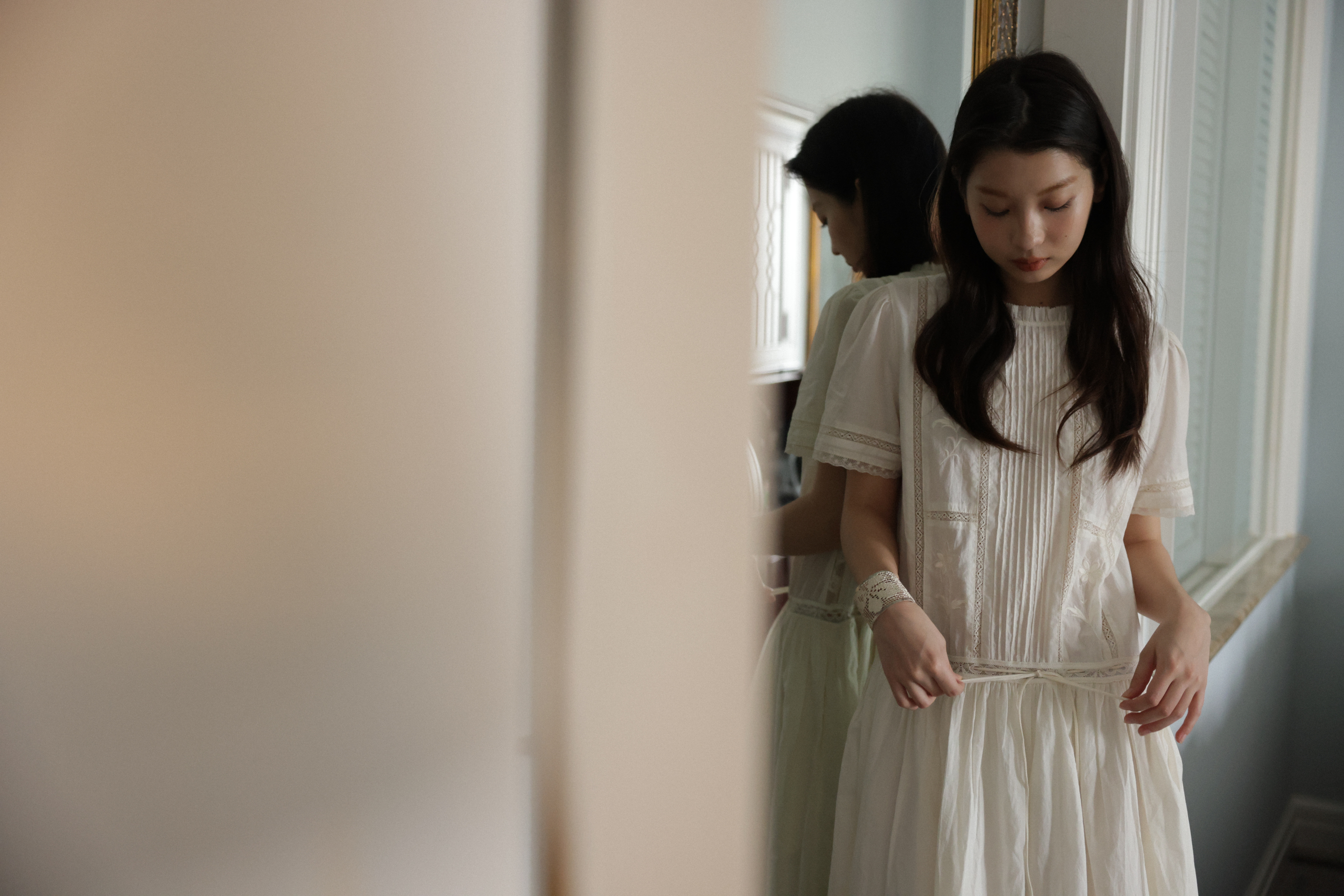 Miroment Delicate Embroidered Small Stand Collar Antique Beige Low-Waist Dress Beige Sleeveless/Short-Sleeve Multiple Images