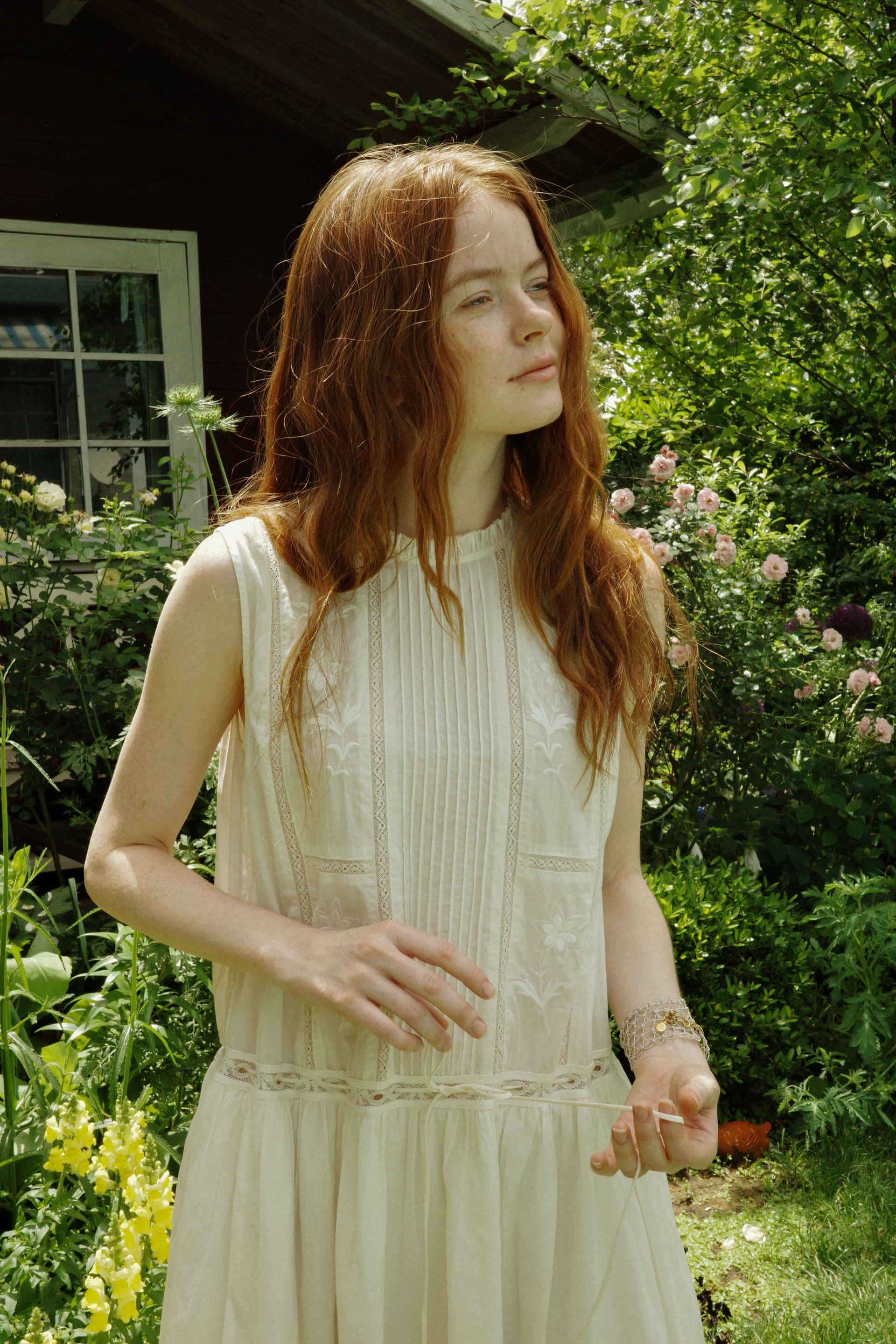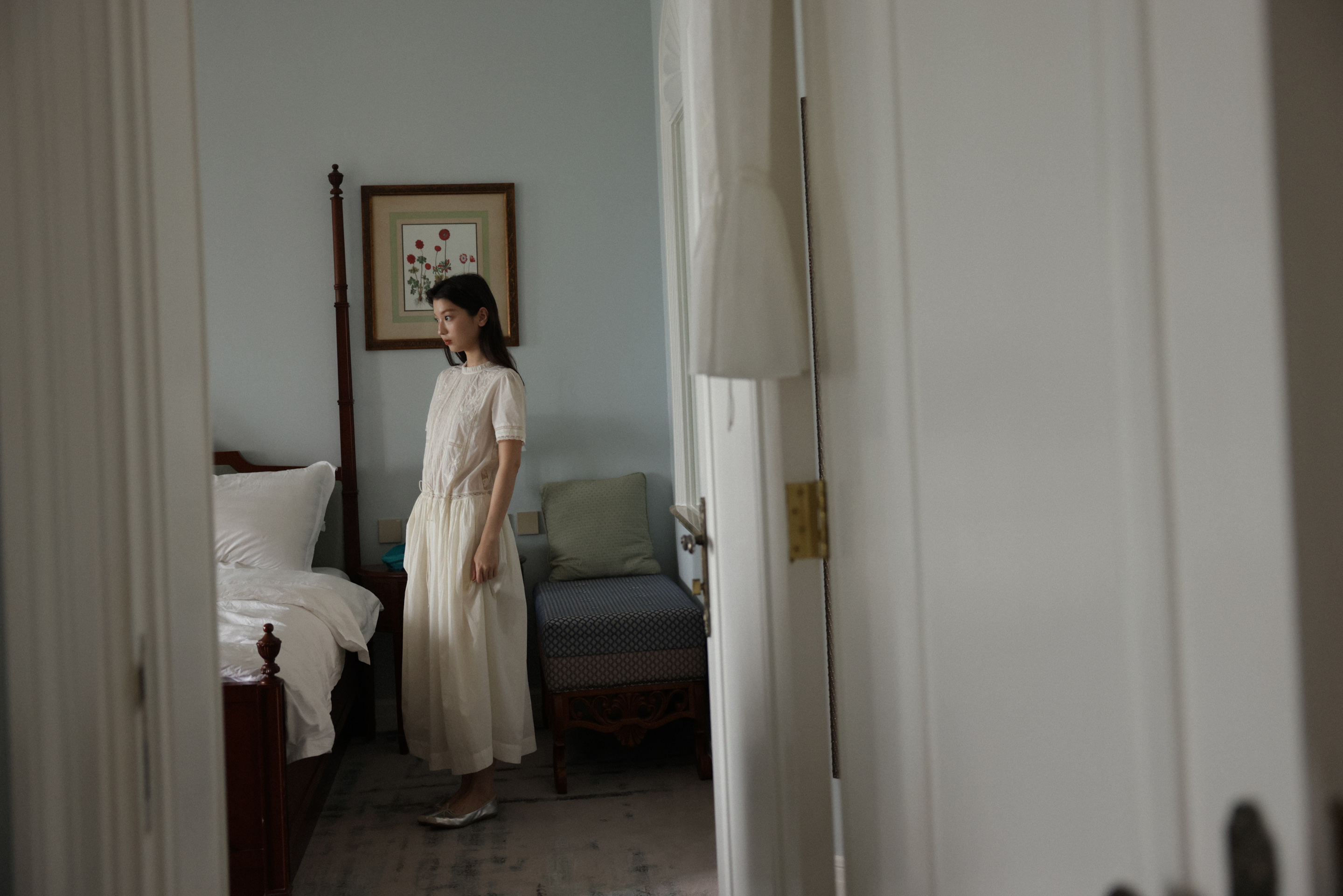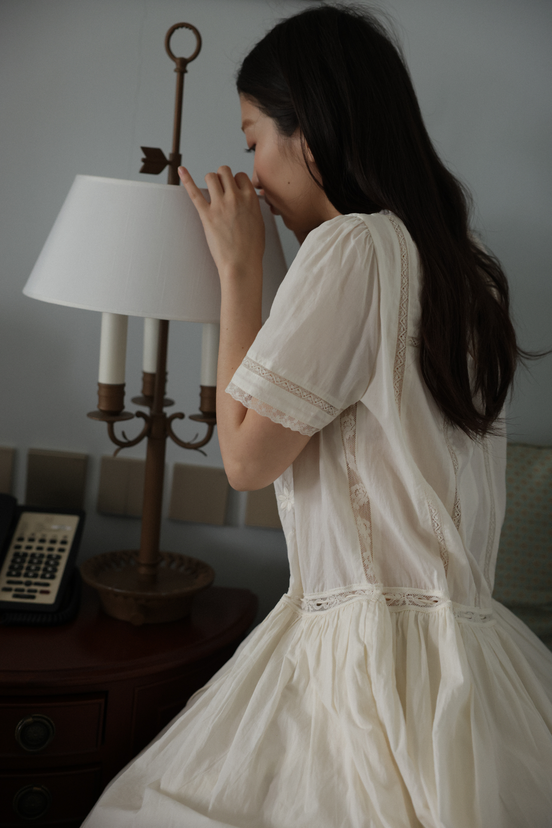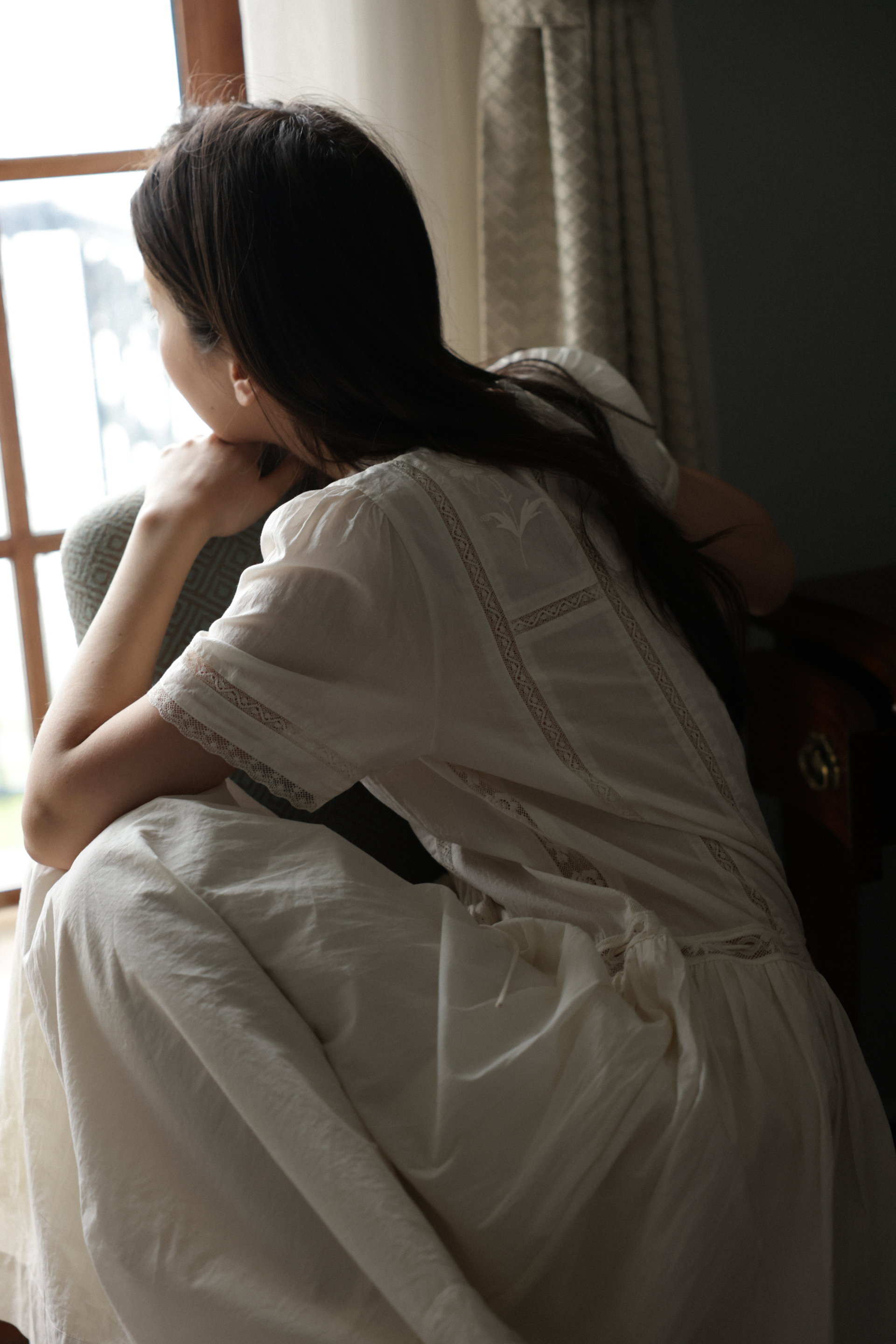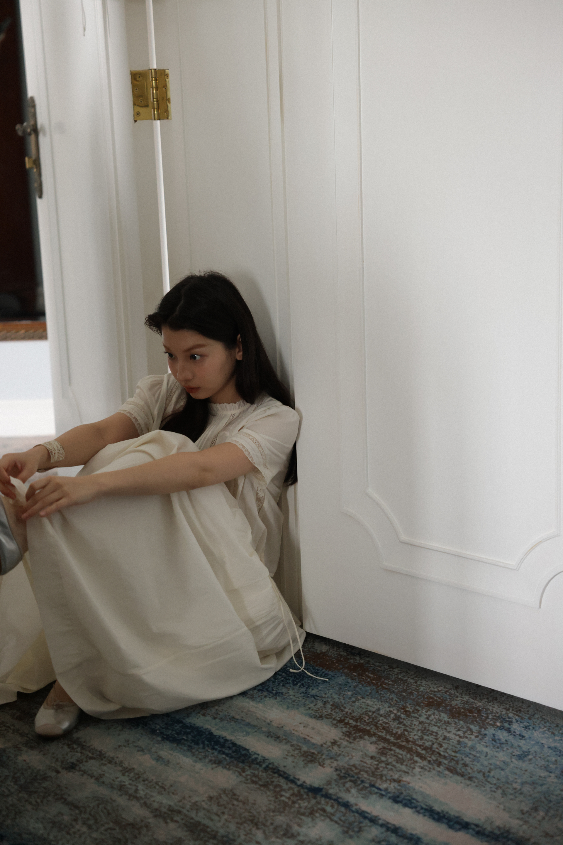Miroment Delicate Embroidered Small Stand Collar Antique Beige Low-Waist Dress Beige Sleeveless/Short-Sleeve Multiple Images