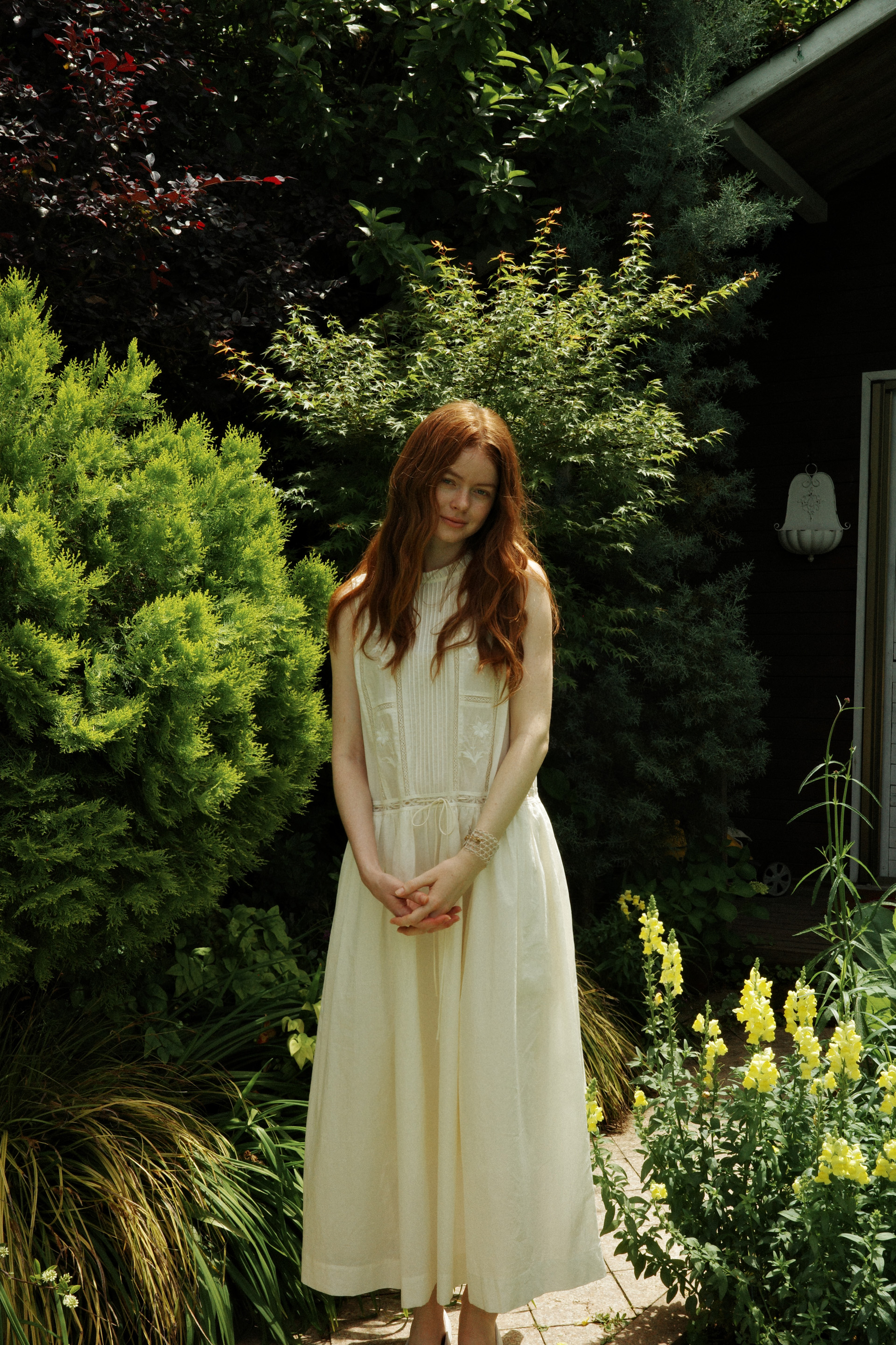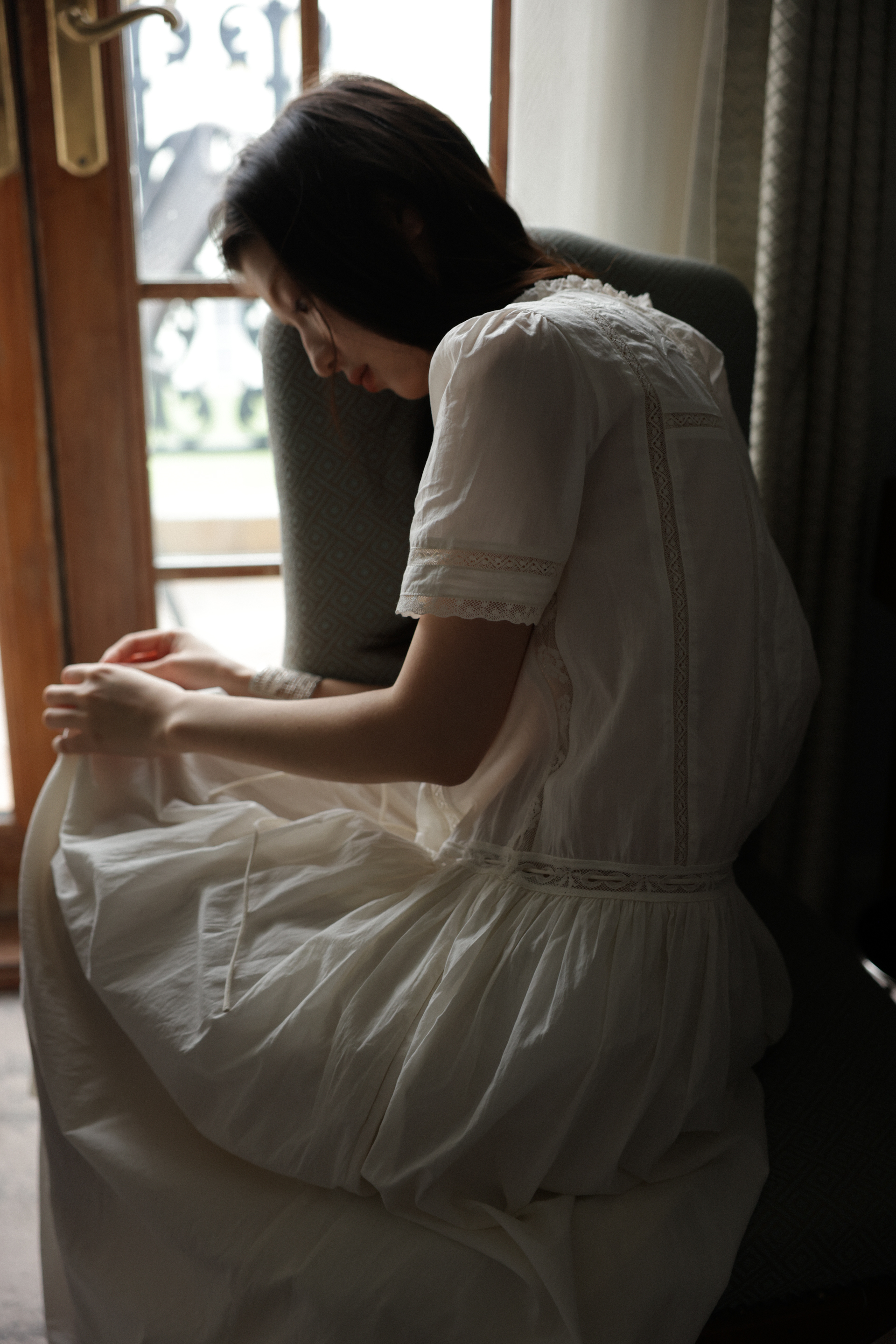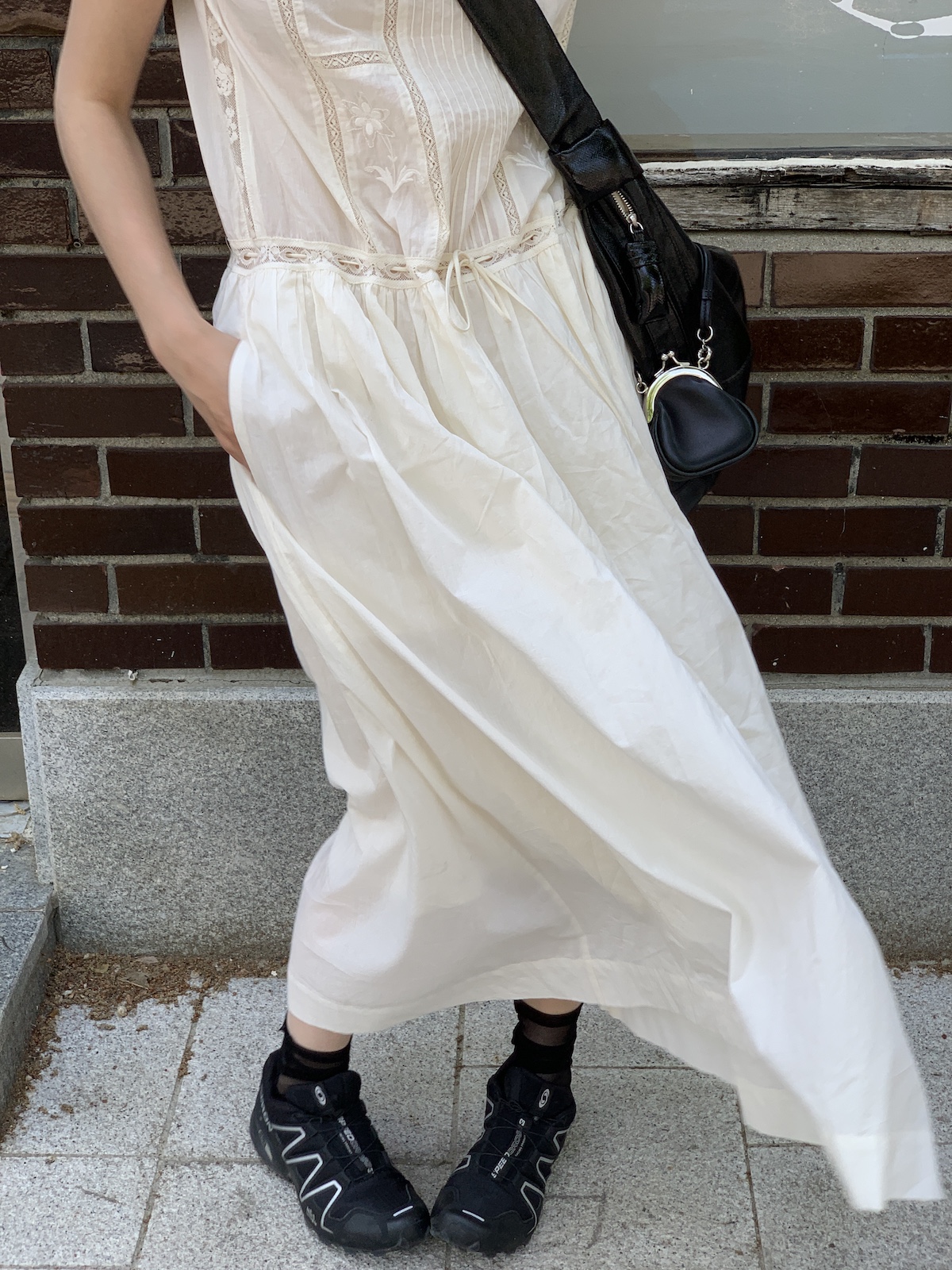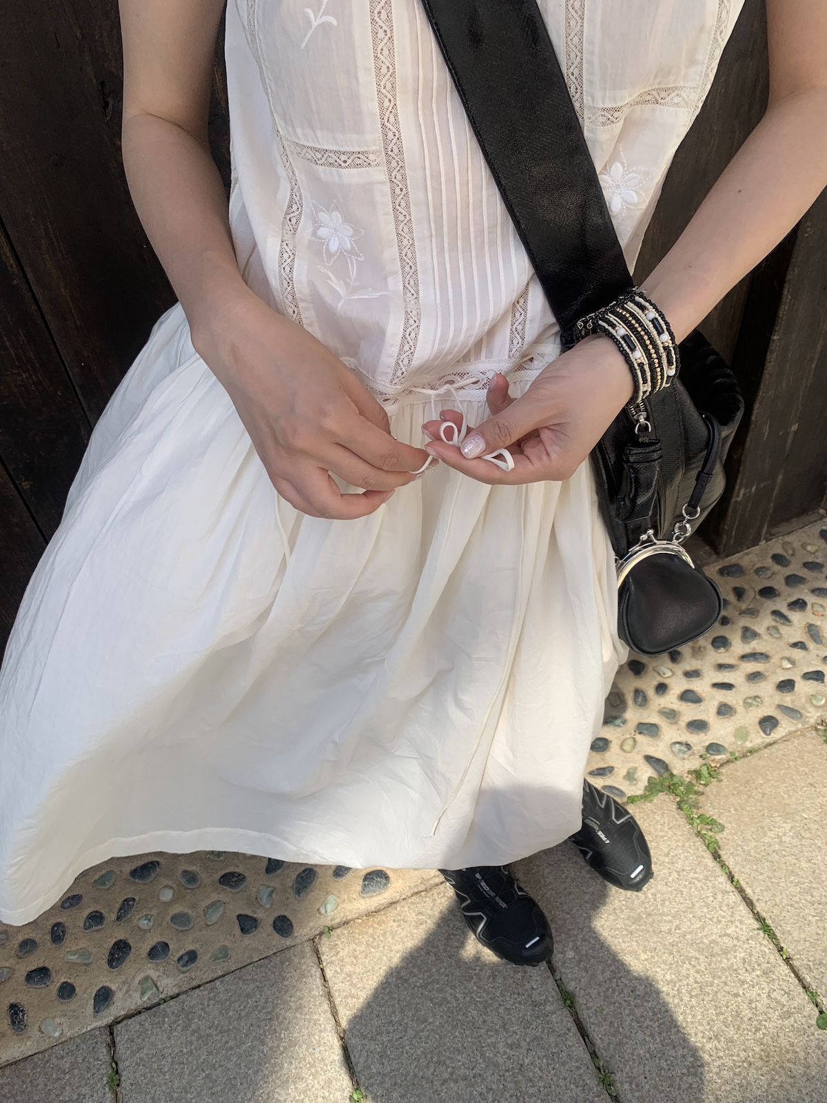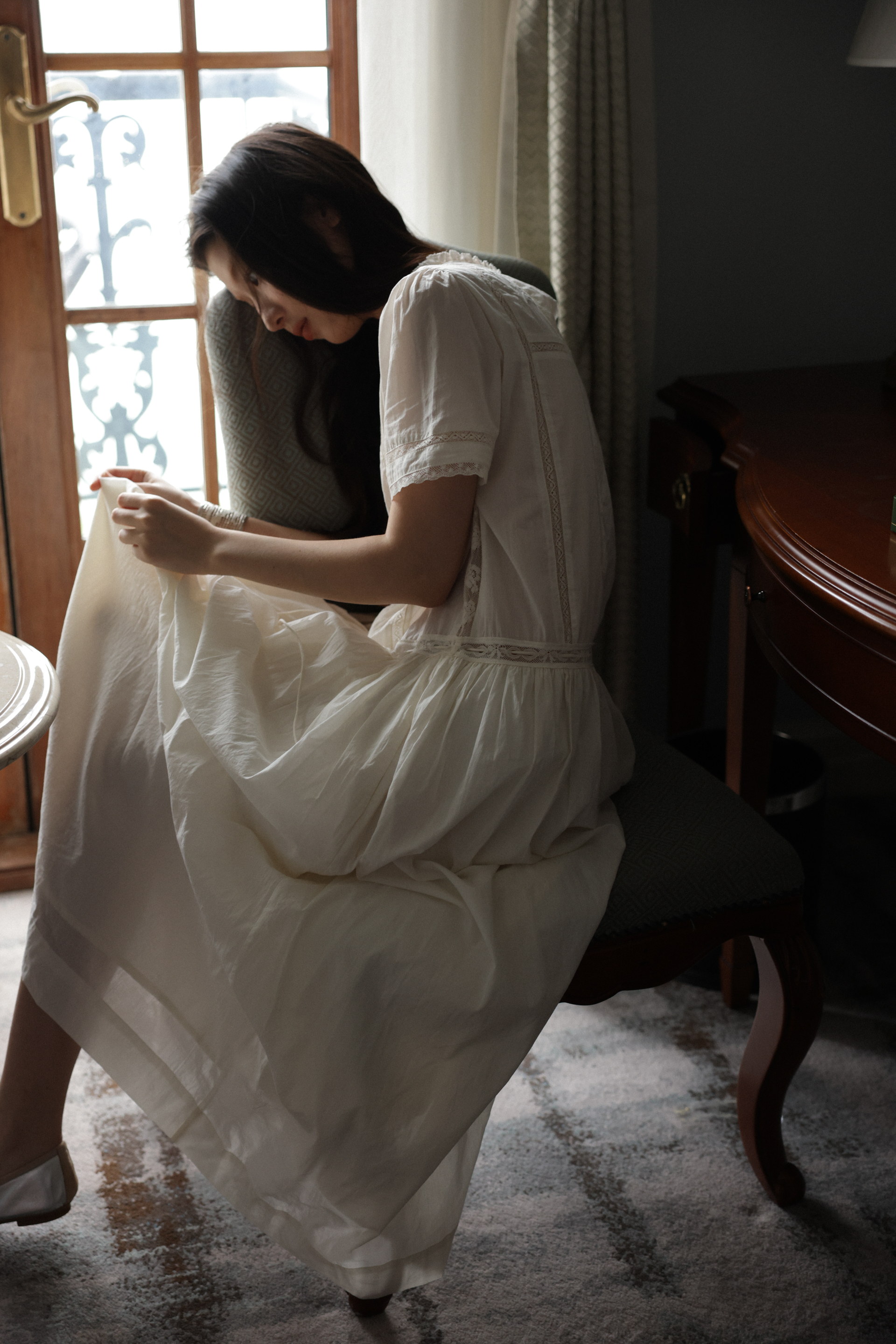 Miroment Delicate Embroidered Small Stand Collar Antique Beige Low-Waist Dress Beige Sleeveless/Short-Sleeve Multiple Images