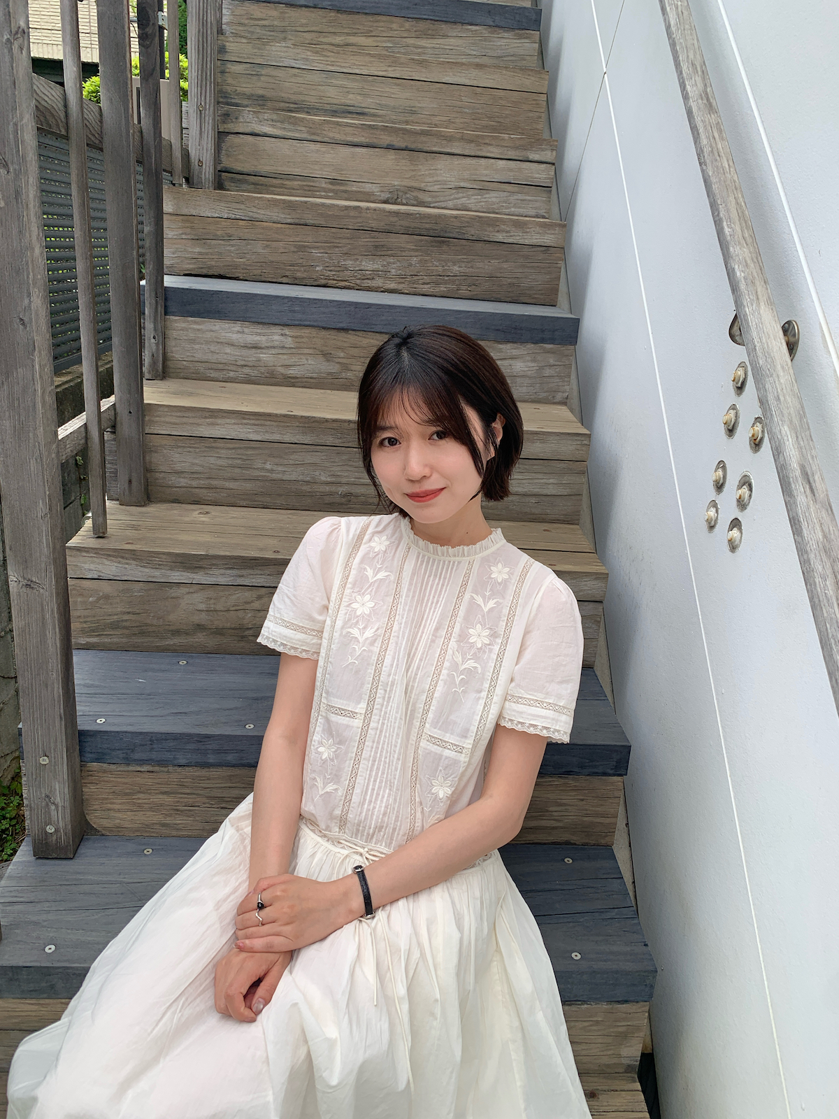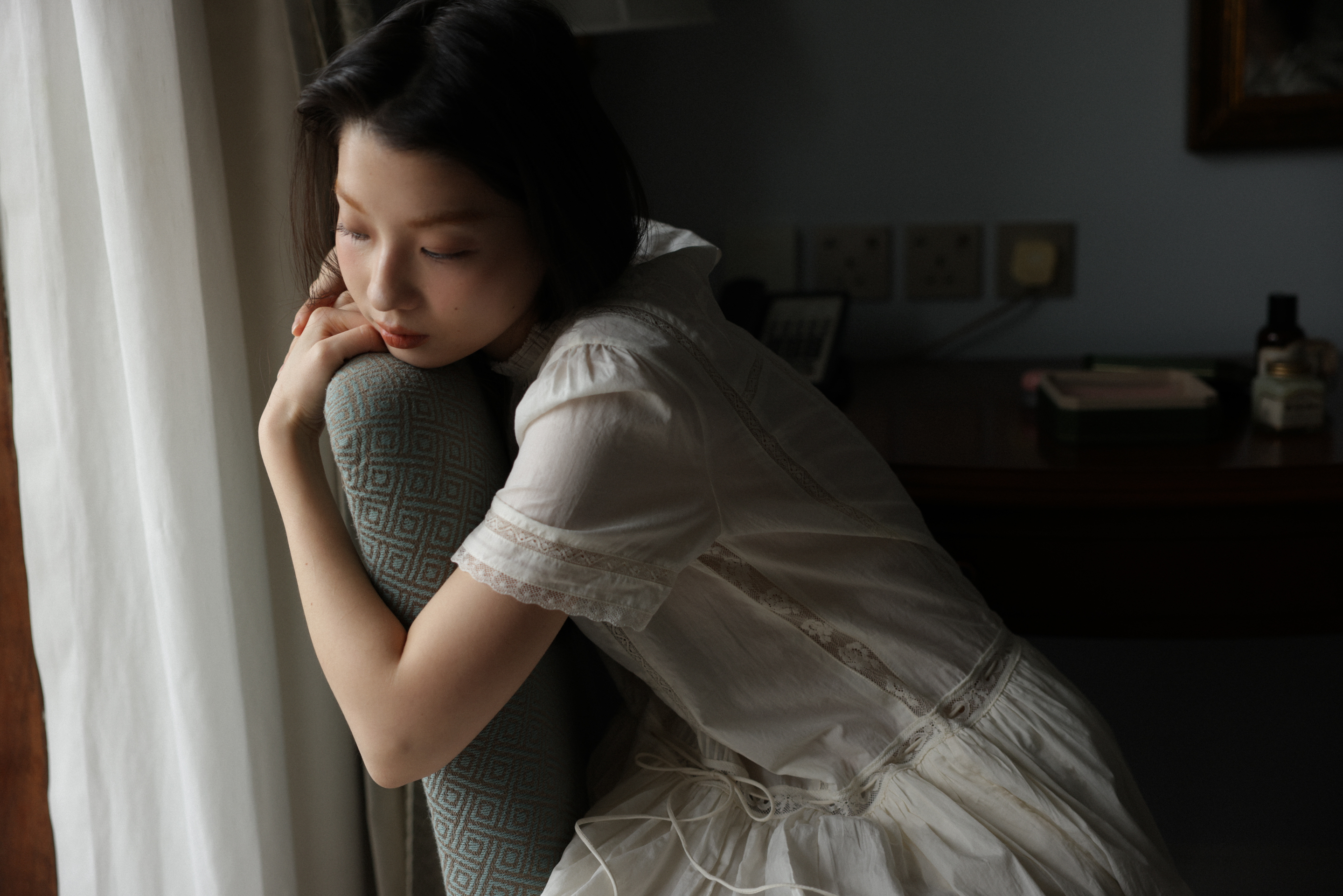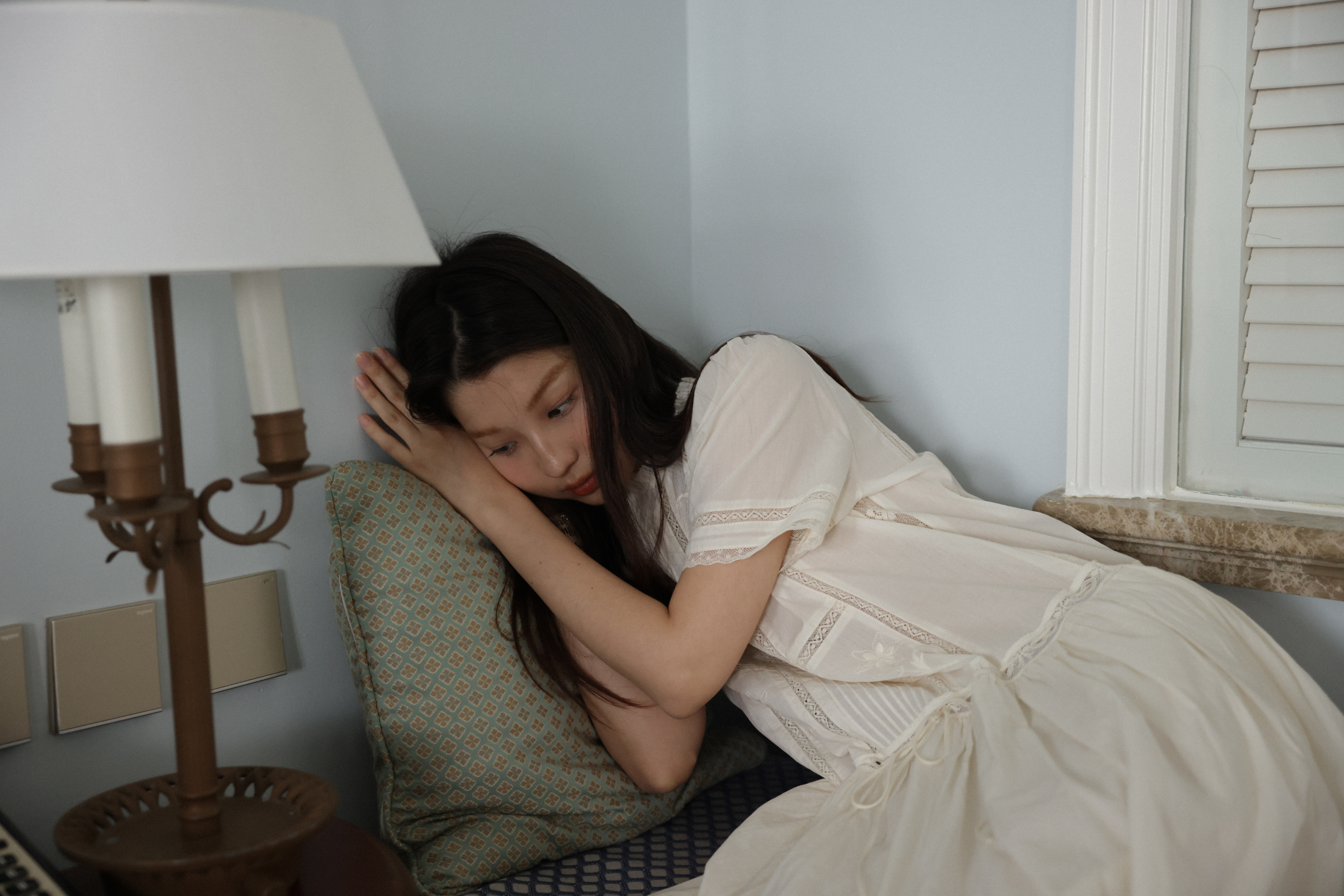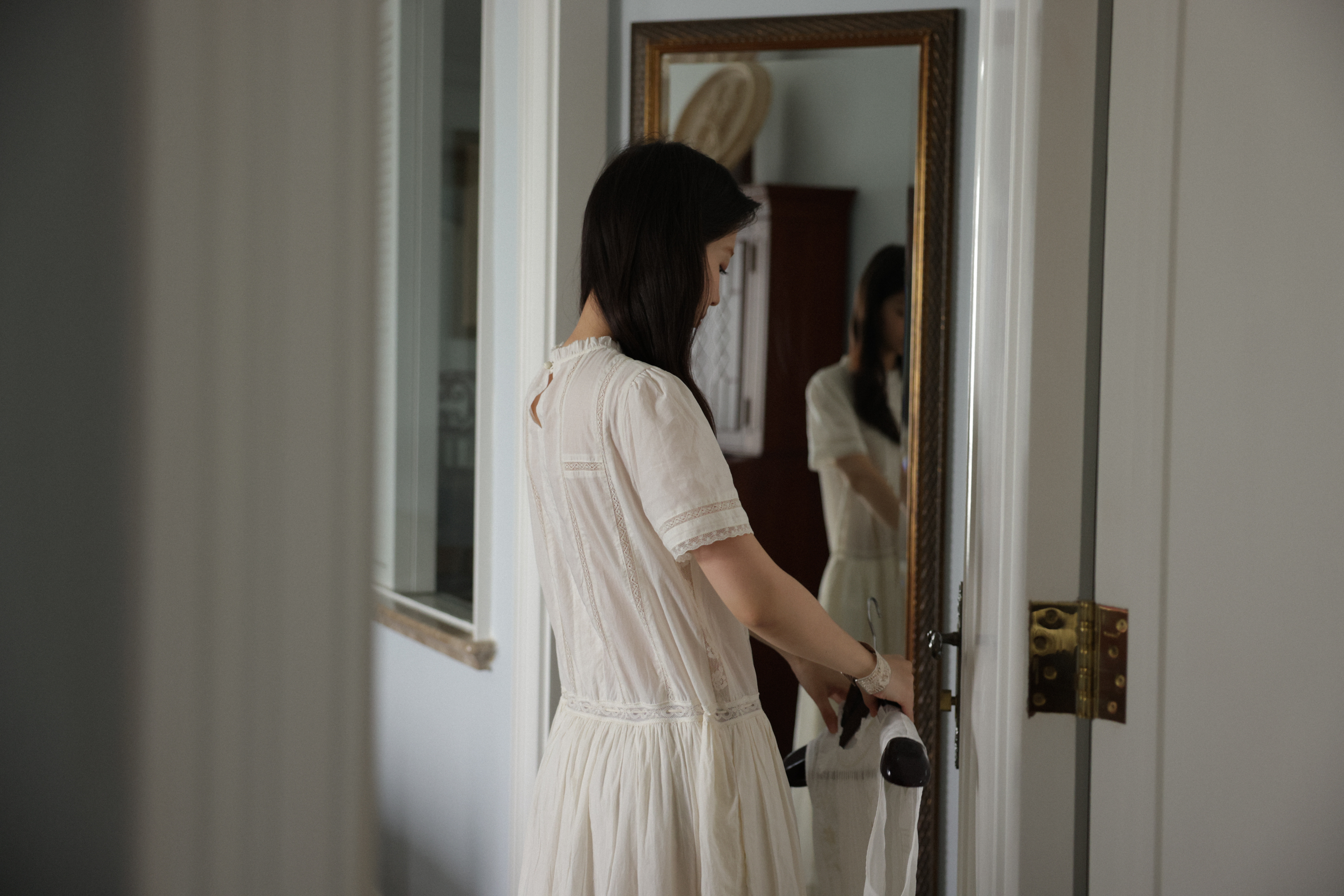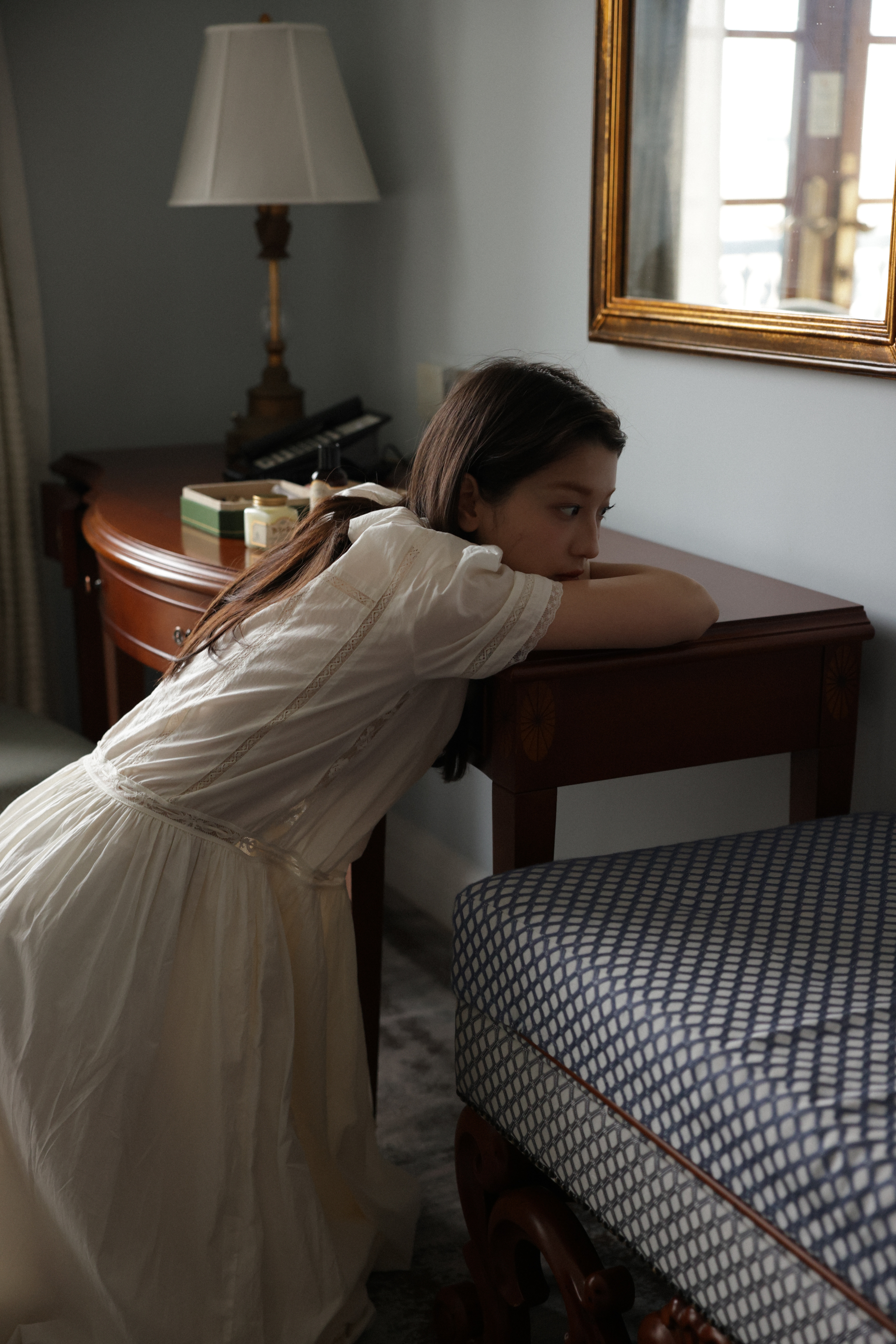 Miroment Delicate Embroidered Small Stand Collar Antique Beige Low-Waist Dress Beige Sleeveless/Short-Sleeve Multiple Images
