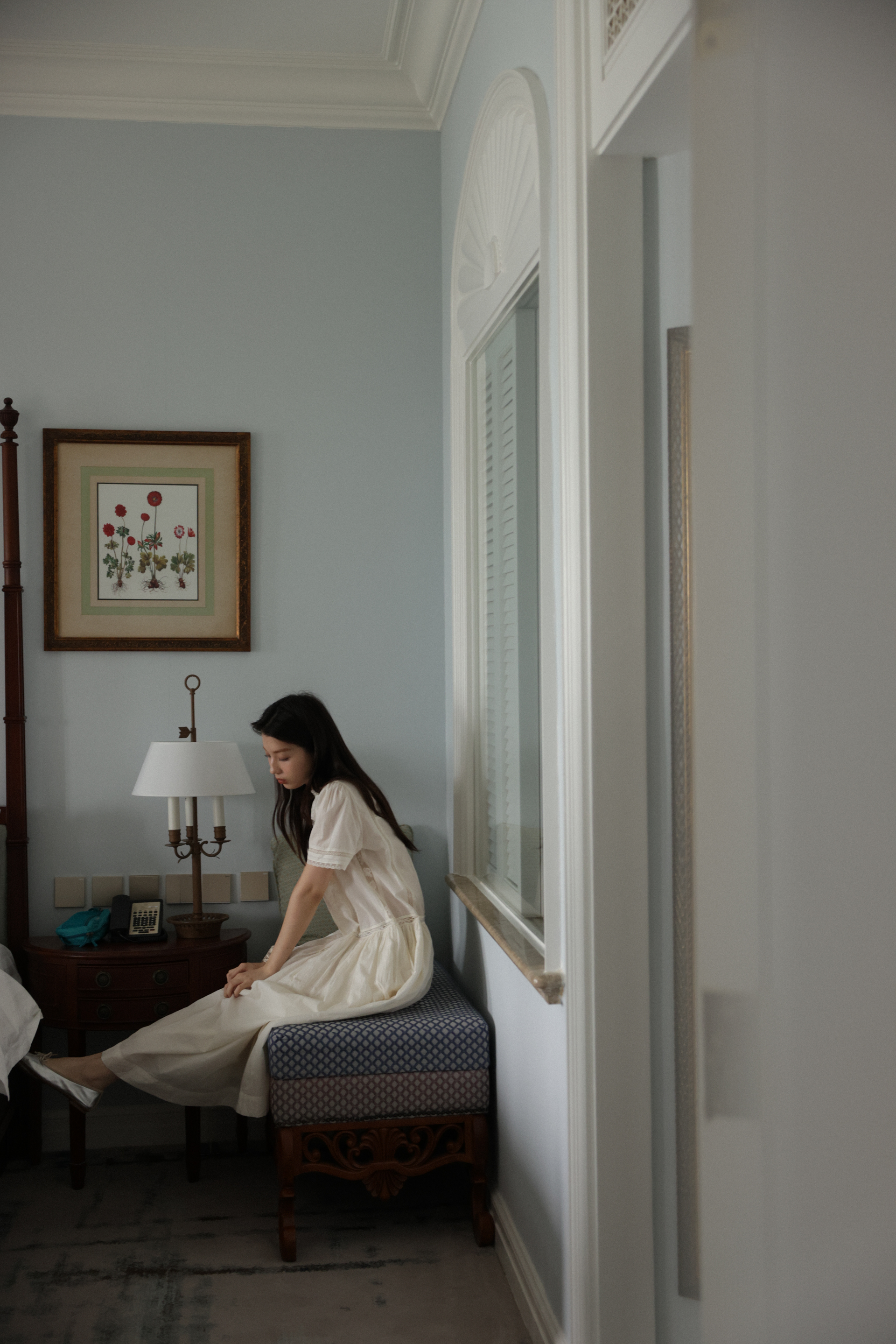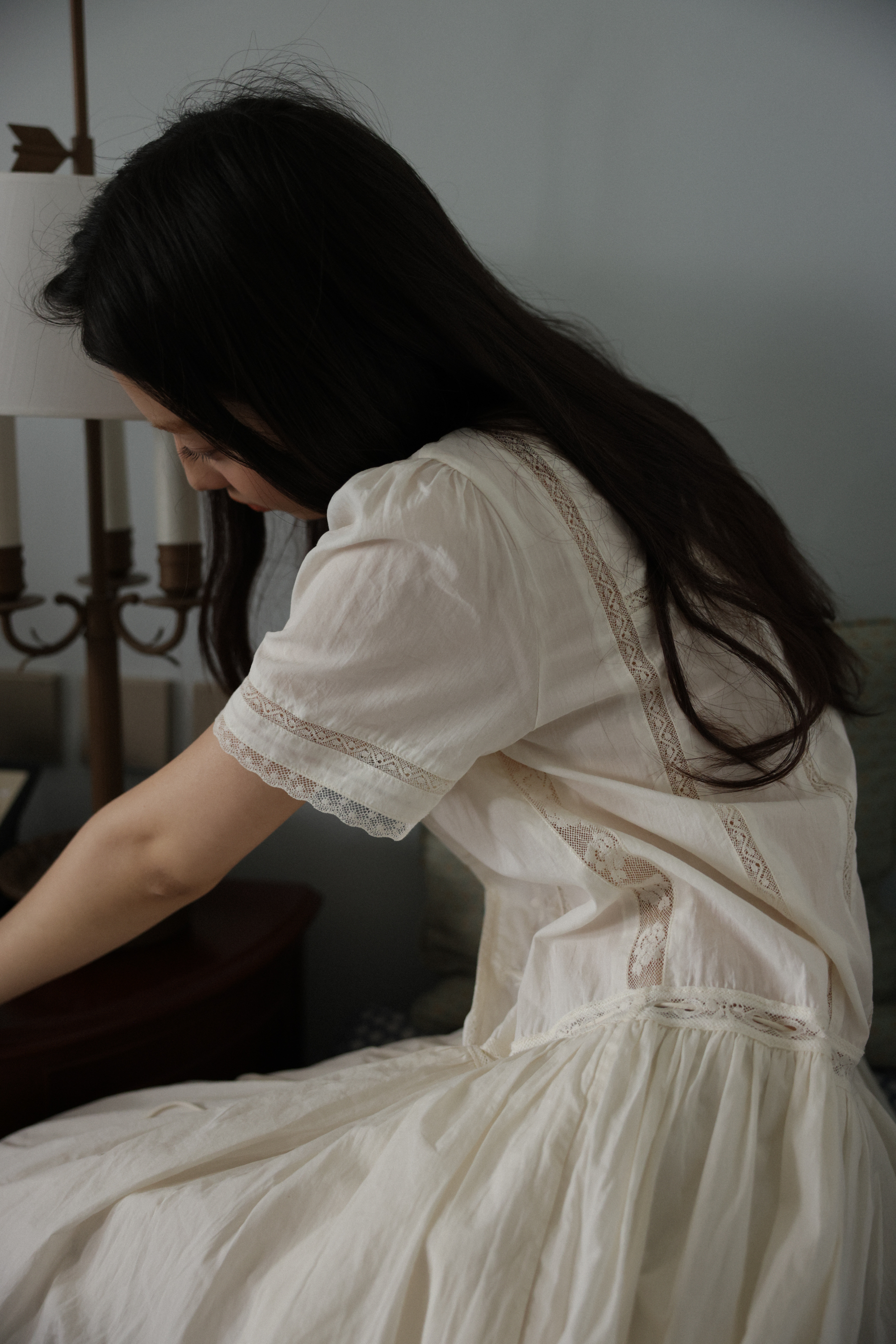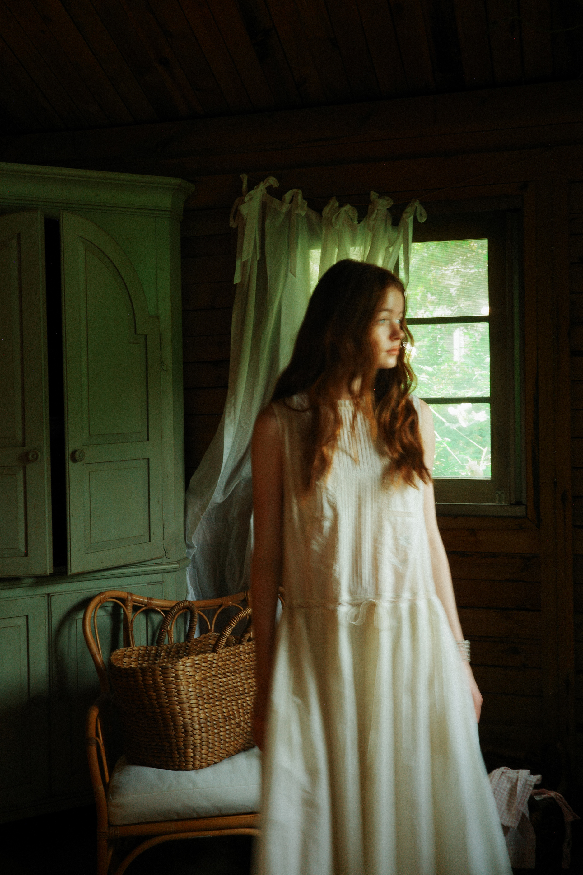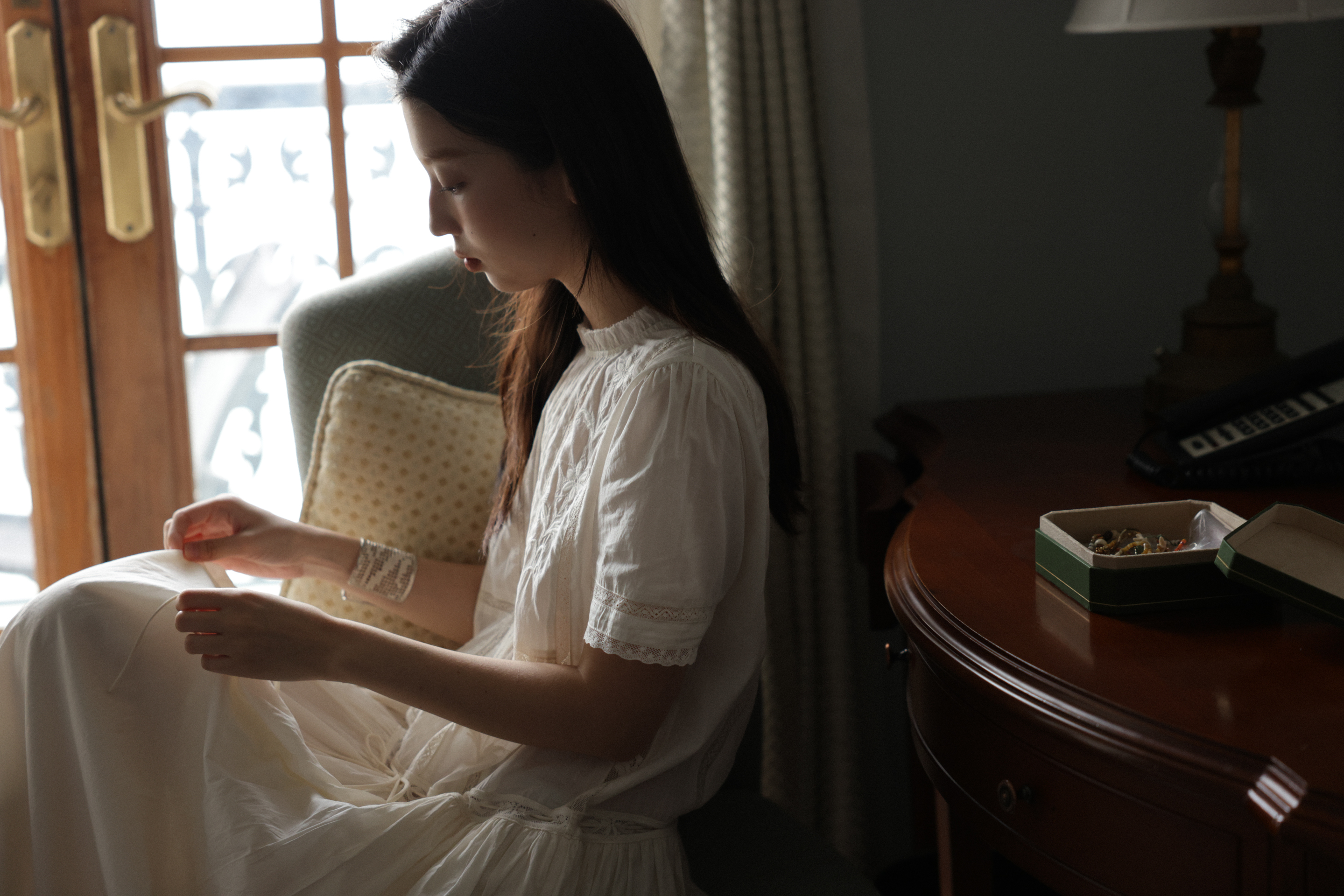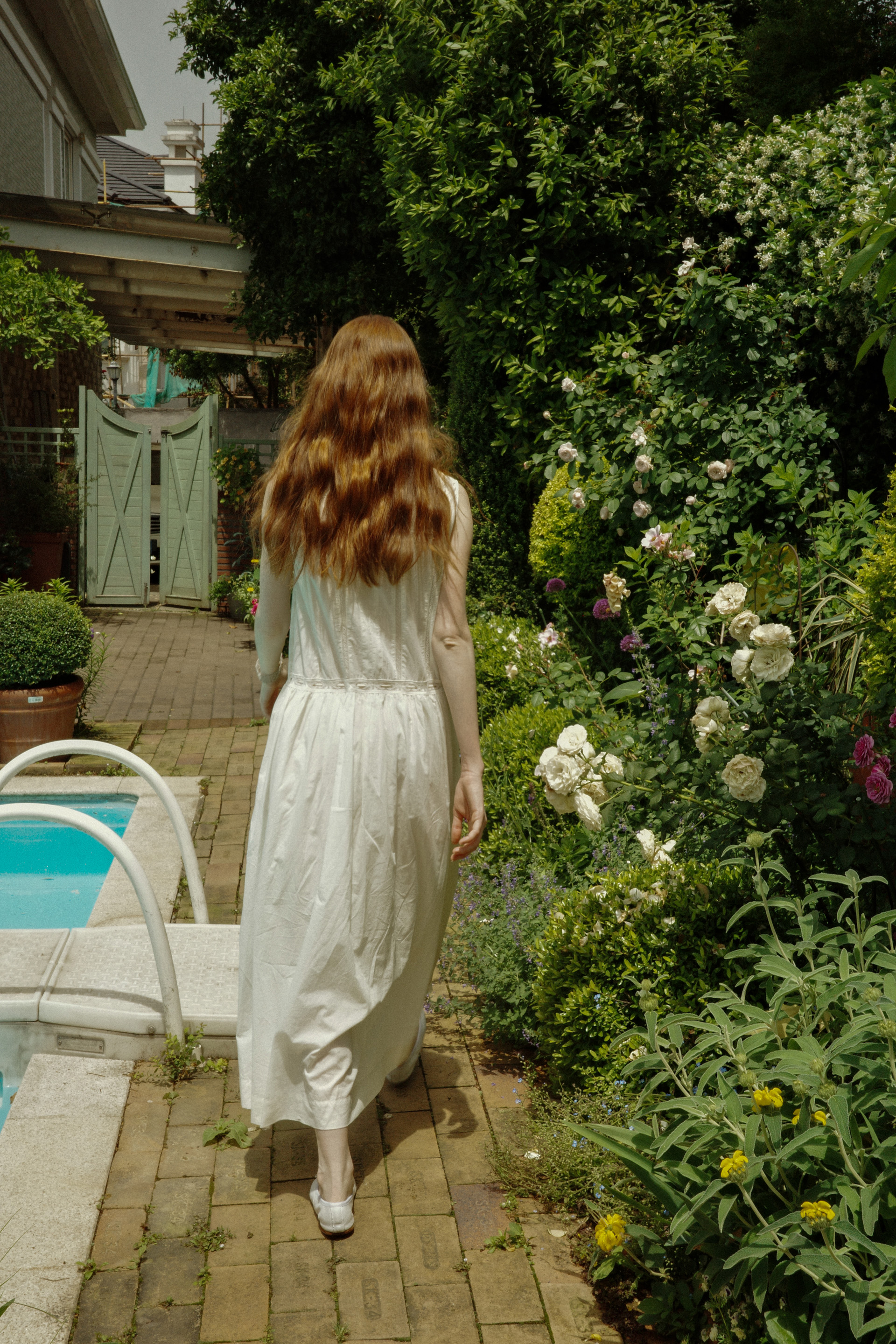 Miroment Delicate Embroidered Small Stand Collar Antique Beige Low-Waist Dress Beige Sleeveless/Short-Sleeve Multiple Images