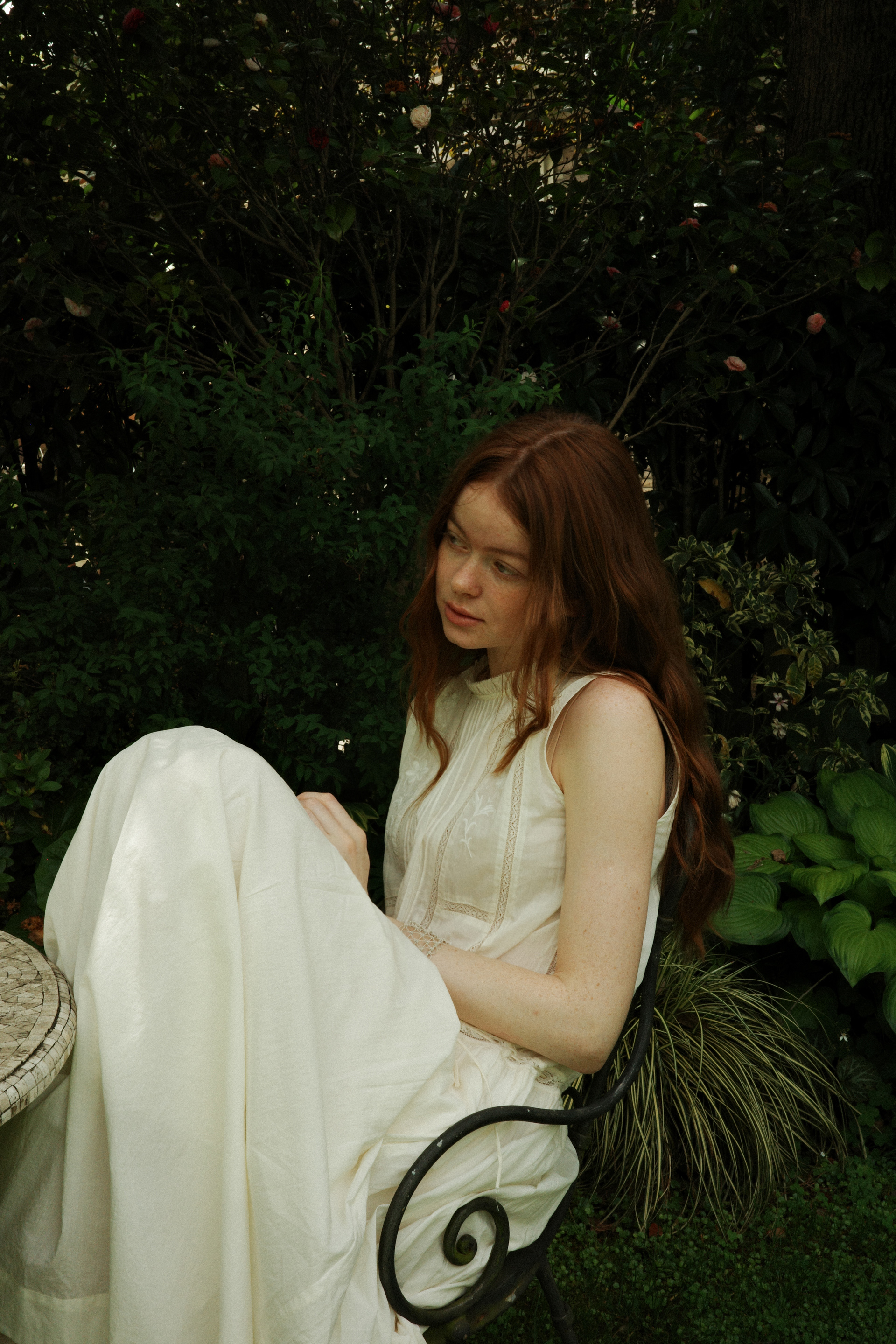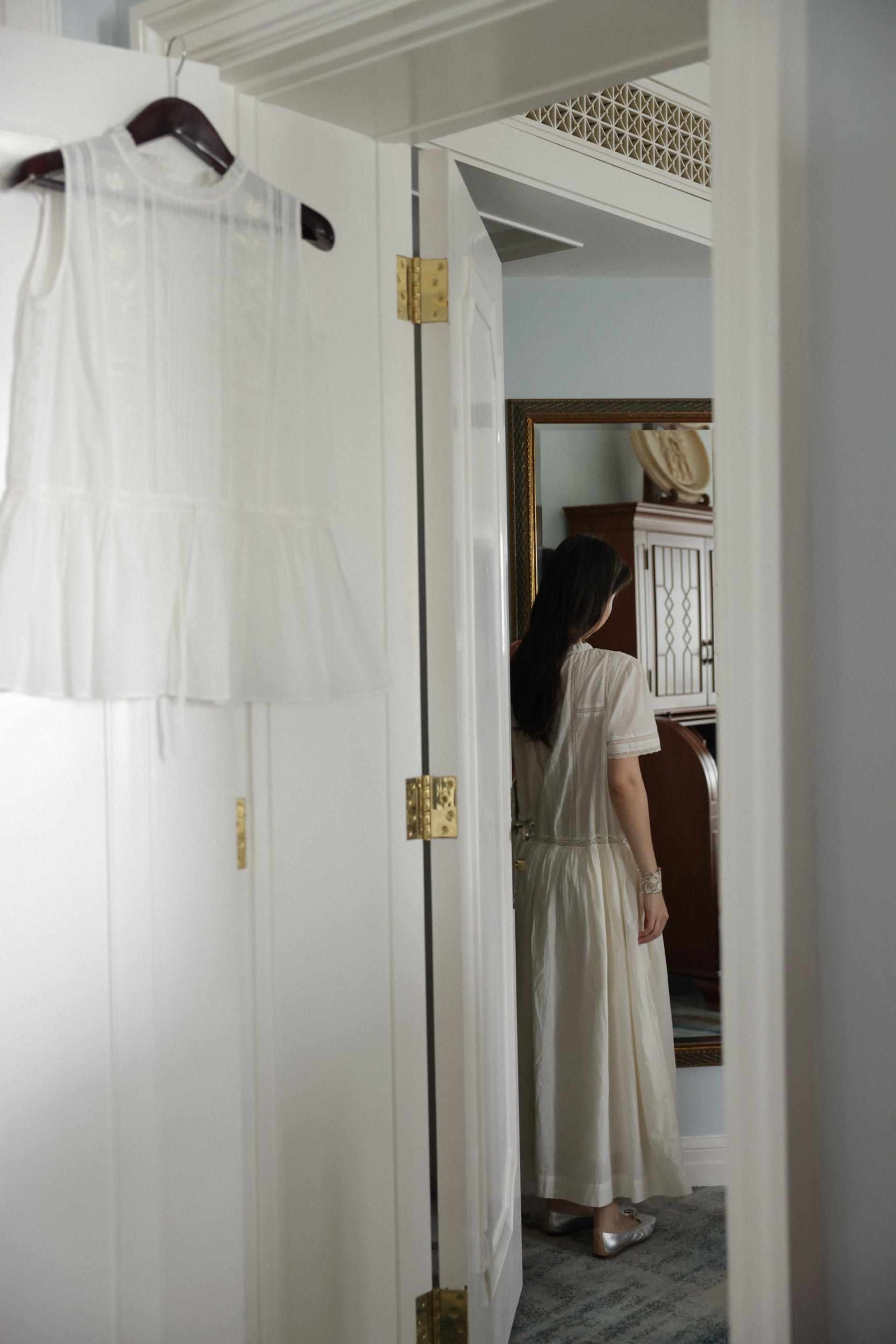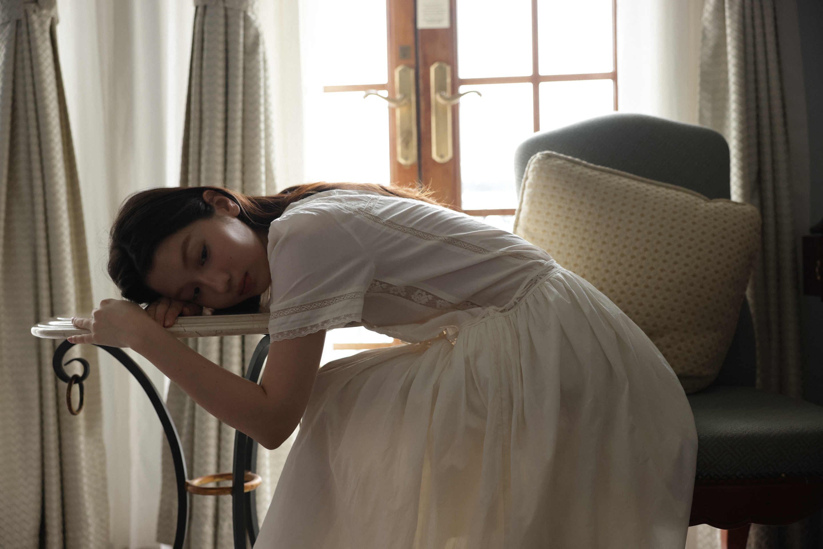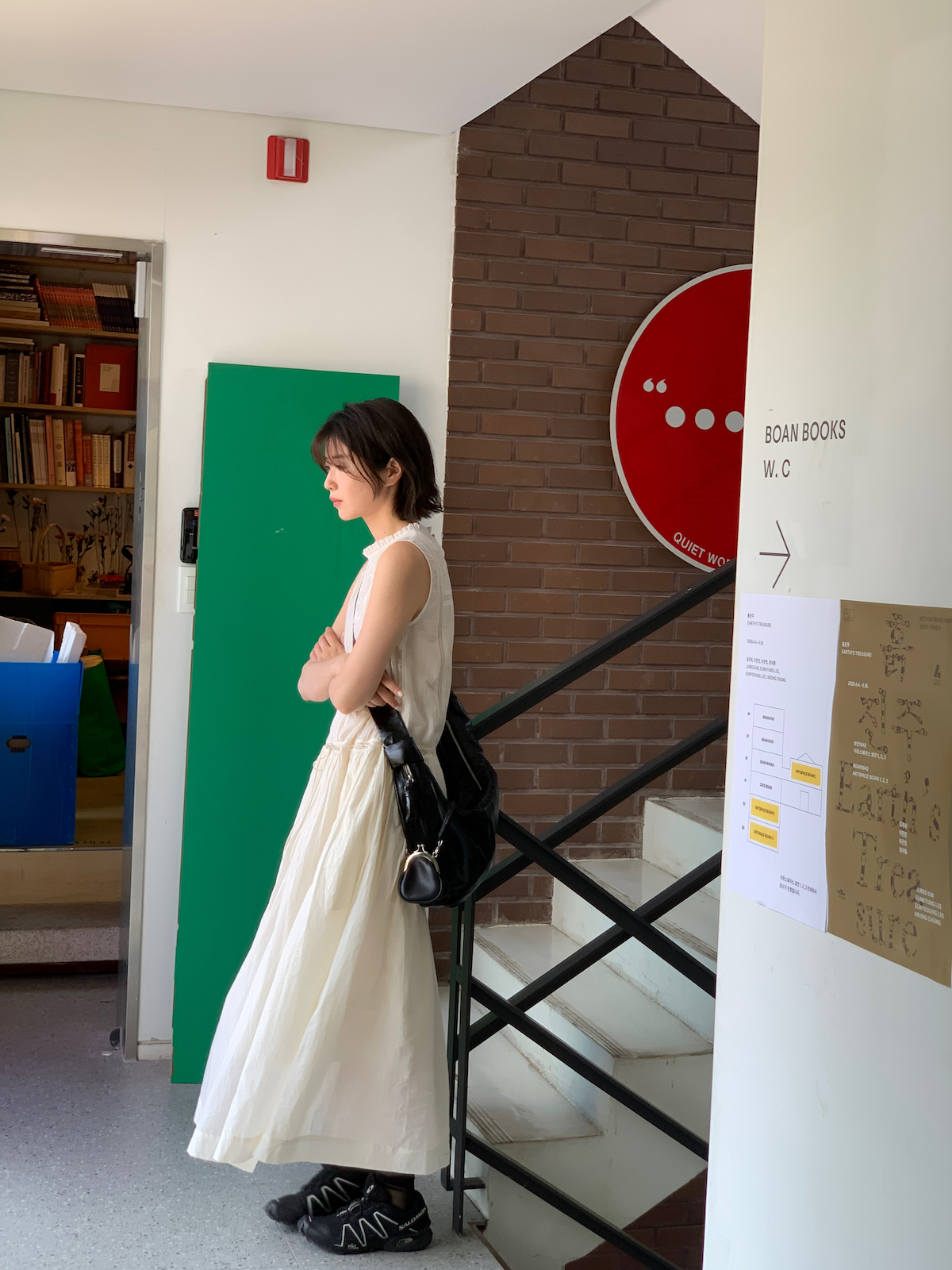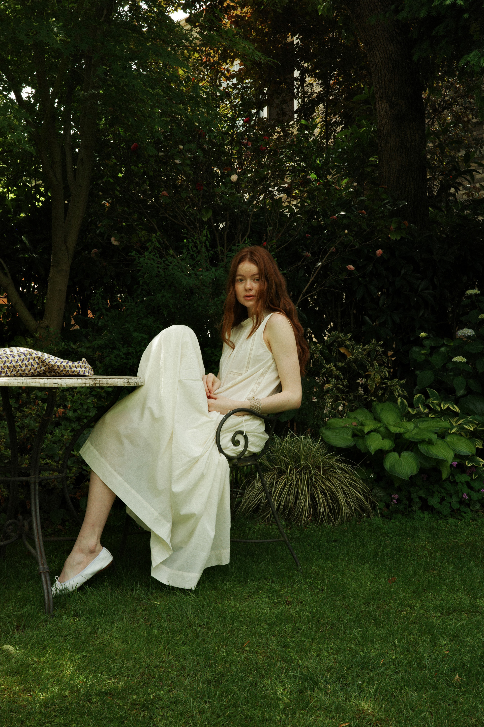 Miroment Delicate Embroidered Small Stand Collar Antique Beige Low-Waist Dress Beige Sleeveless/Short-Sleeve Multiple Images