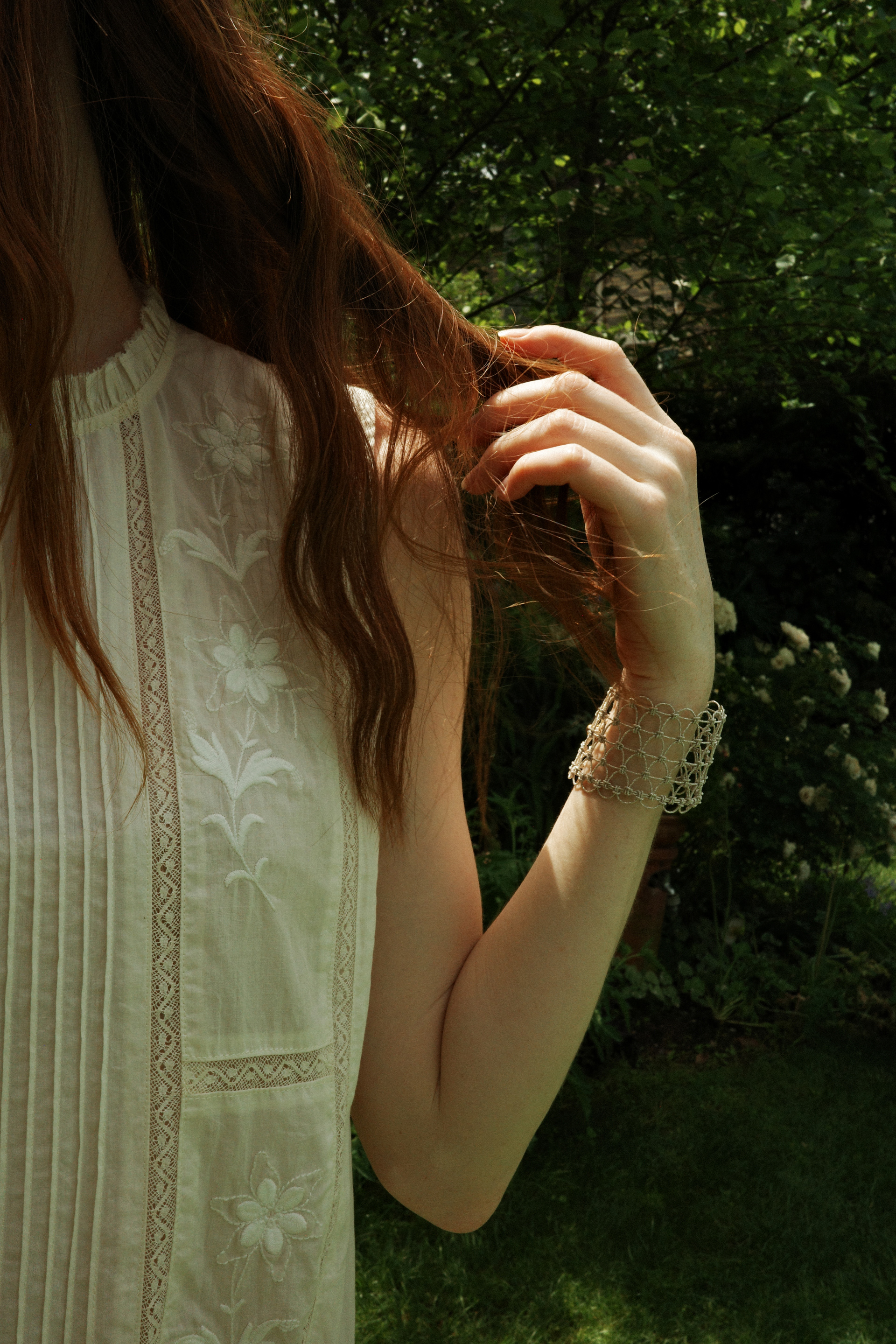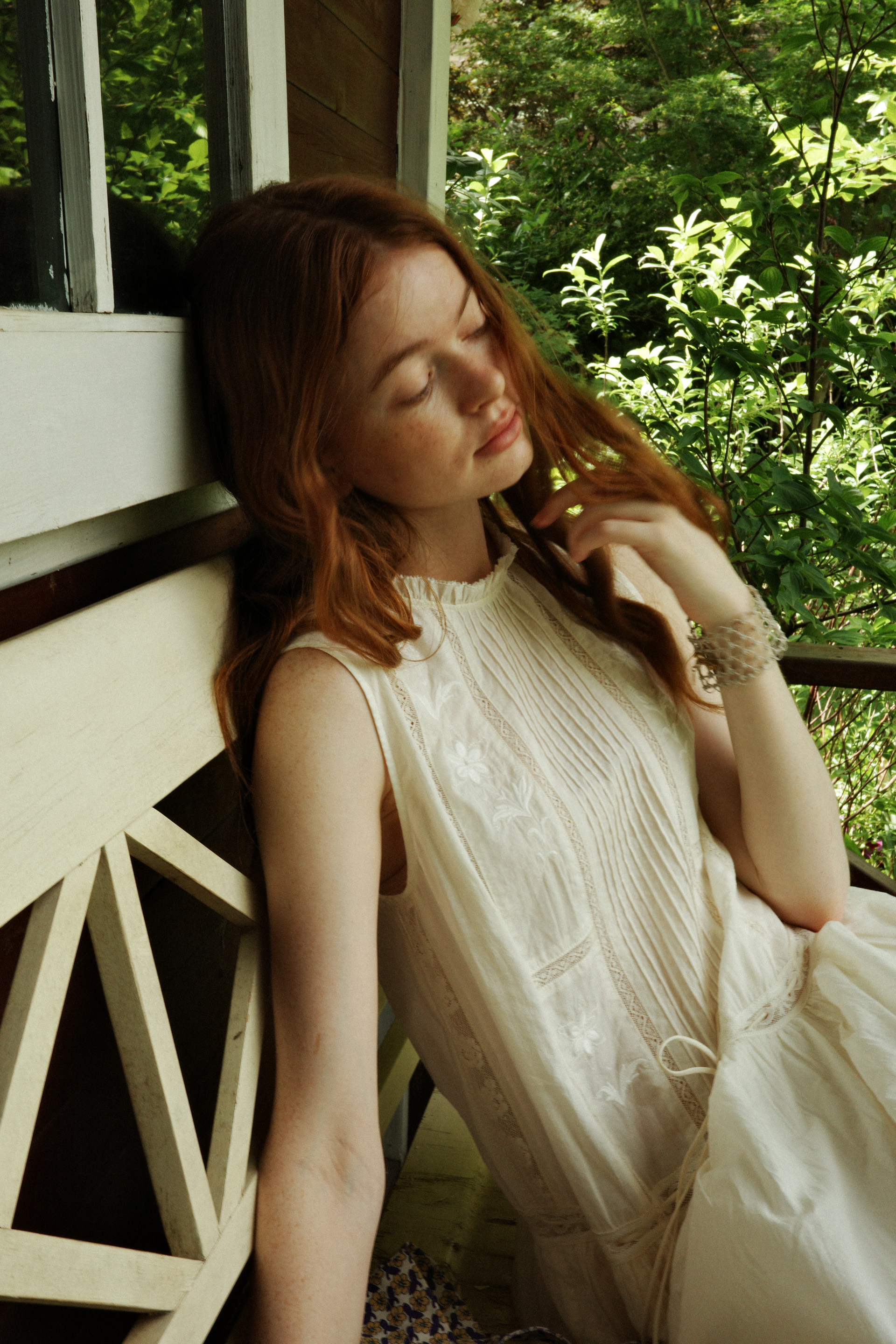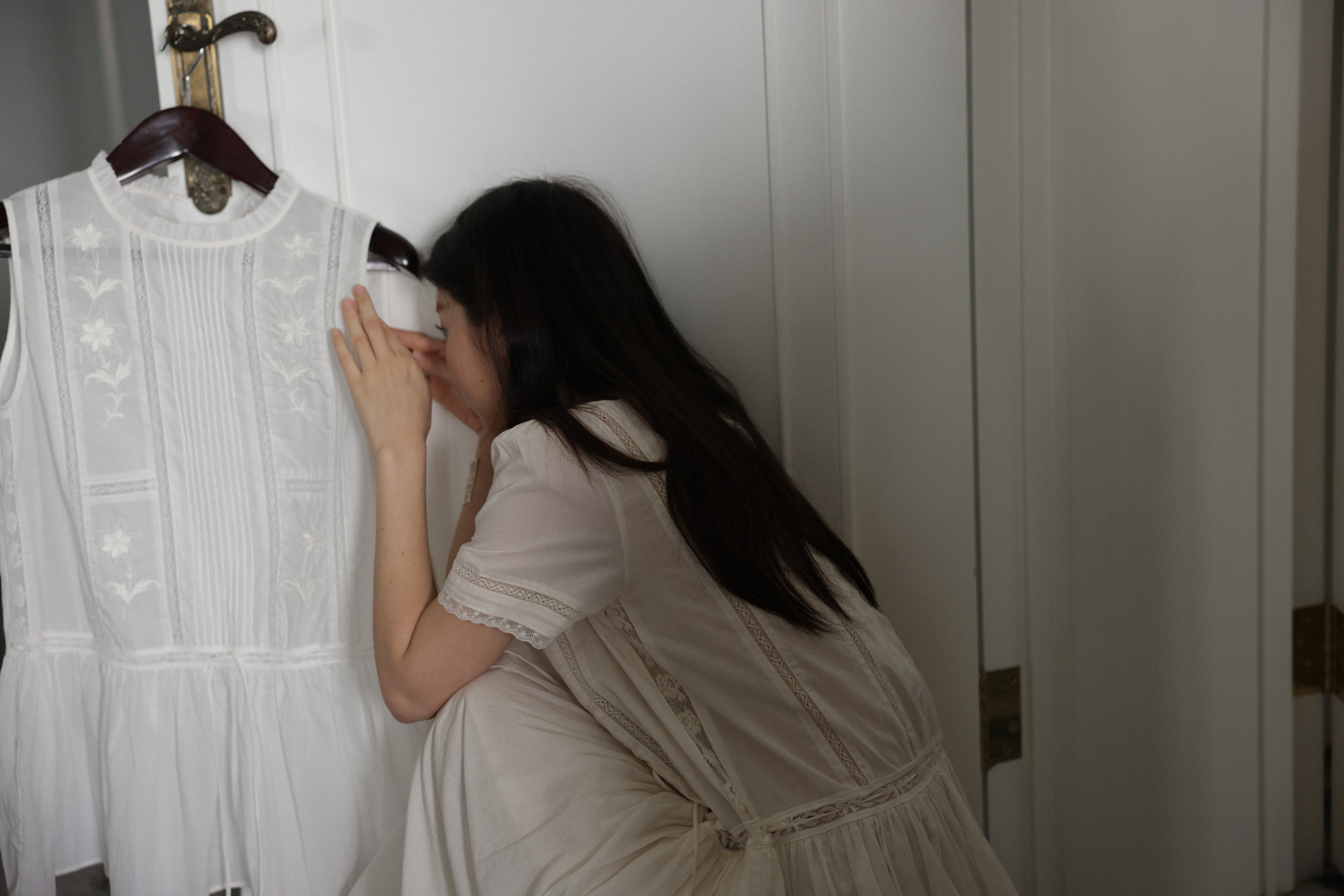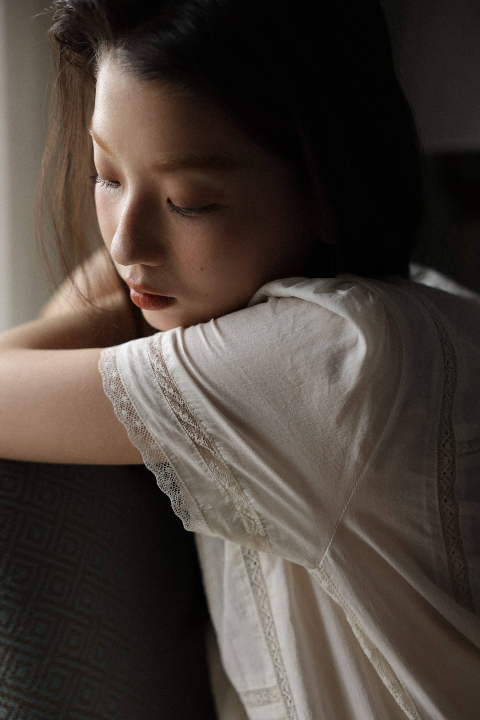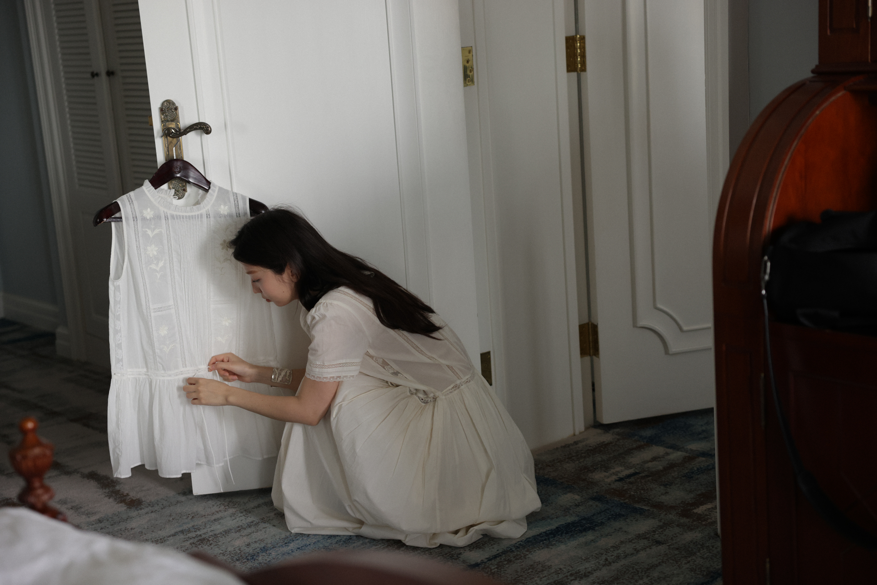 Miroment Delicate Embroidered Small Stand Collar Antique Beige Low-Waist Dress Beige Sleeveless/Short-Sleeve Multiple Images