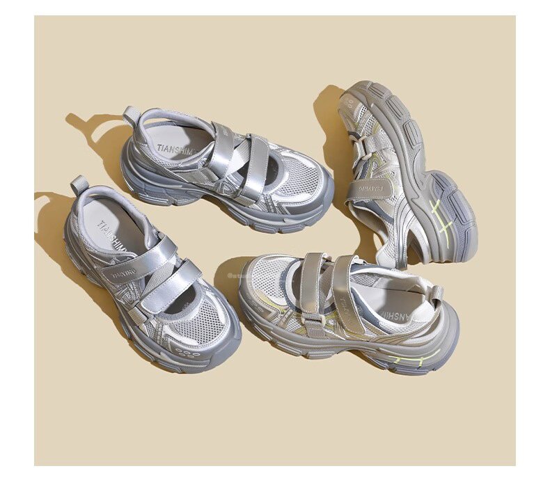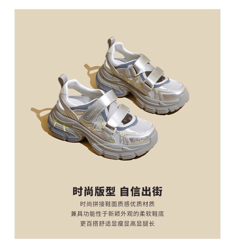 Hong Kong Genuine Leather Hollow-Out Dad Shoes for Women 2026 Spring/Summer New Style Petite Thick-Soled Sandals Lightweight Sports Casual Shoes