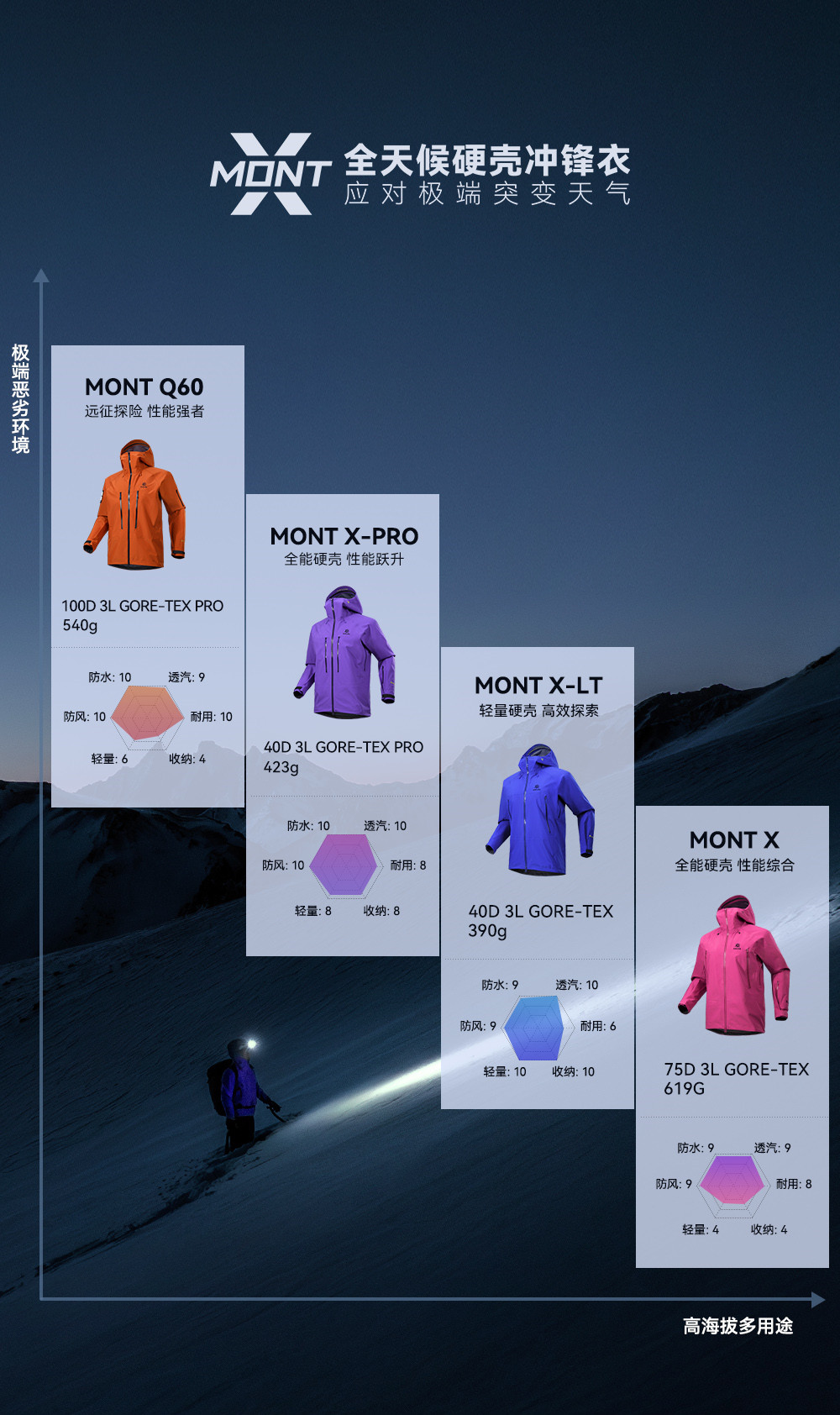 Kailas Mont X-Lt All-Weather Hardshell Jacket Gtx Windproof Lightweight Outdoor Climbing Jacket for Men and Women