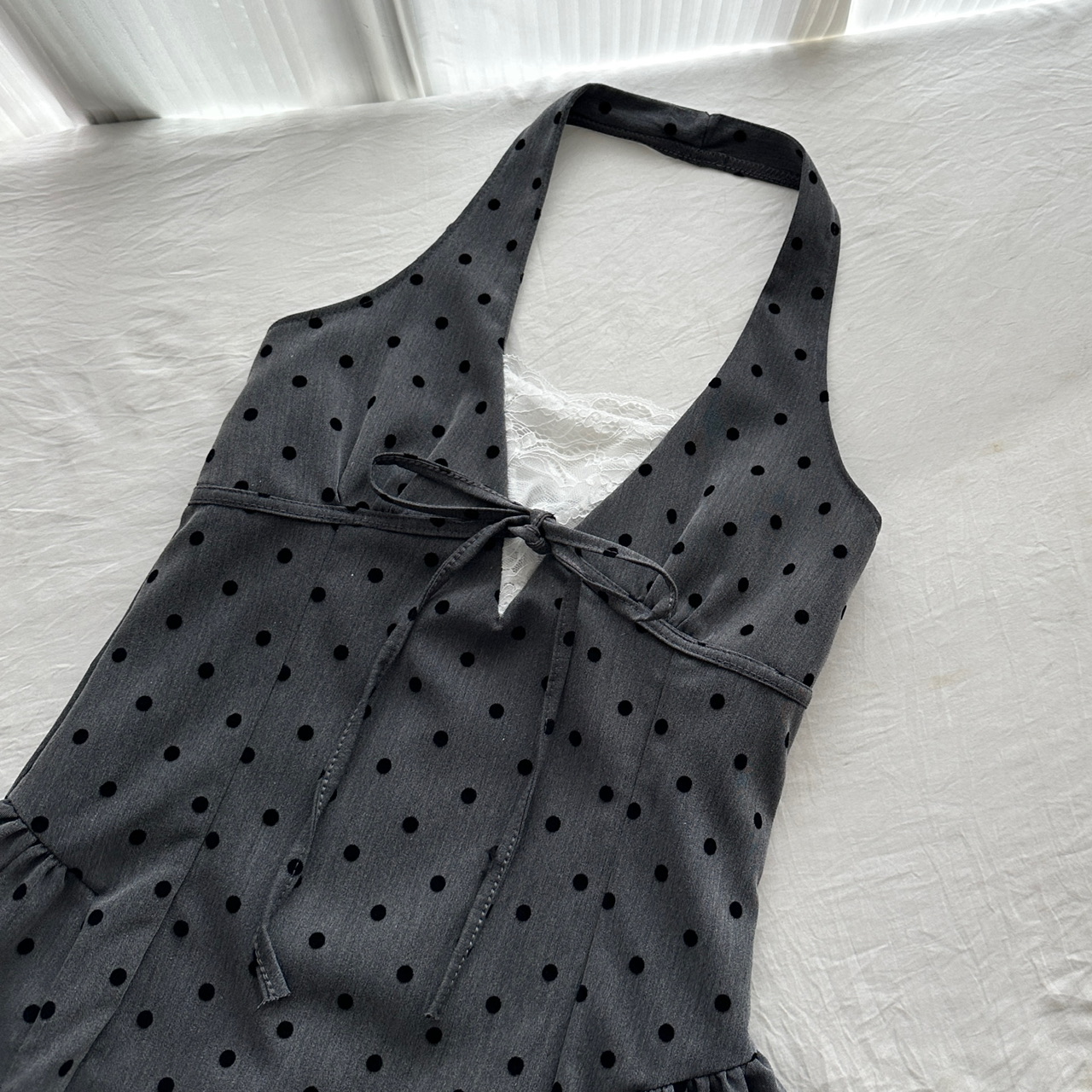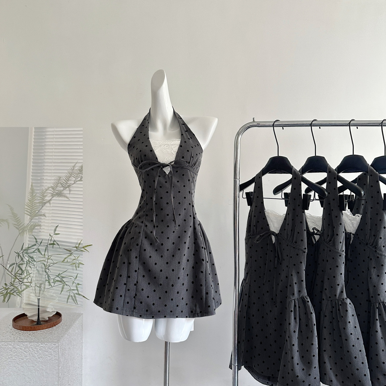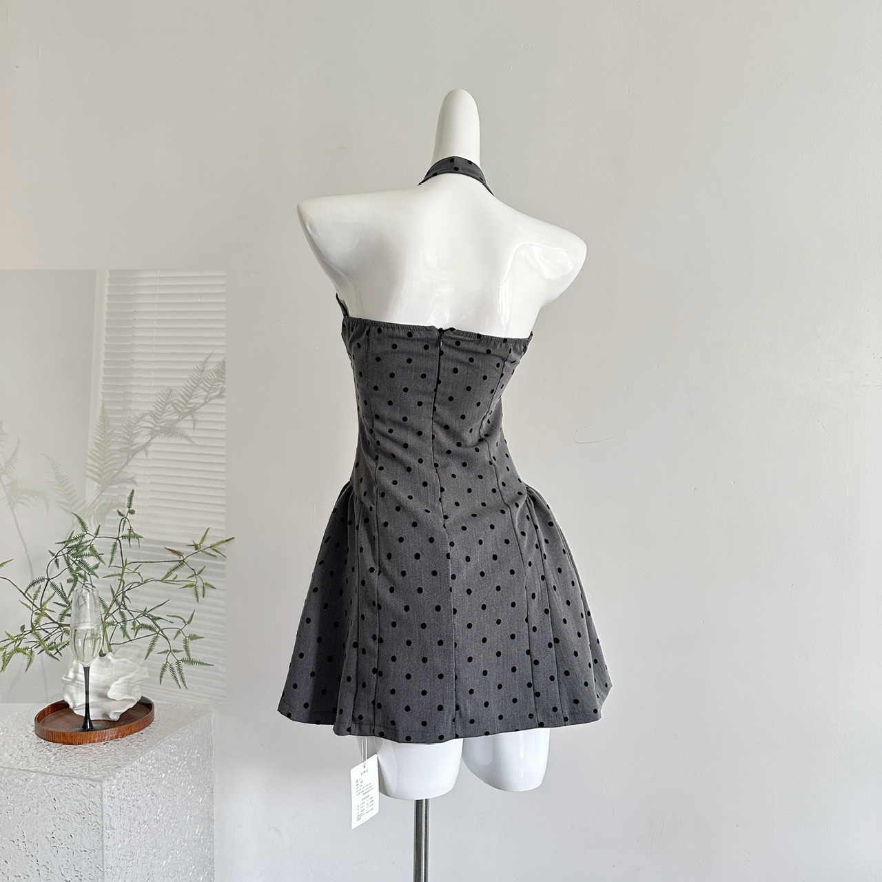 Youni LAOSHU New Summer Product, New Style Waist-Cinching Gray Halterneck Dress