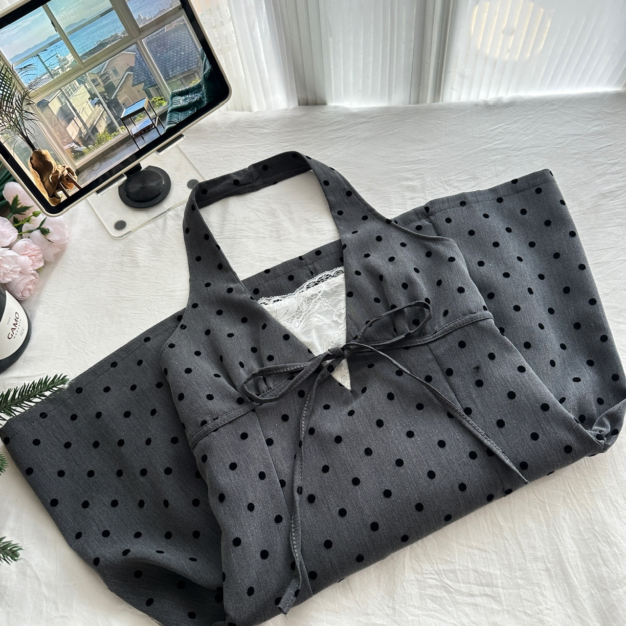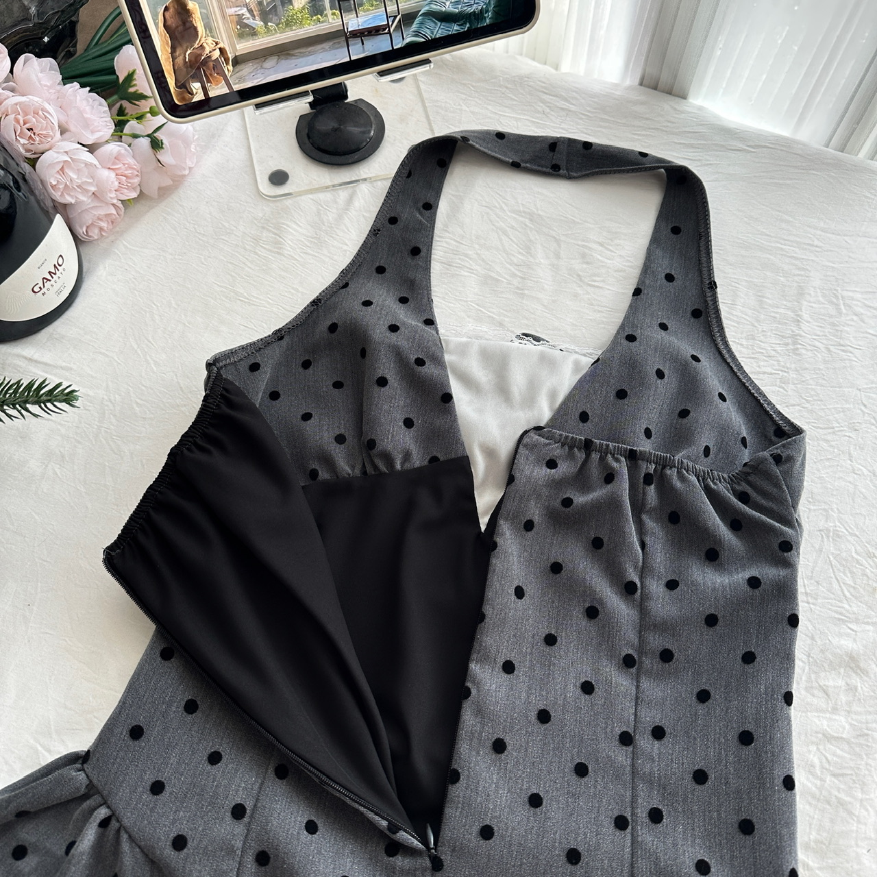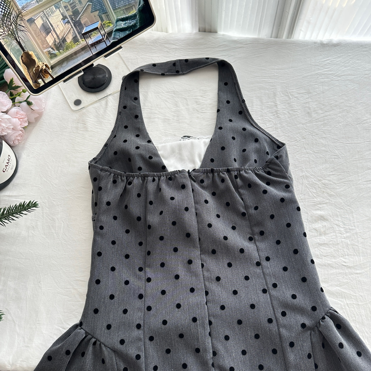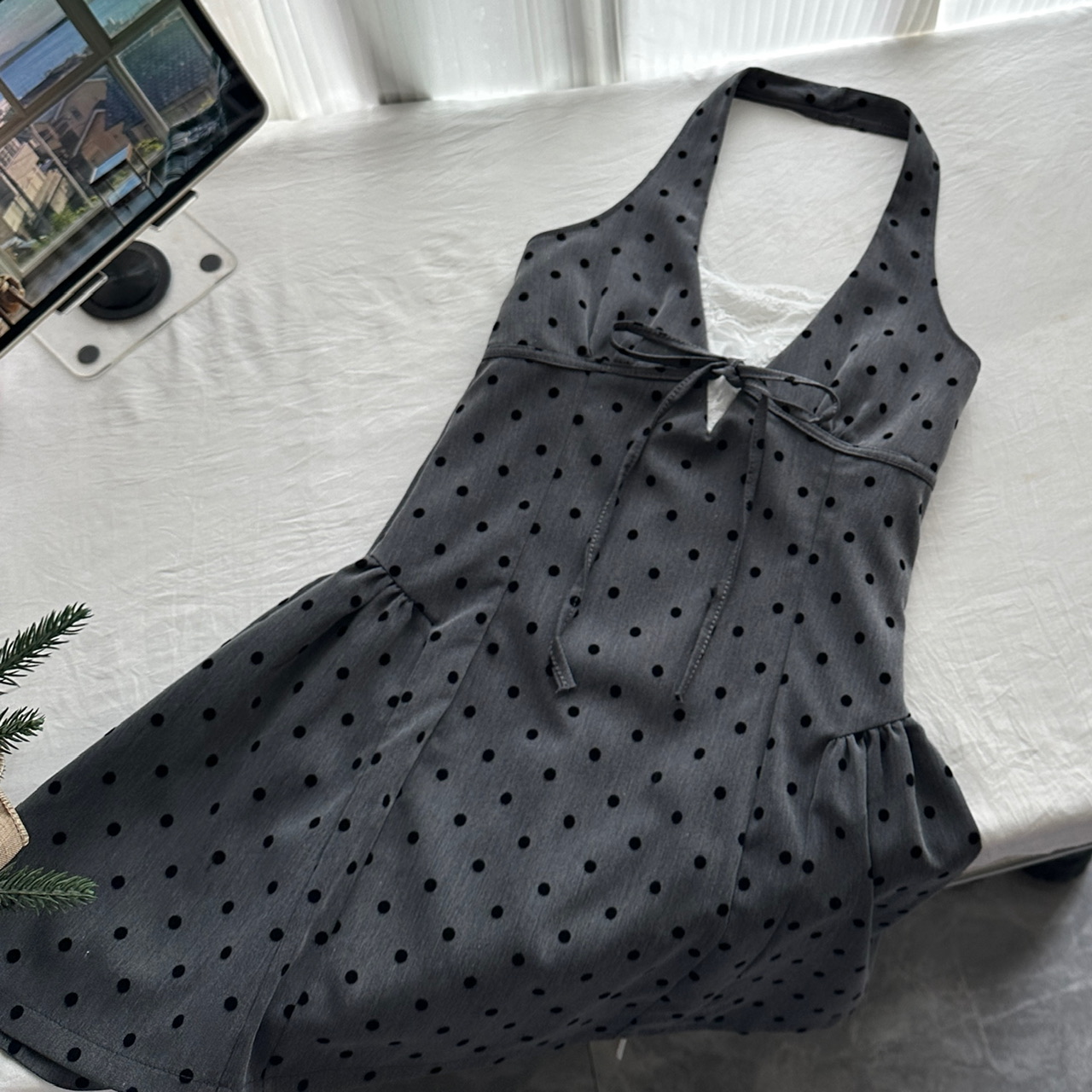 Youni LAOSHU New Summer Product, New Style Waist-Cinching Gray Halterneck Dress
