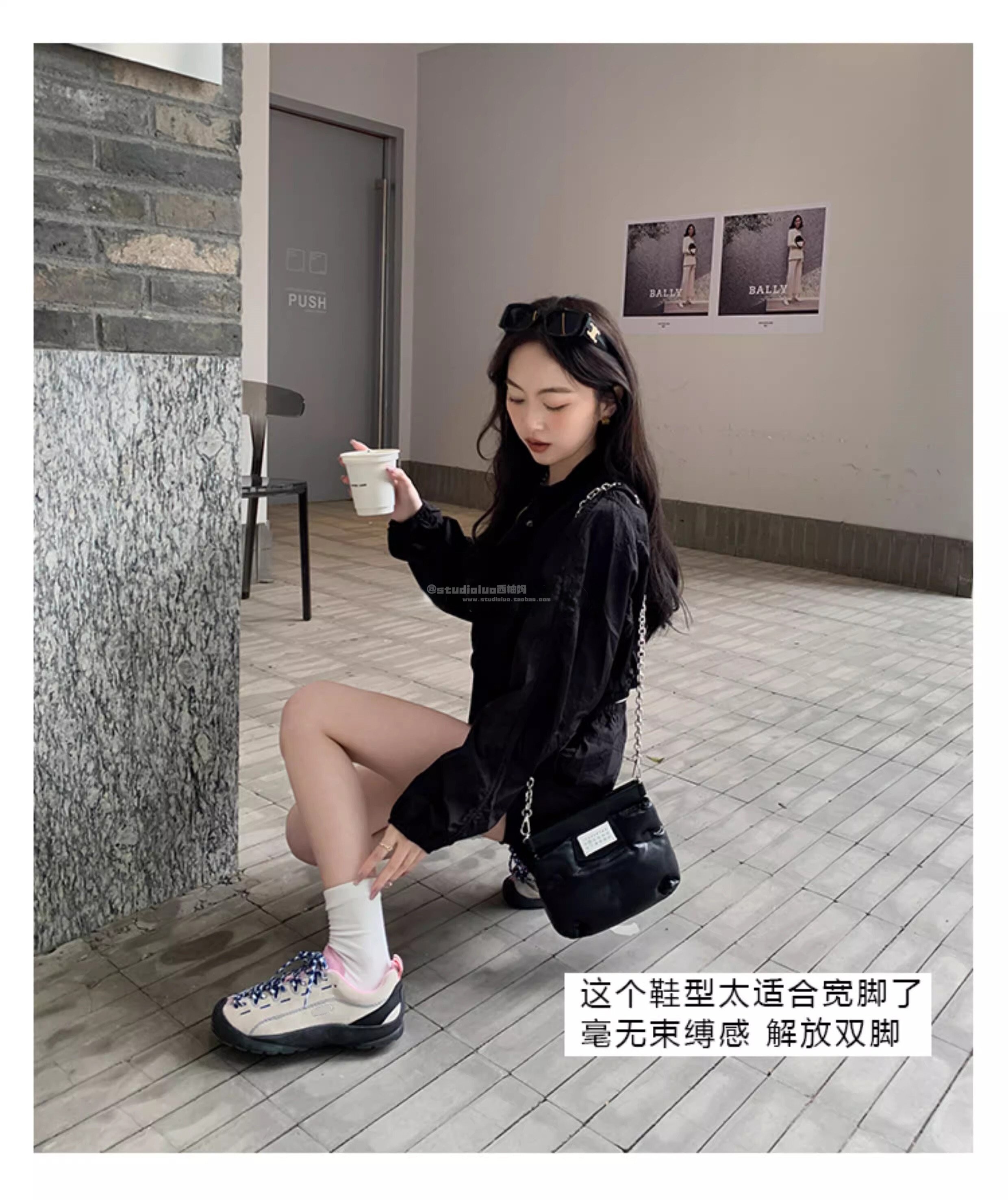 Hong Kong Lightweight Thick-Soled Hiking Shoes for Women 2026 Spring and Autumn New Fashion Non-Slip Breathable Casual Sports Shoes Trendy