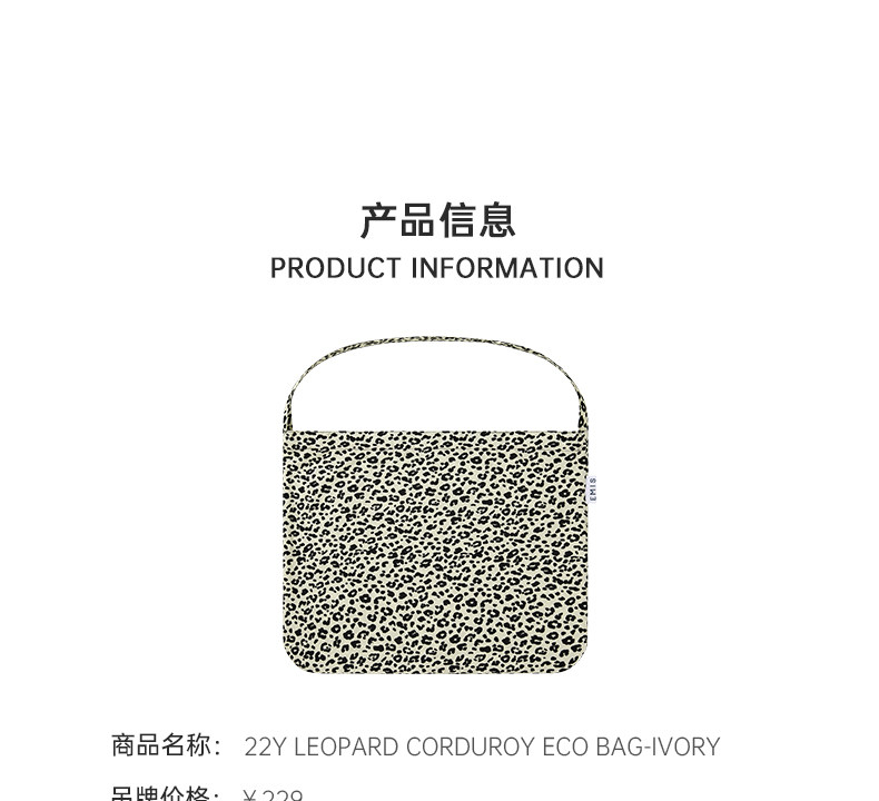 Emis Bag 22Y Small Leopard Print Corduroy Canvas Bag Ivory Color Zhang Yuanying and Kong Hyo-Jin Same Style Shoulder Bag