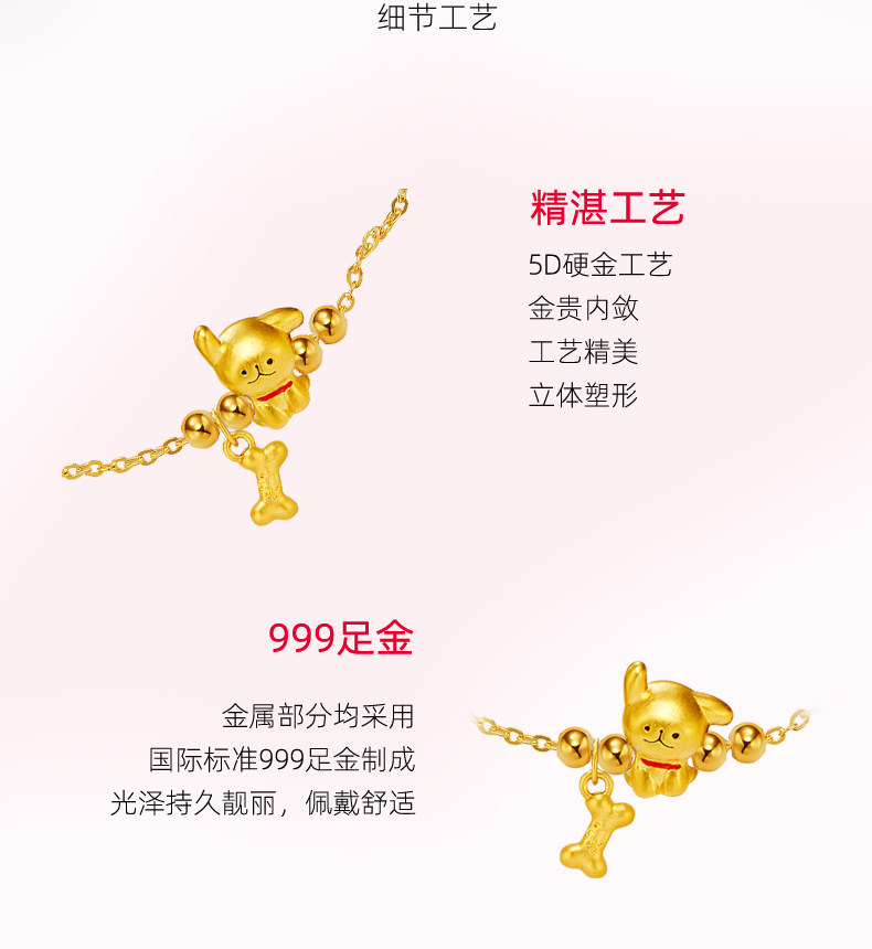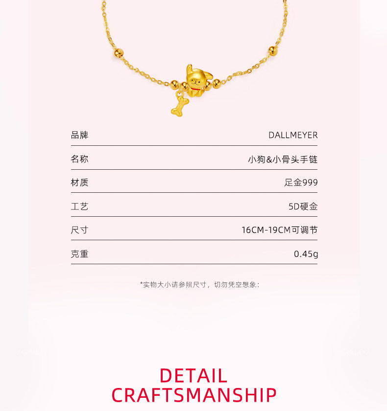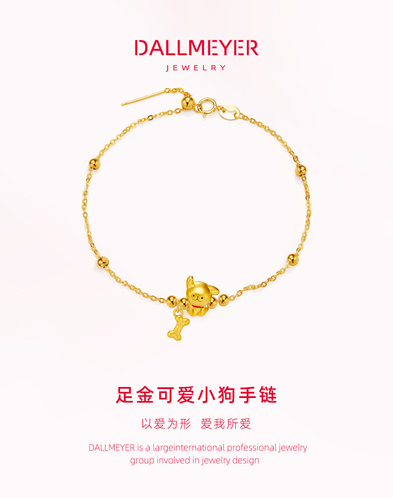 Dallmeyer Puppy% Bone Bracelet Pure Gold 999 Gold Jewelry 5D Hard Gold Cute Pet Gift for Girlfriend 520