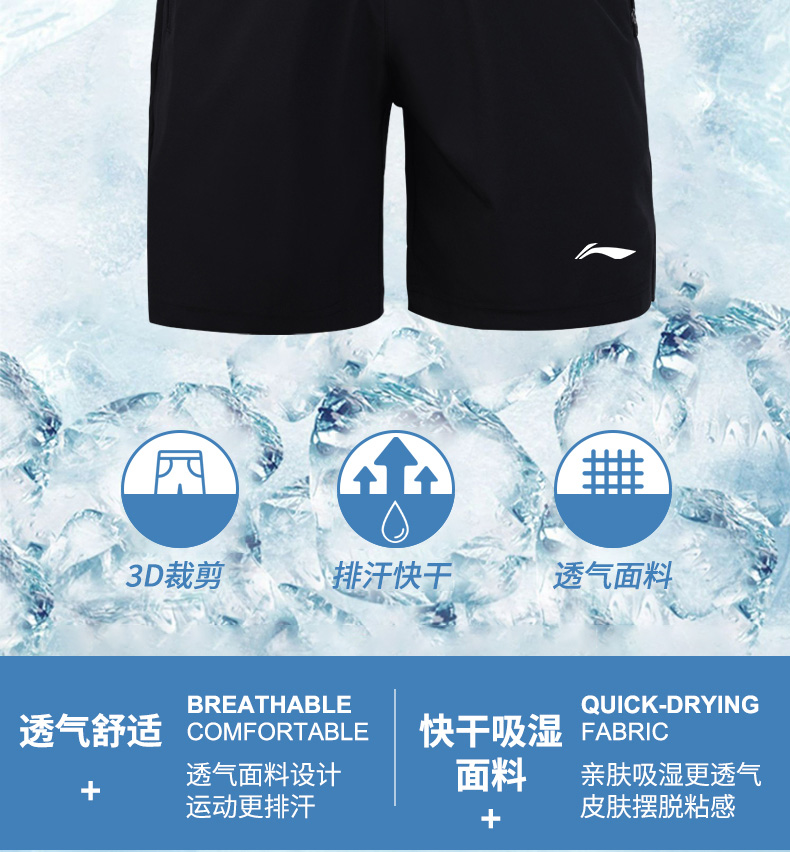 Li Ning Sports shorts Men Quick-drying 2025 New arrival Summer Ice Silk Breathable Running Fitness Pants Training Pants