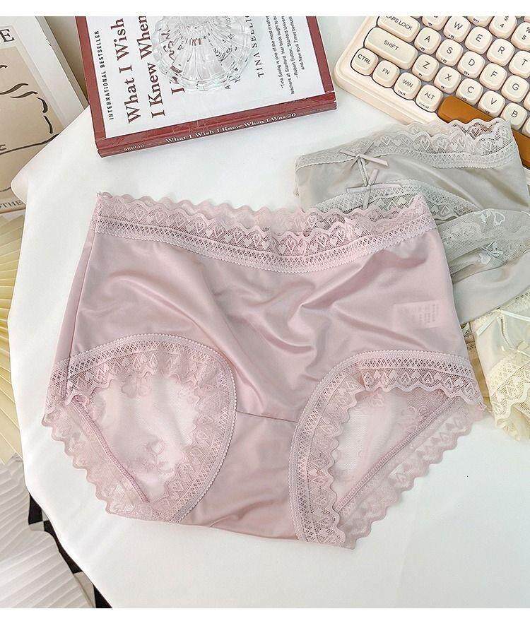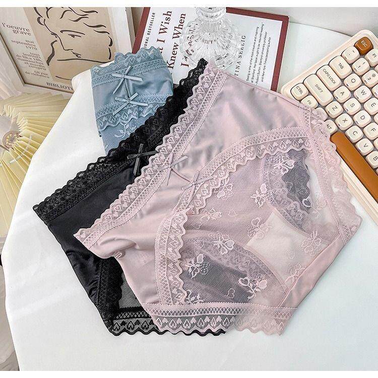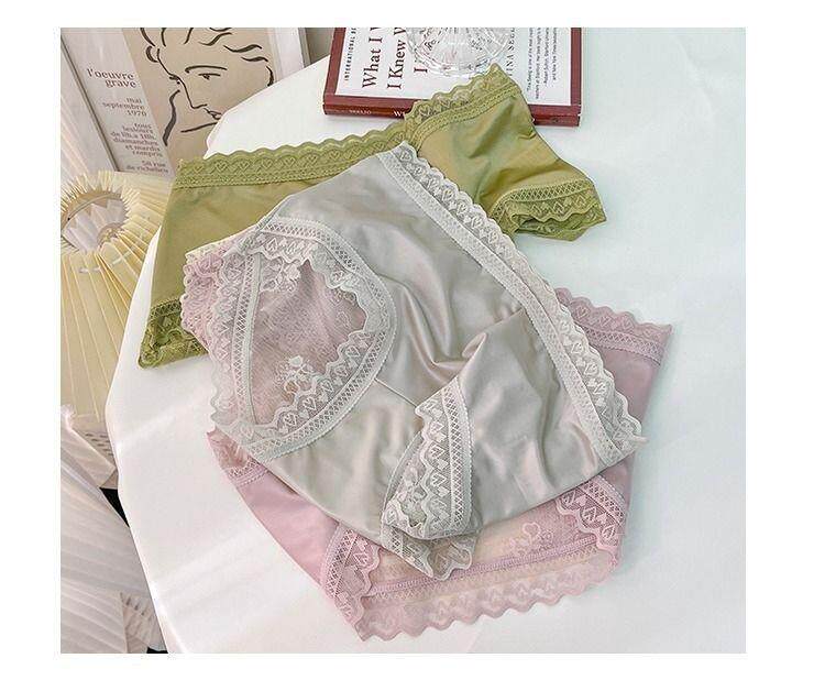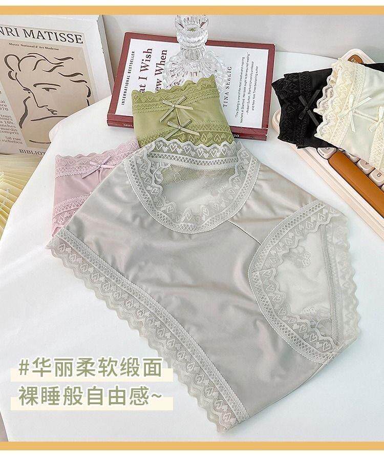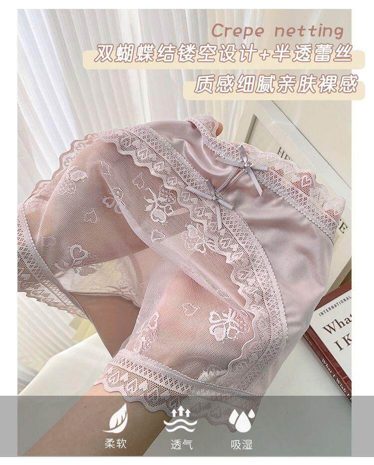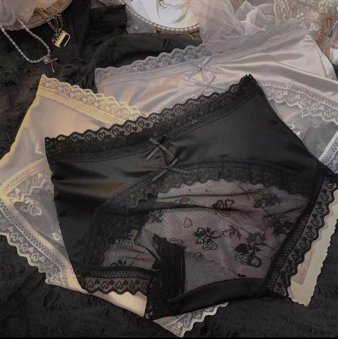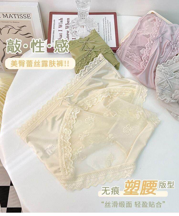 Seductive and Stylish Women's Silk Underwear, High-End, High-Appearance Value, Pure and Alluring Style, Mid-Waist, Tummy Control, Lace, Sexy, Hip-Hugging, Breathable