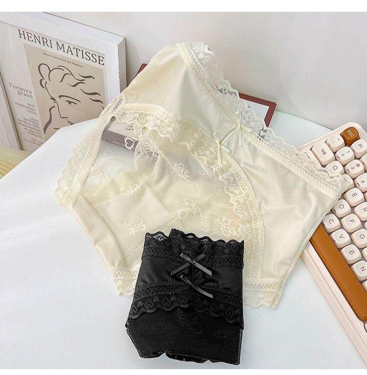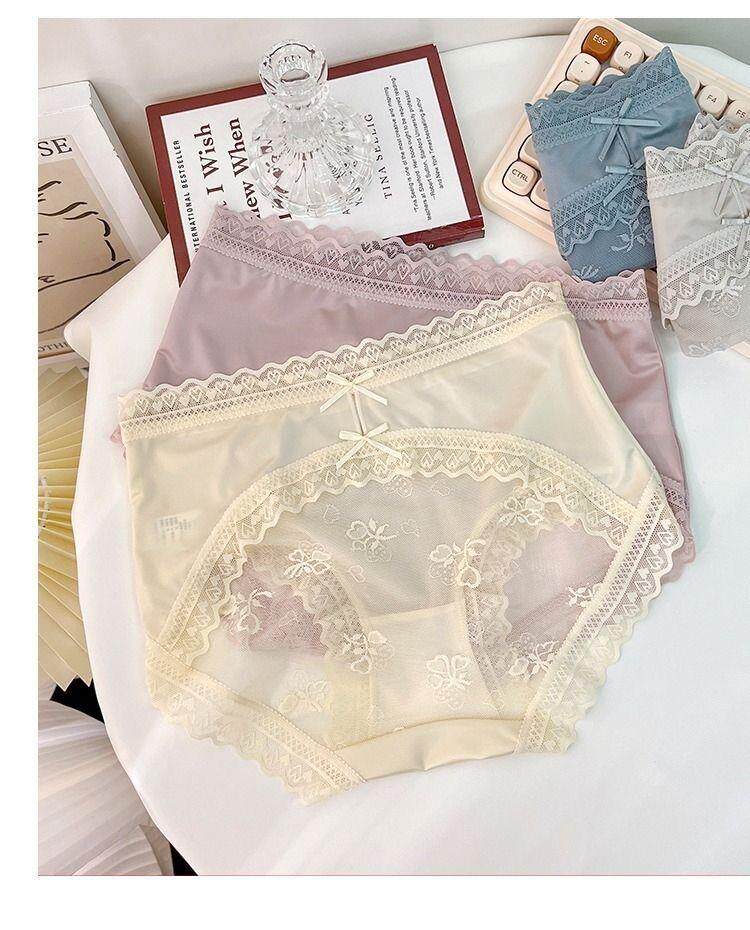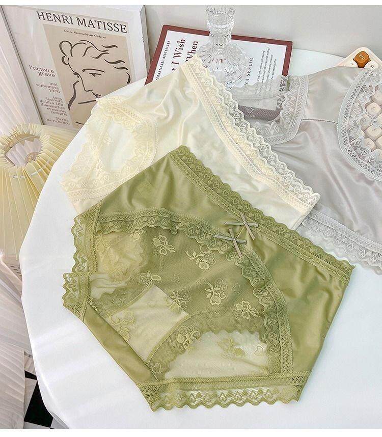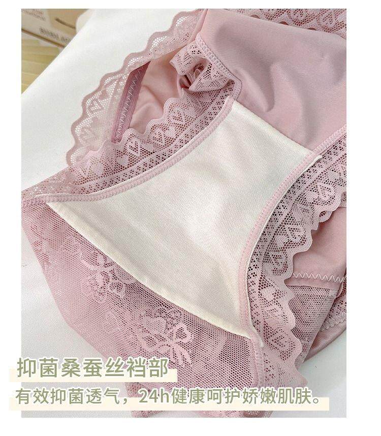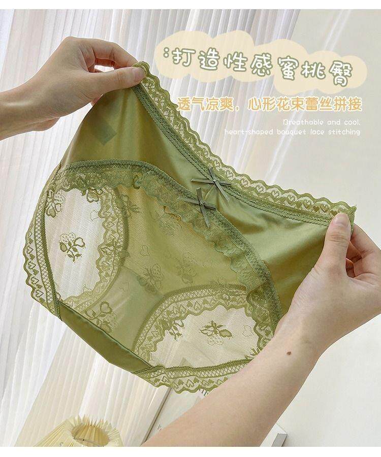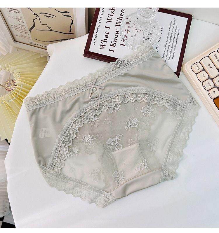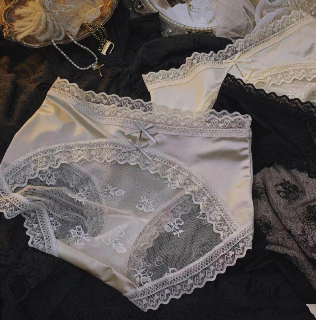 Seductive and Stylish Women's Silk Underwear, High-End, High-Appearance Value, Pure and Alluring Style, Mid-Waist, Tummy Control, Lace, Sexy, Hip-Hugging, Breathable