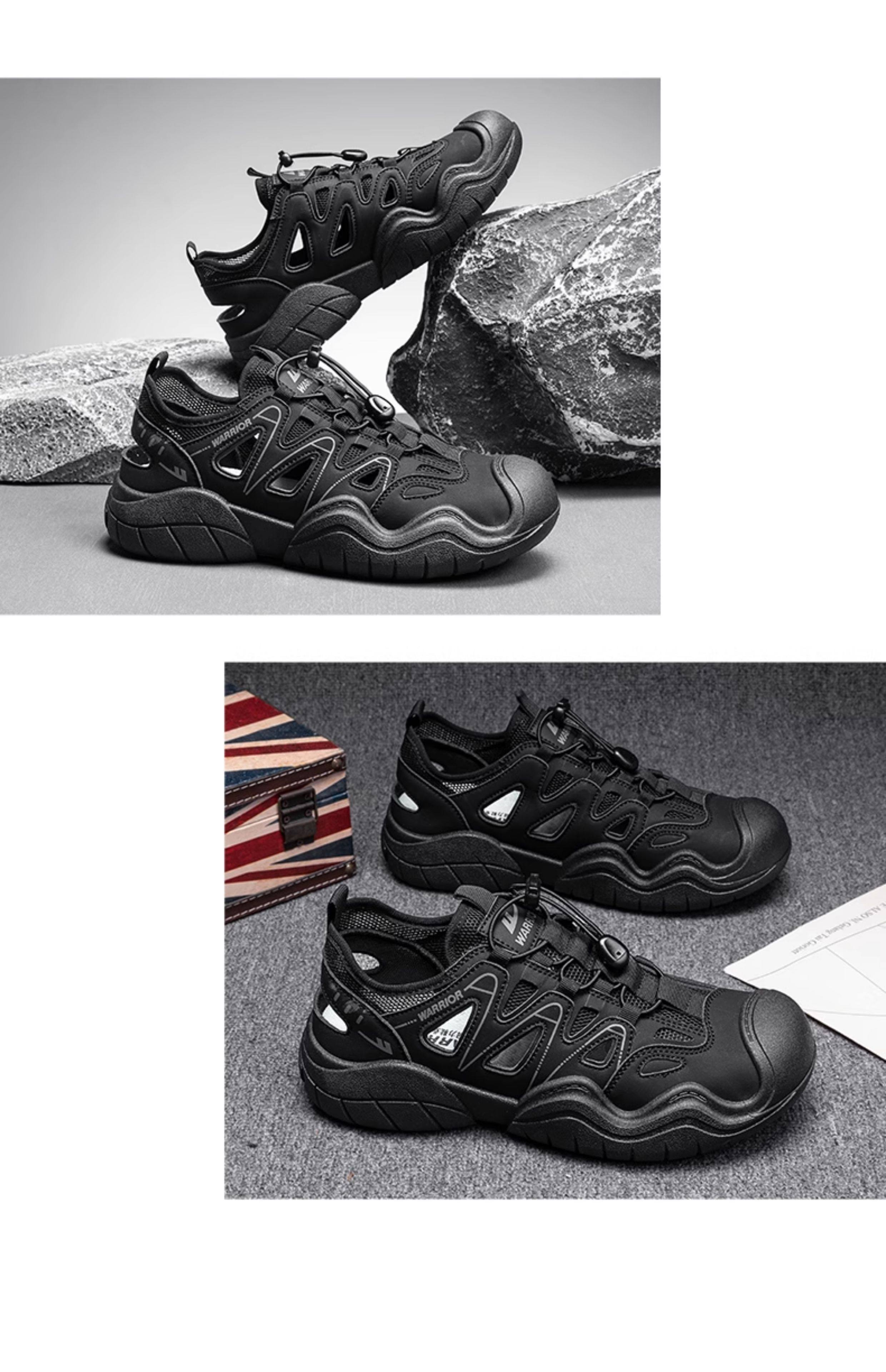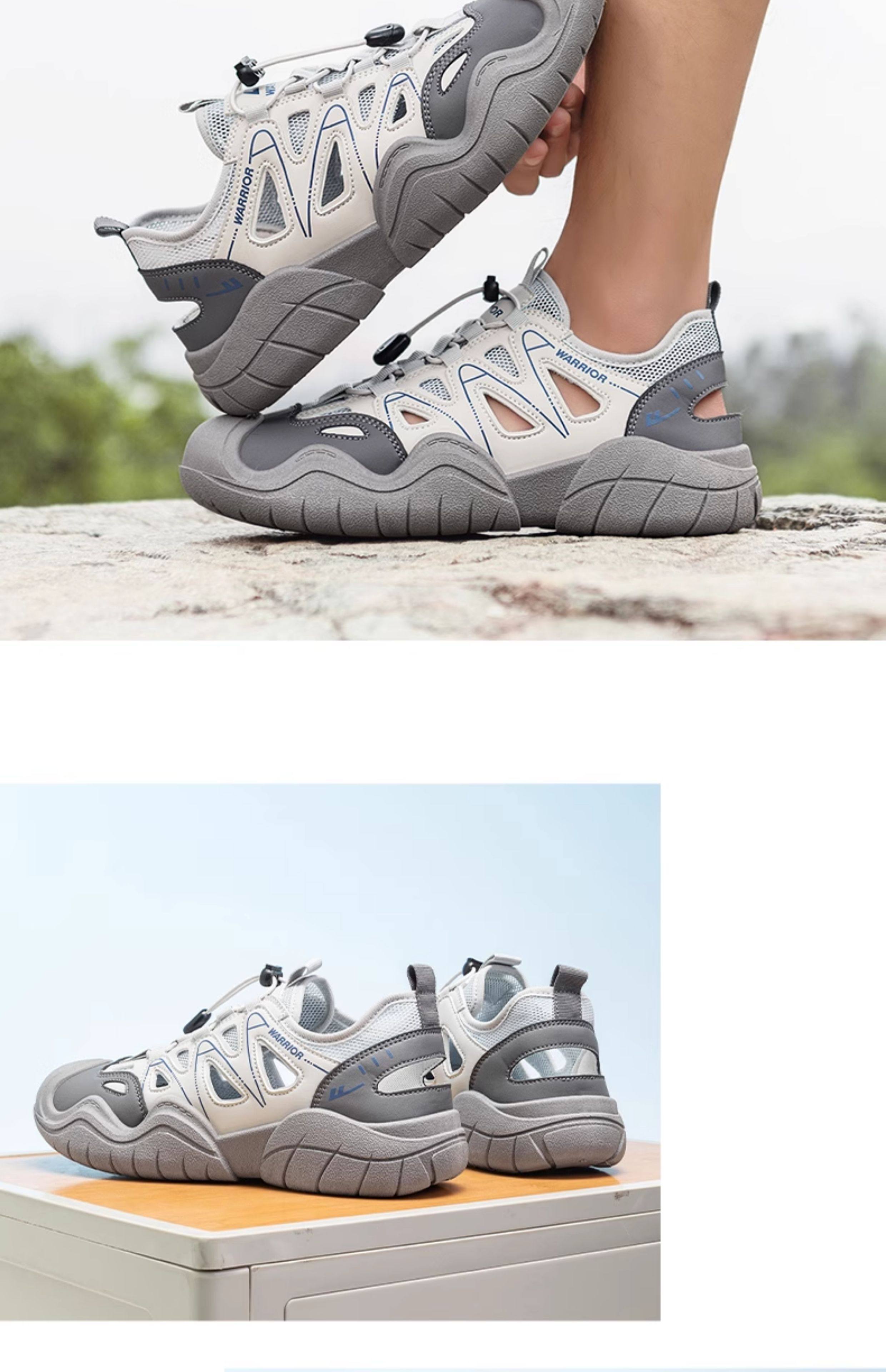 Pull-Back Men's Shoes for Summer Outdoor Wear, Men's Hollow-Out Closed-Toe Clogs, Men's Sports Beach Water Shoes for Wading and River Trekking