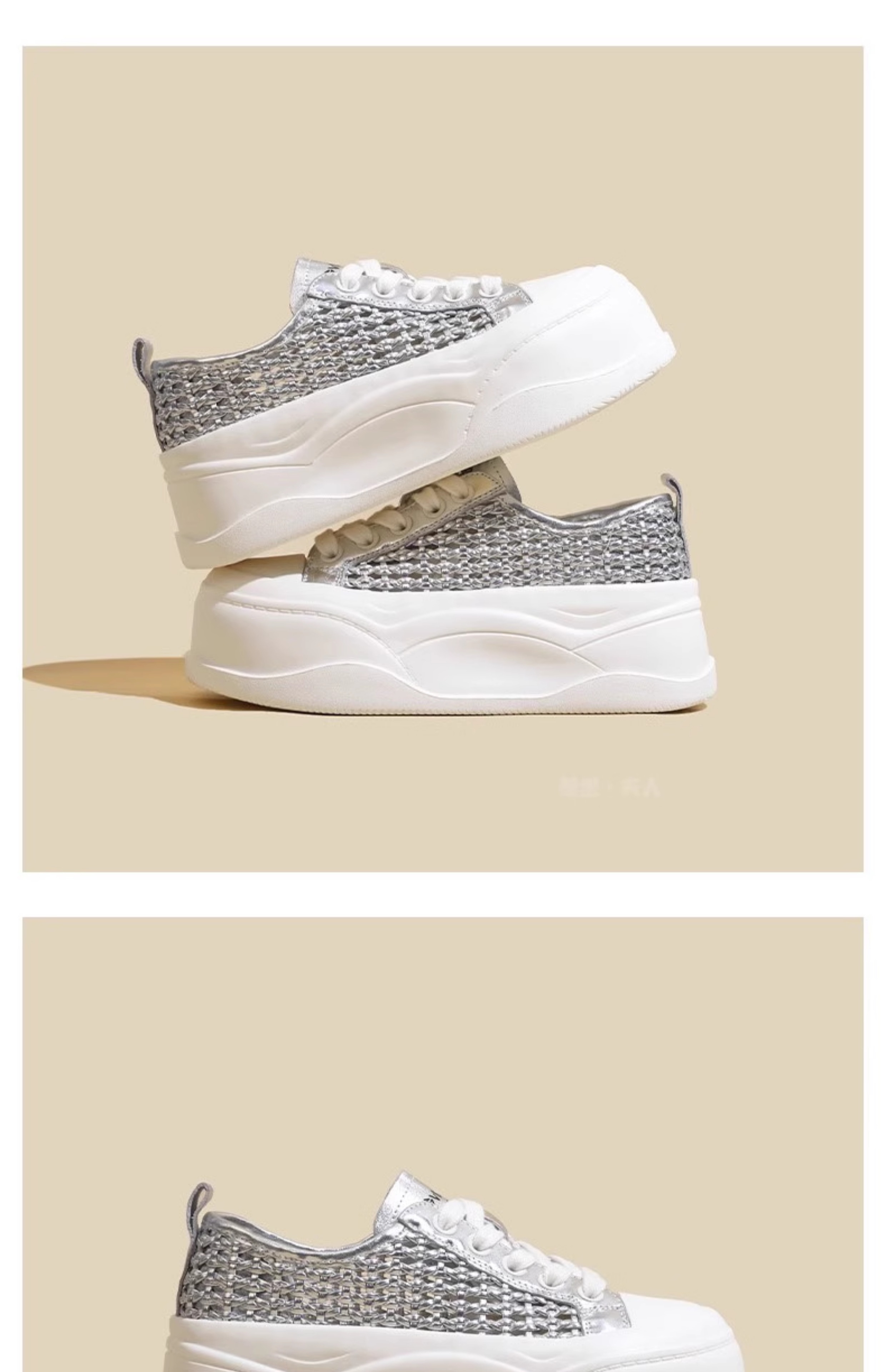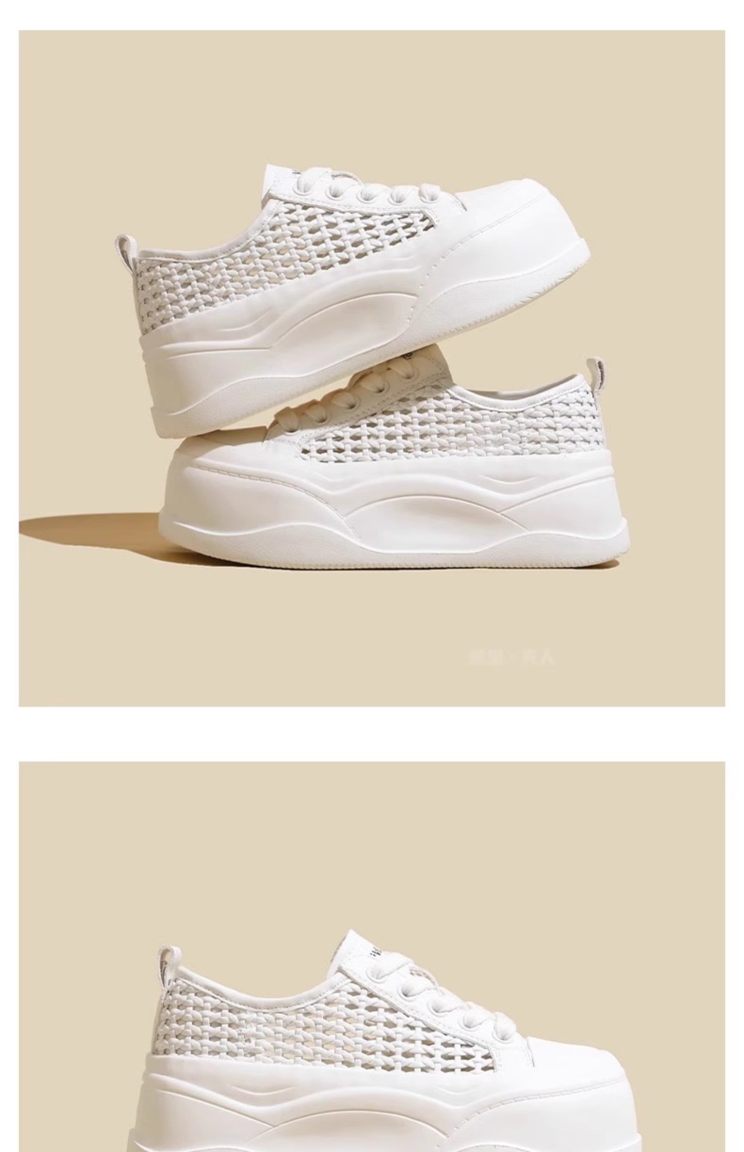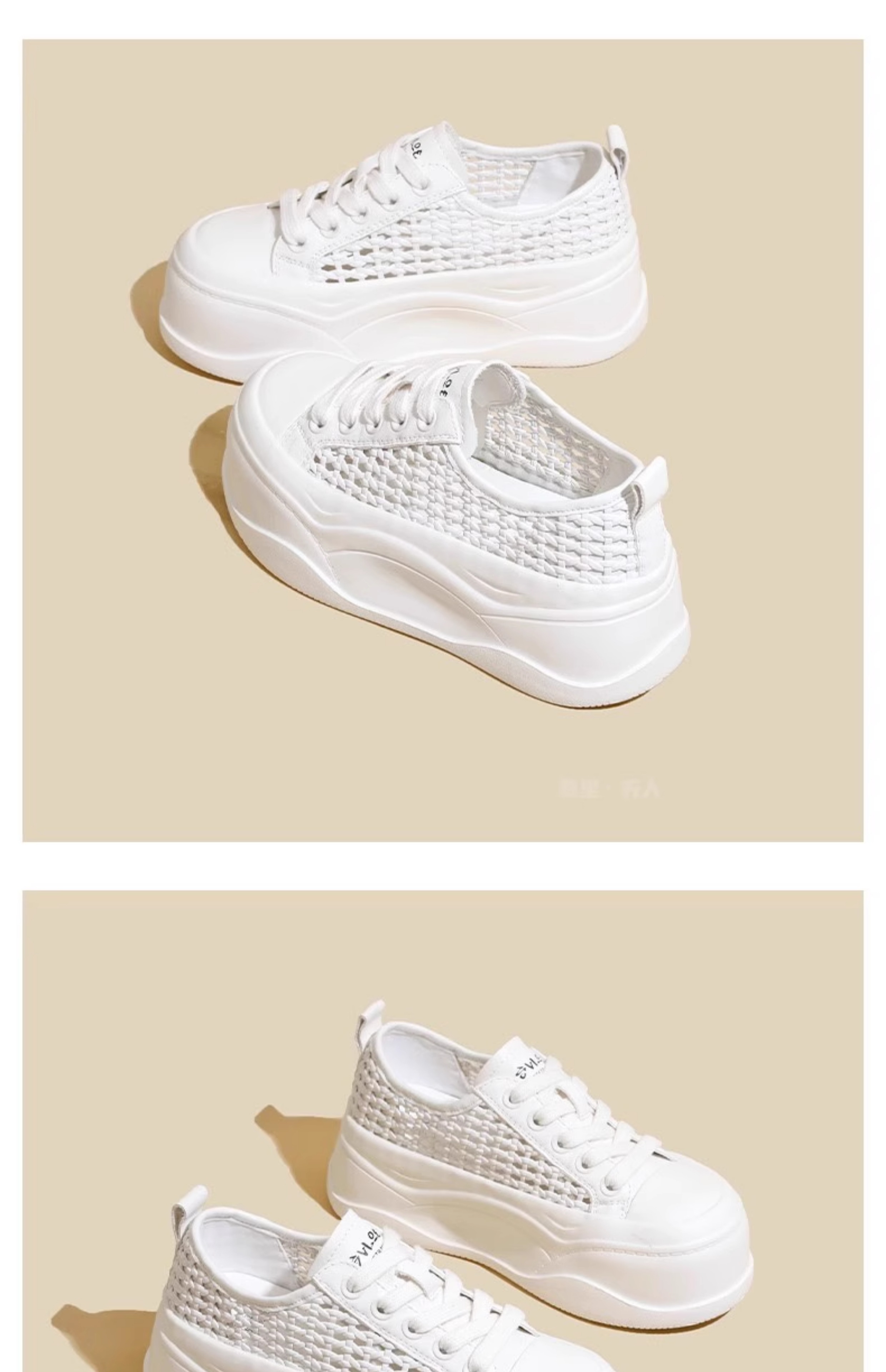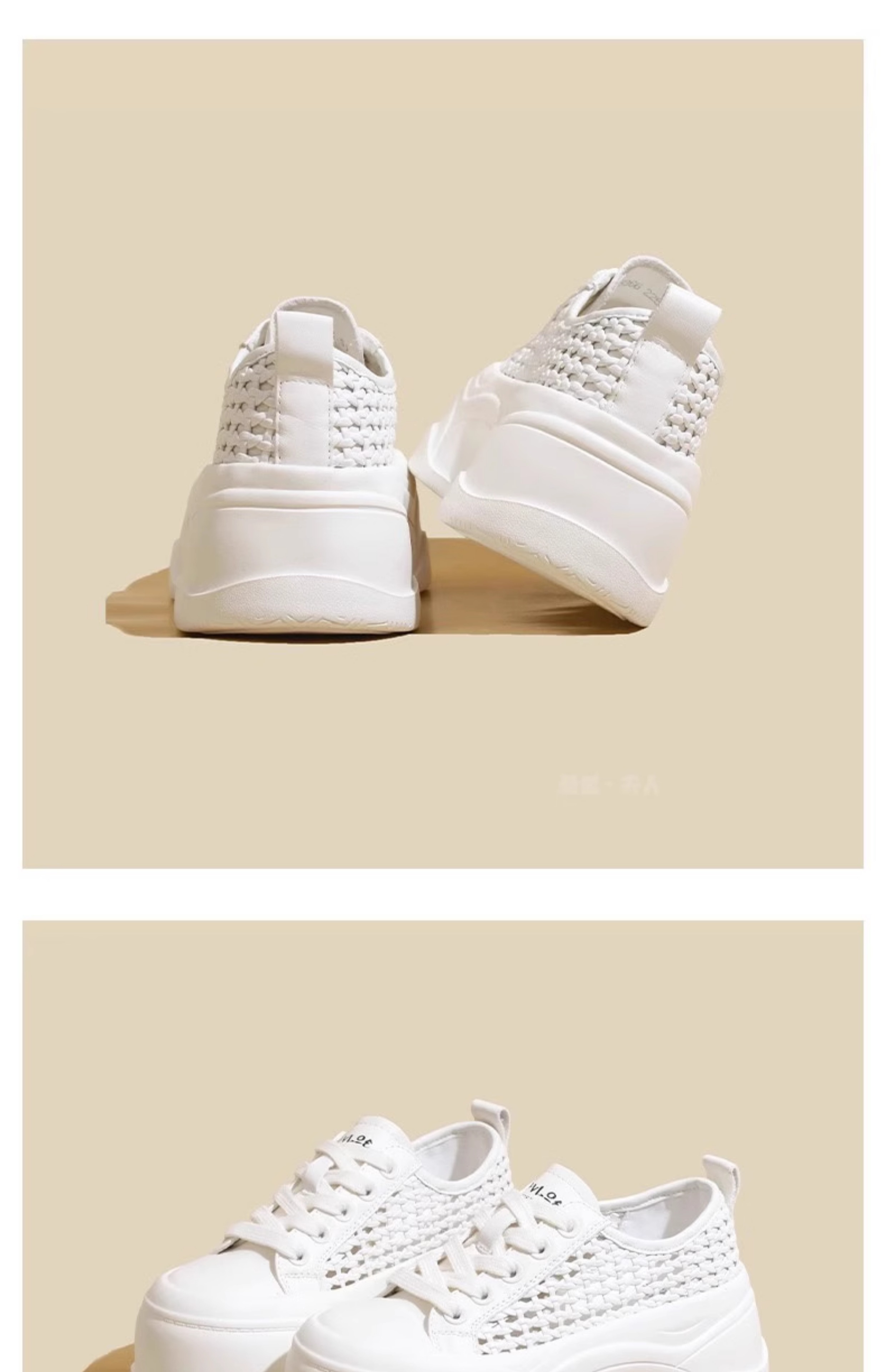 Three-Layer Thick-Soled Height-Increasing Woven Hollow Breathable Sneakers for Women, 2025 Summer New Lace-Up Round-Toe Sports Casual Shoes, Trendy