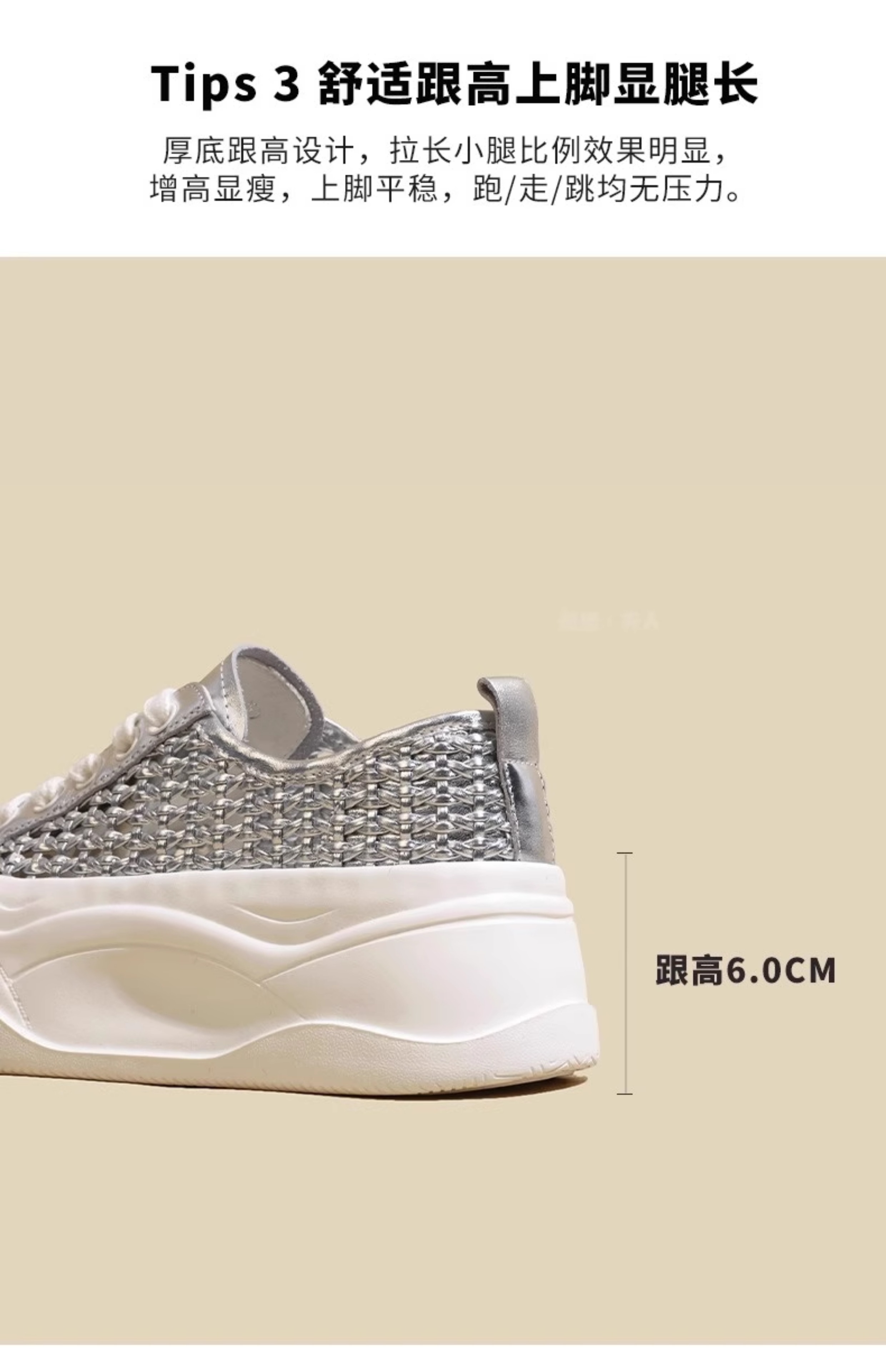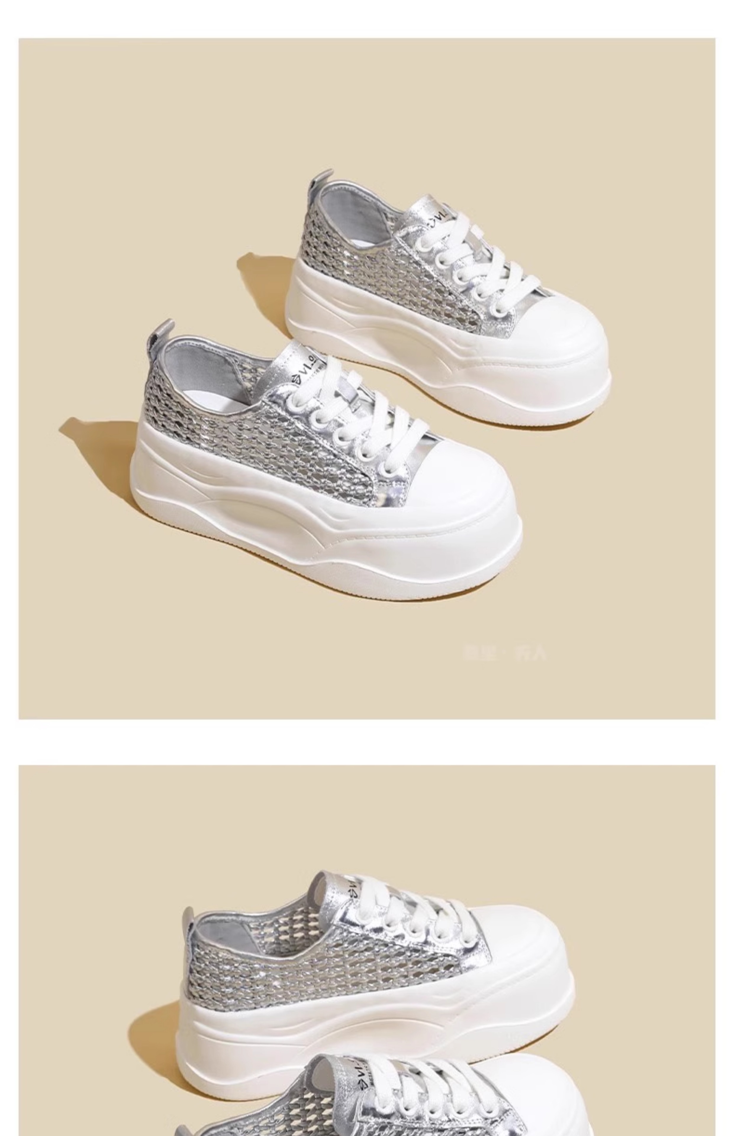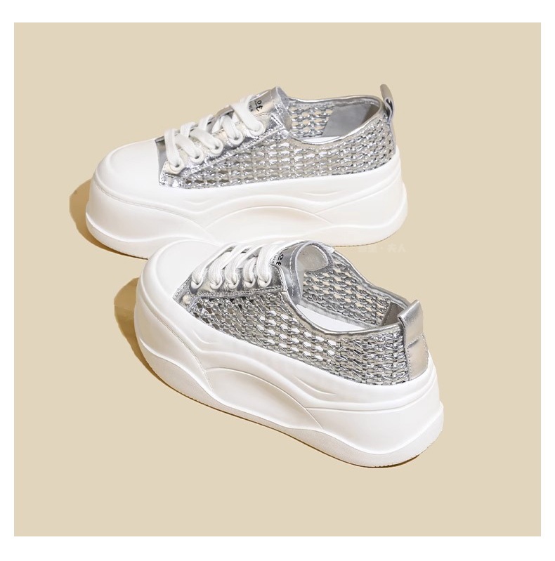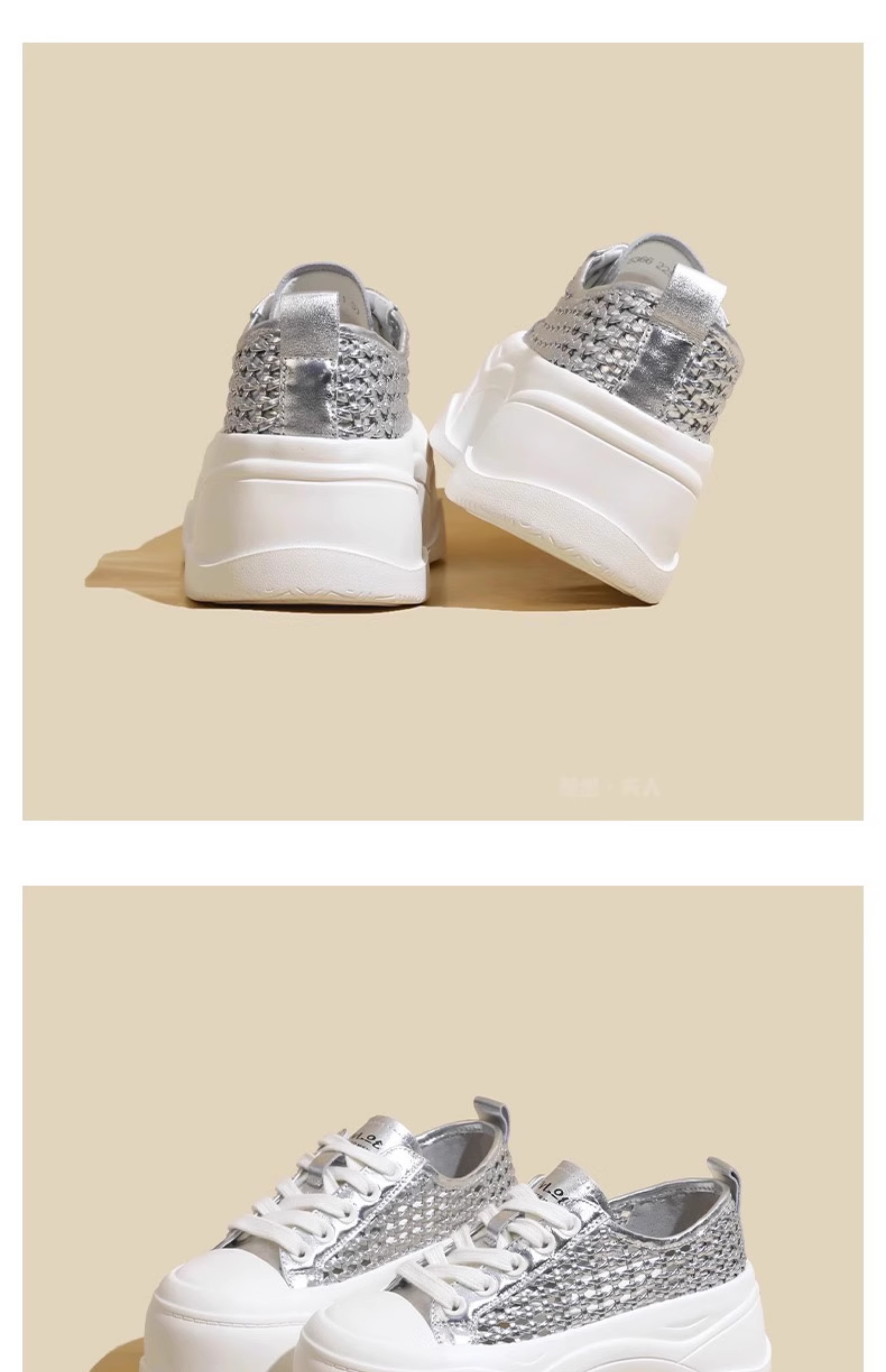 Three-Layer Thick-Soled Height-Increasing Woven Hollow Breathable Sneakers for Women, 2025 Summer New Lace-Up Round-Toe Sports Casual Shoes, Trendy