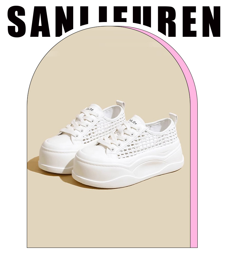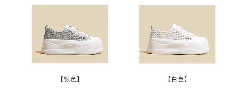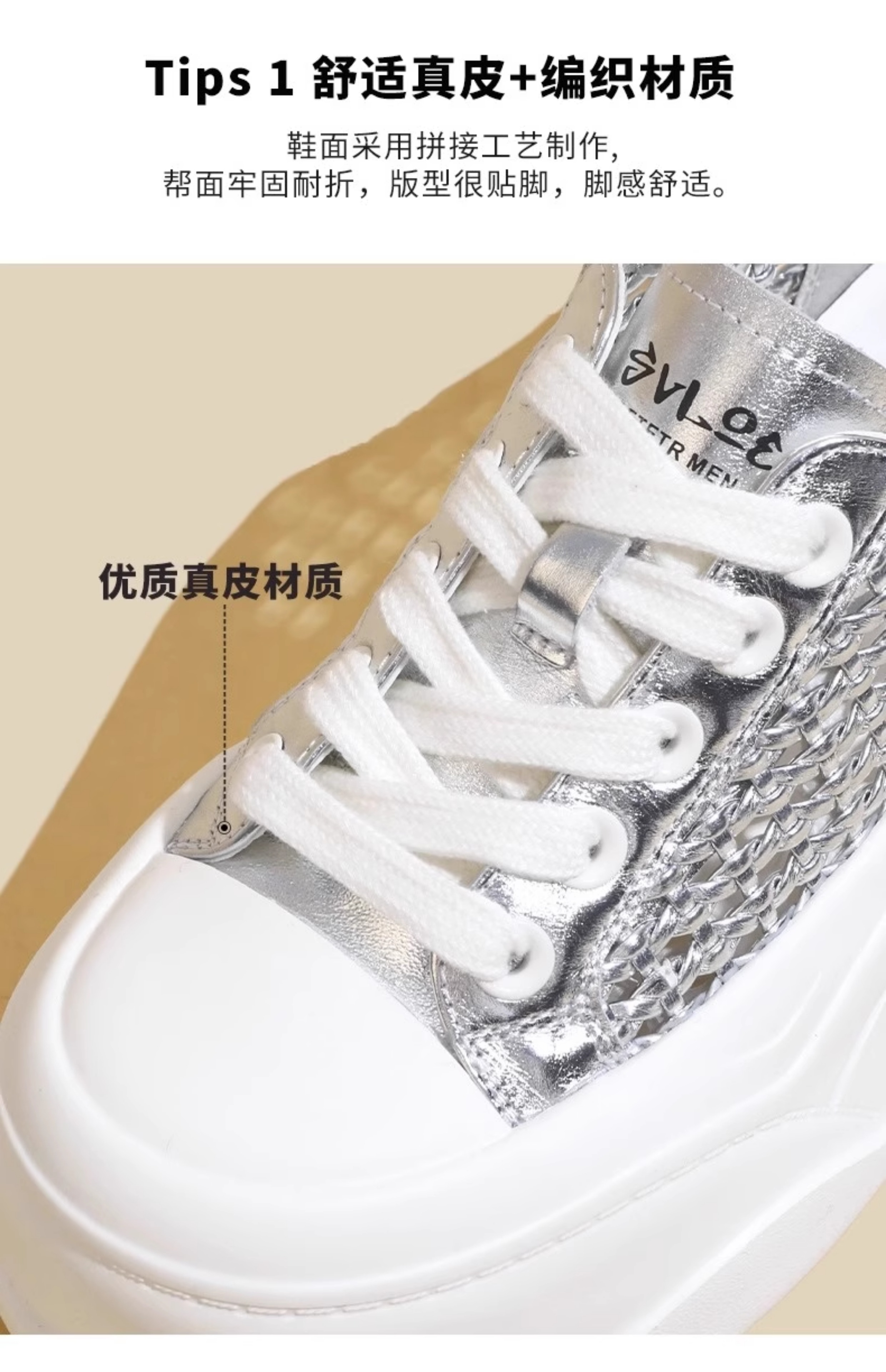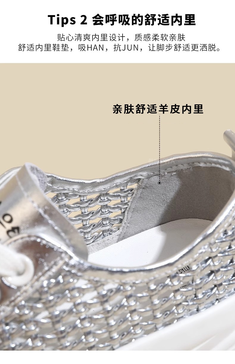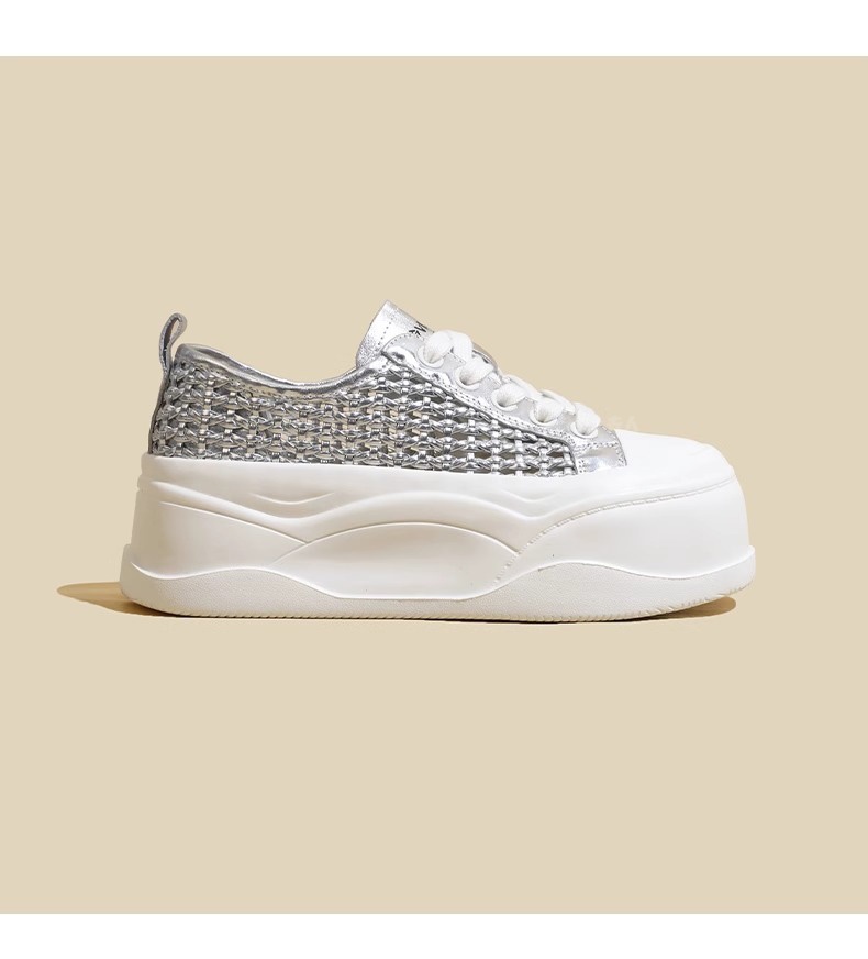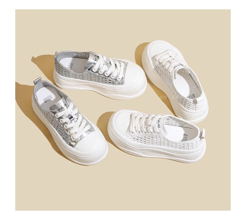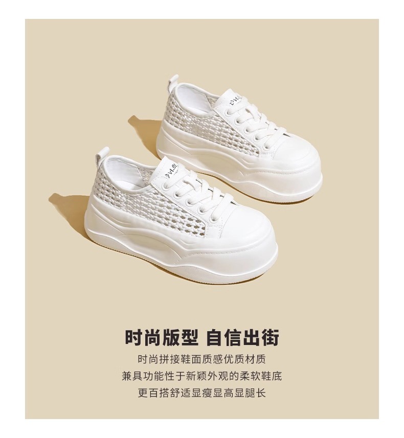 Three-Layer Thick-Soled Height-Increasing Woven Hollow Breathable Sneakers for Women, 2025 Summer New Lace-Up Round-Toe Sports Casual Shoes, Trendy