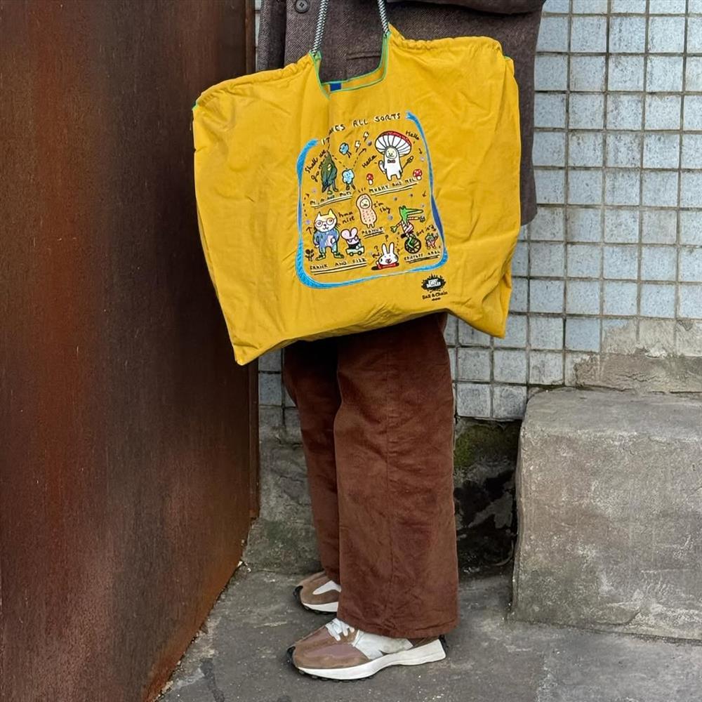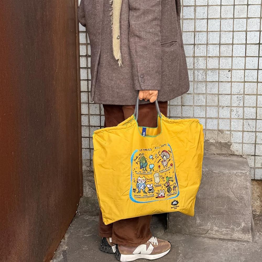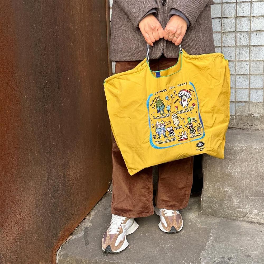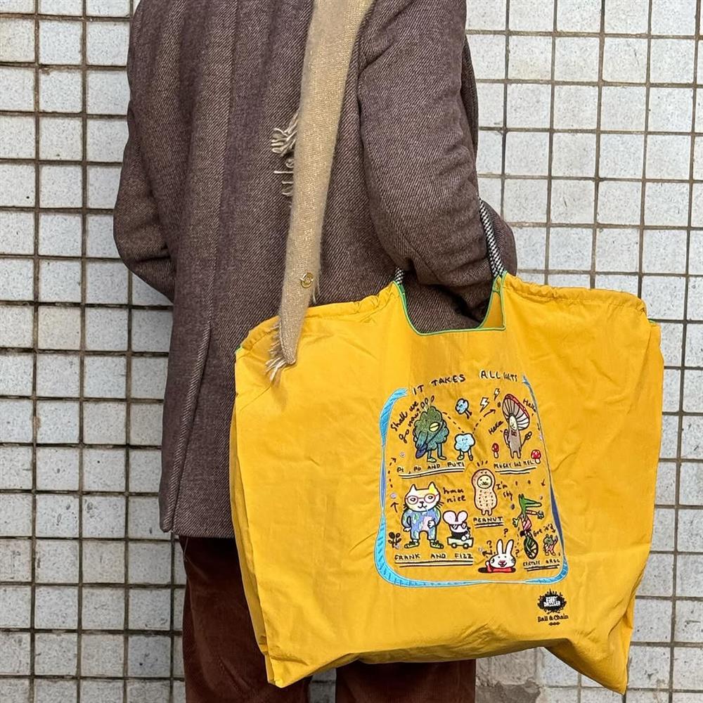 Japanese-Style Ball Chain Embroidered Yellow Eco-Friendly Shopping Bag Crossbody Canvas Bag 2025 Single Shoulder Commuter Bag