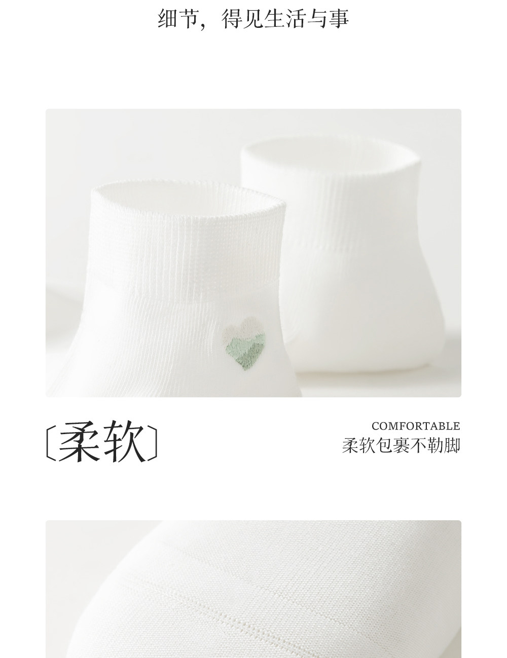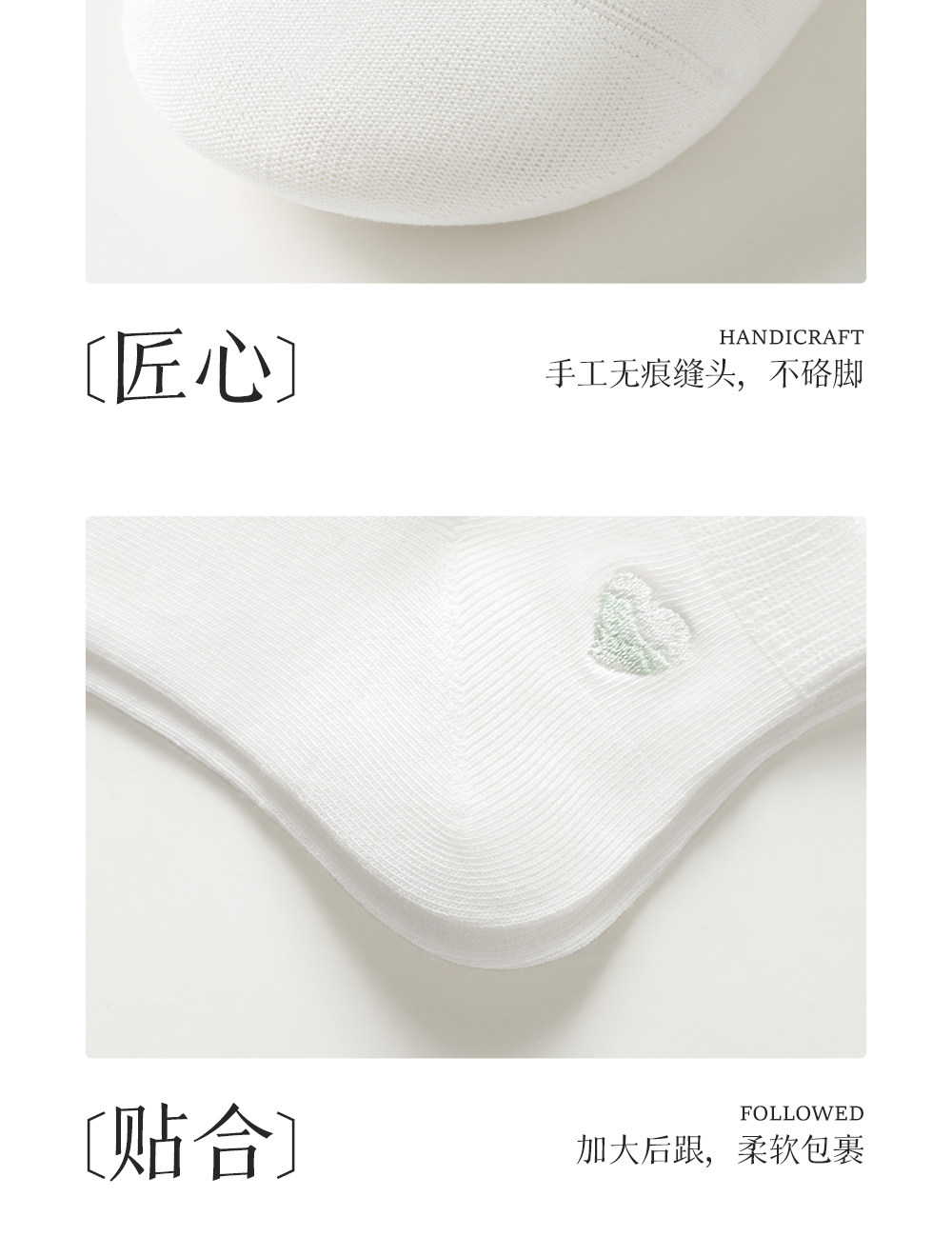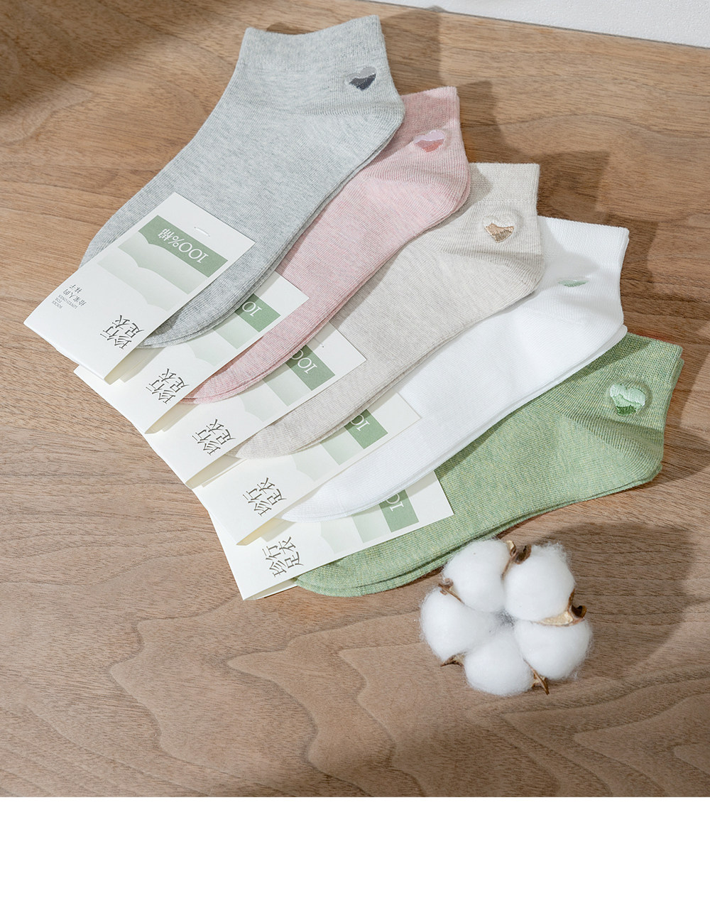 100% Cotton Socks for Women, Pure Cotton Short Socks, Spring and Summer Thin Style, Heart Embroidery, White All-Cotton Socks for Ladies, Non-Slip and Won'T Slip Off the Heel