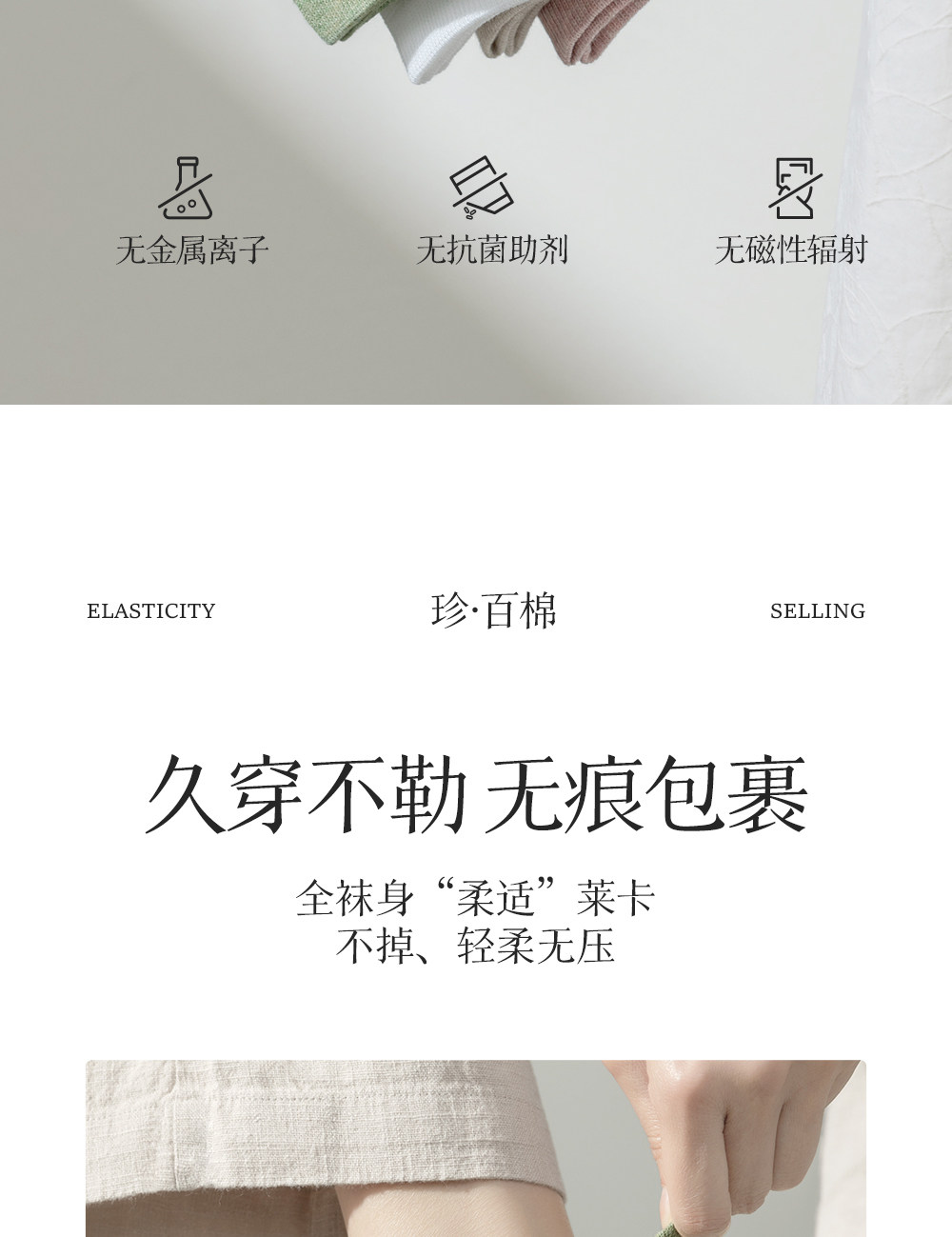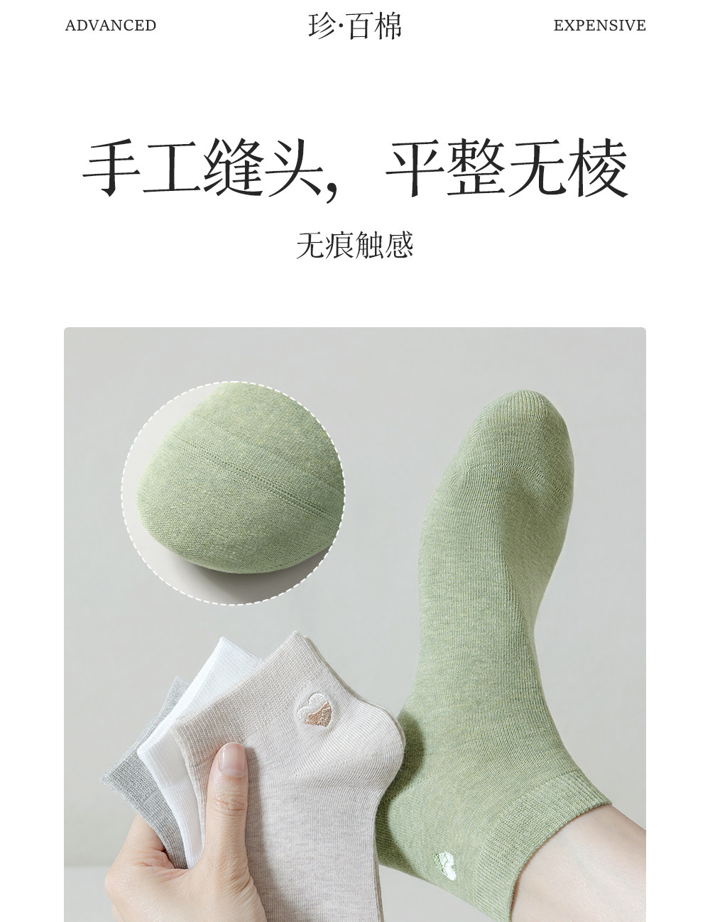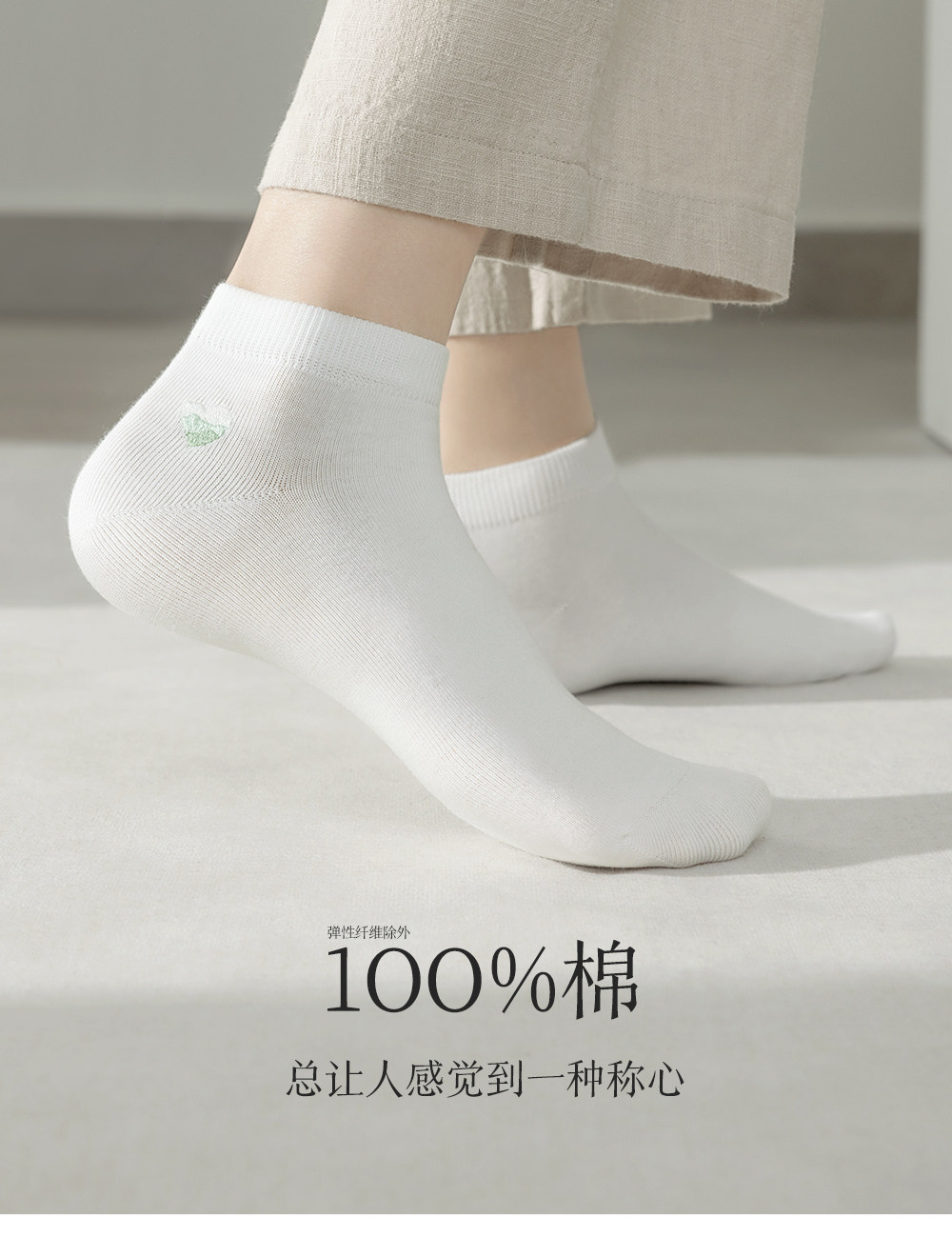 100% Cotton Socks for Women, Pure Cotton Short Socks, Spring and Summer Thin Style, Heart Embroidery, White All-Cotton Socks for Ladies, Non-Slip and Won'T Slip Off the Heel