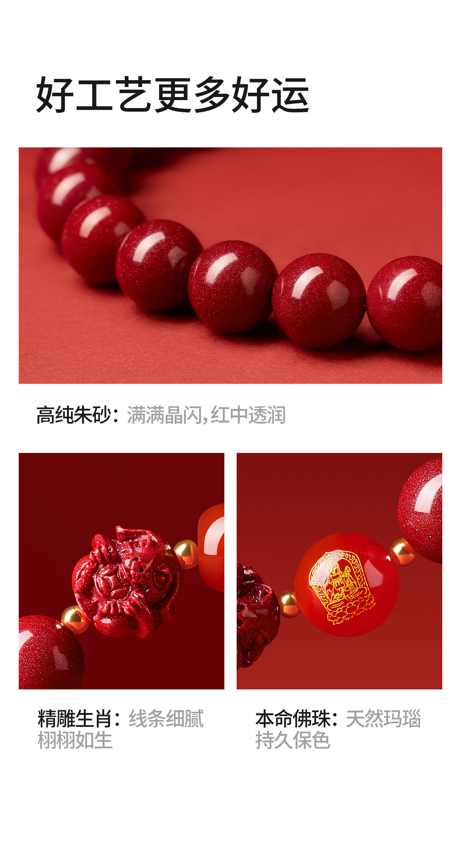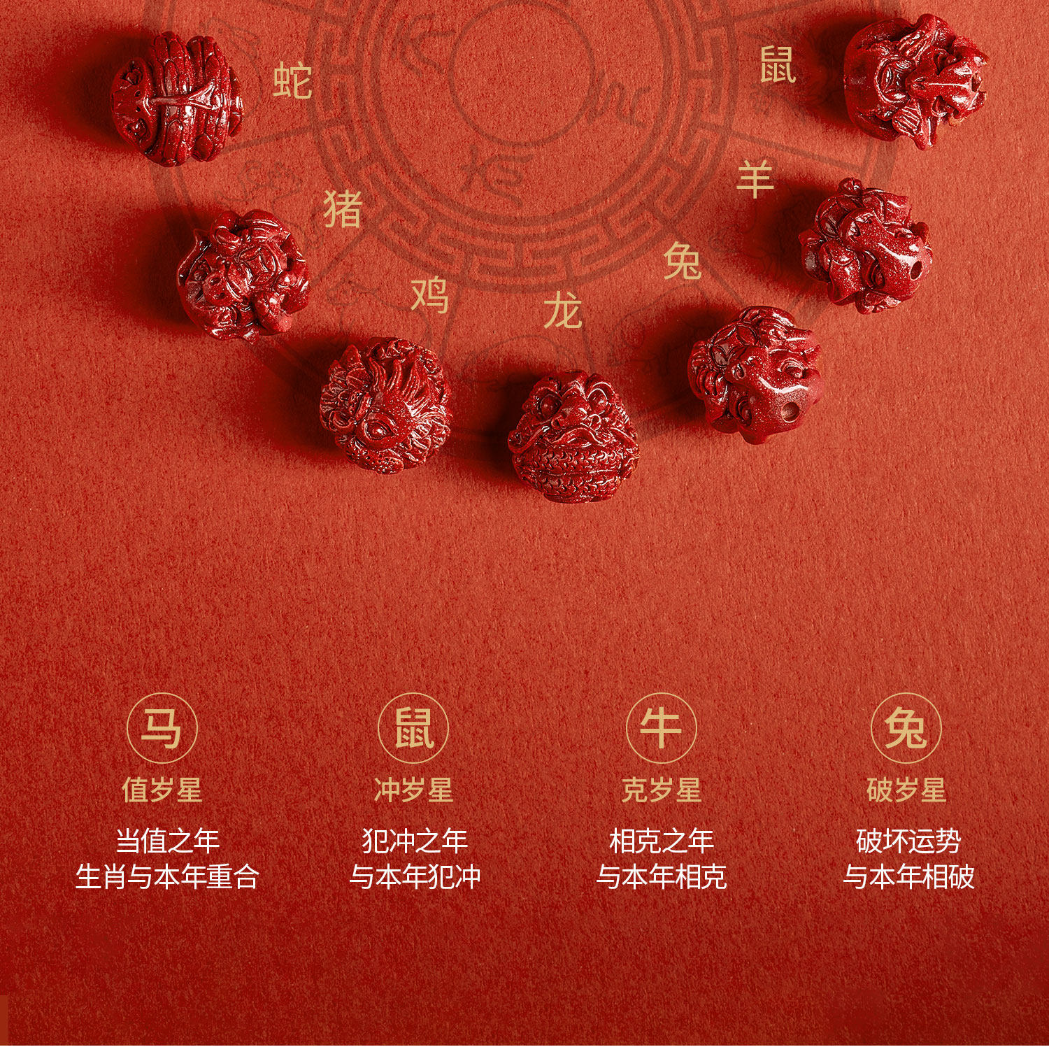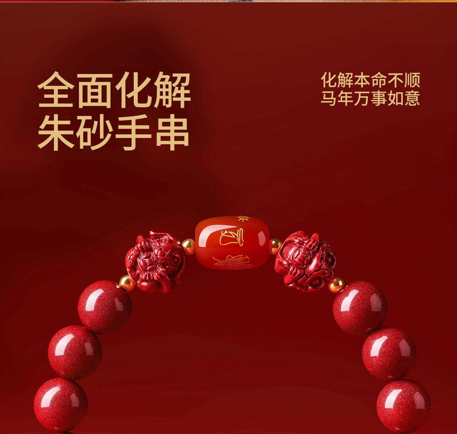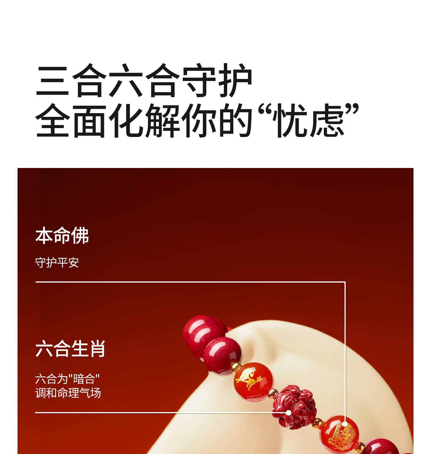 Putuo Mountain 2026 Bracelet for the Year of Birth, Cinnabar Bracelet for the Zodiac Signs of Pig, Tiger, and Monkey, Three Harmonies and Six Harmonies Gift