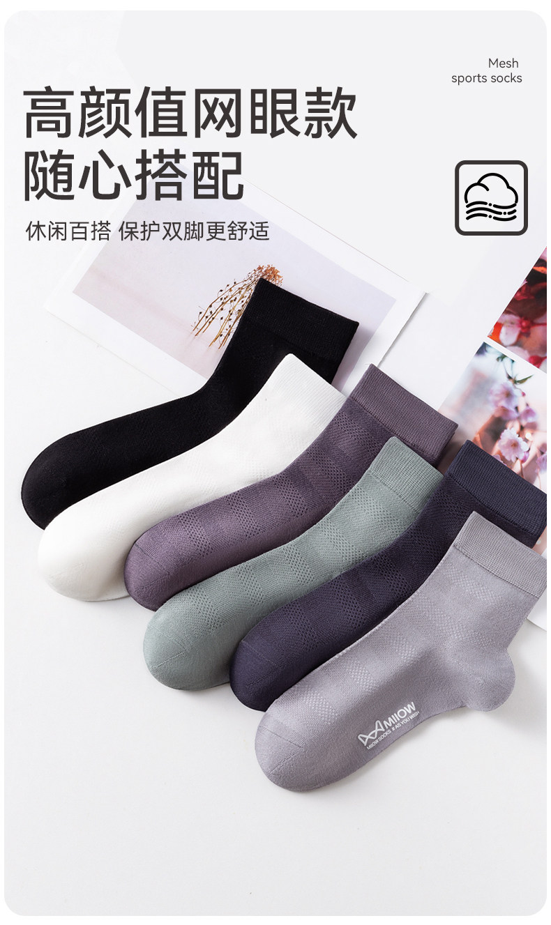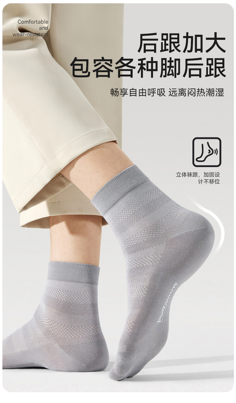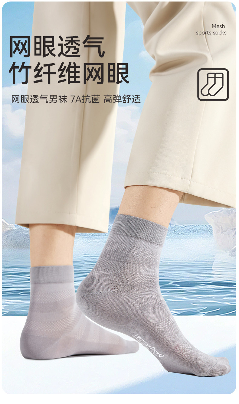 【7A Antibacterial】Catman Socks Men's Summer Mid-Calf Socks Bamboo Fiber Mesh Breathable Odor-Resistant Thin Long Socks