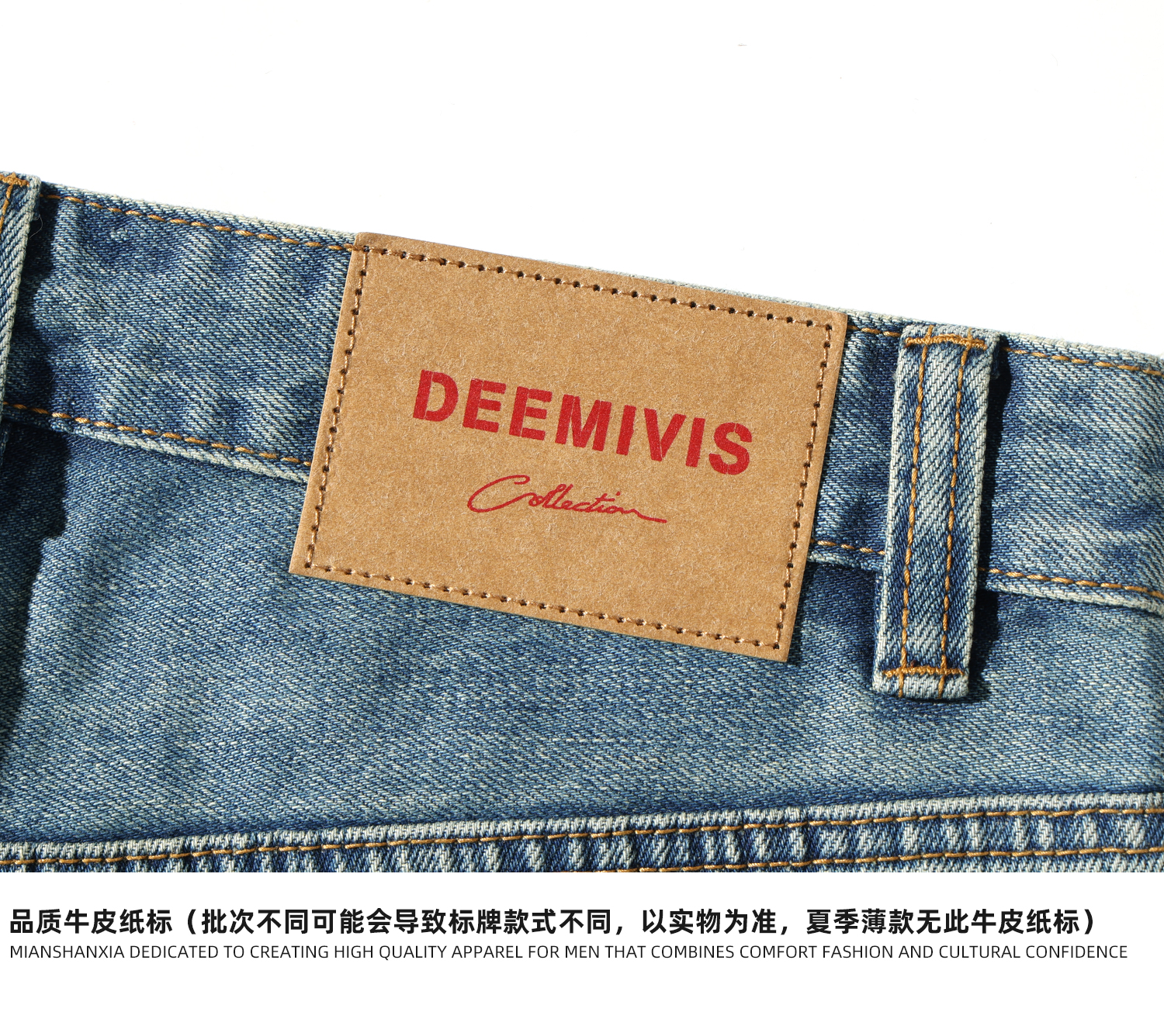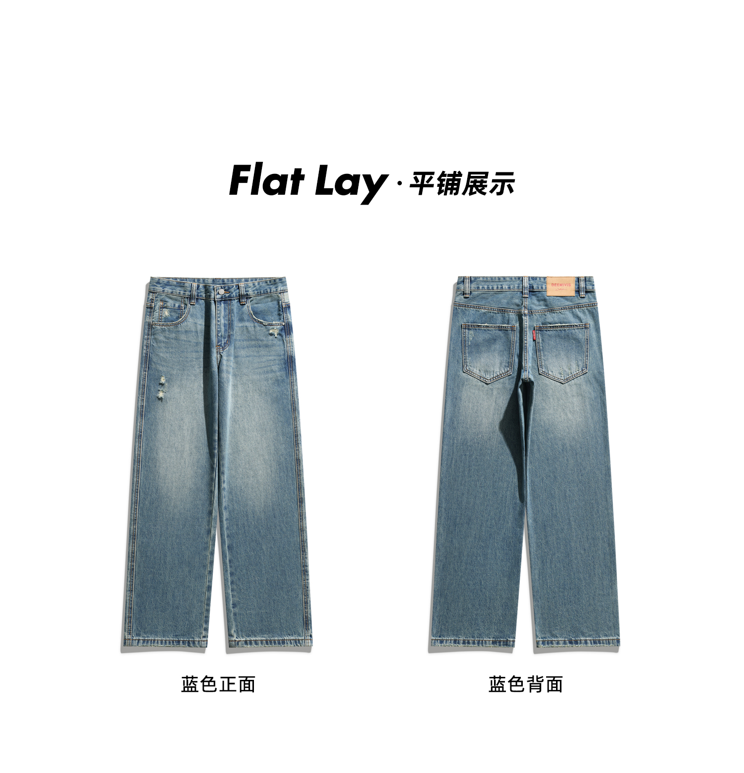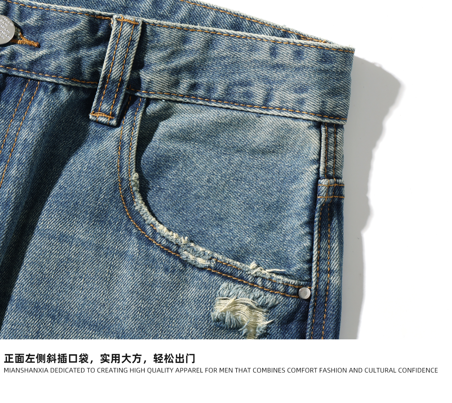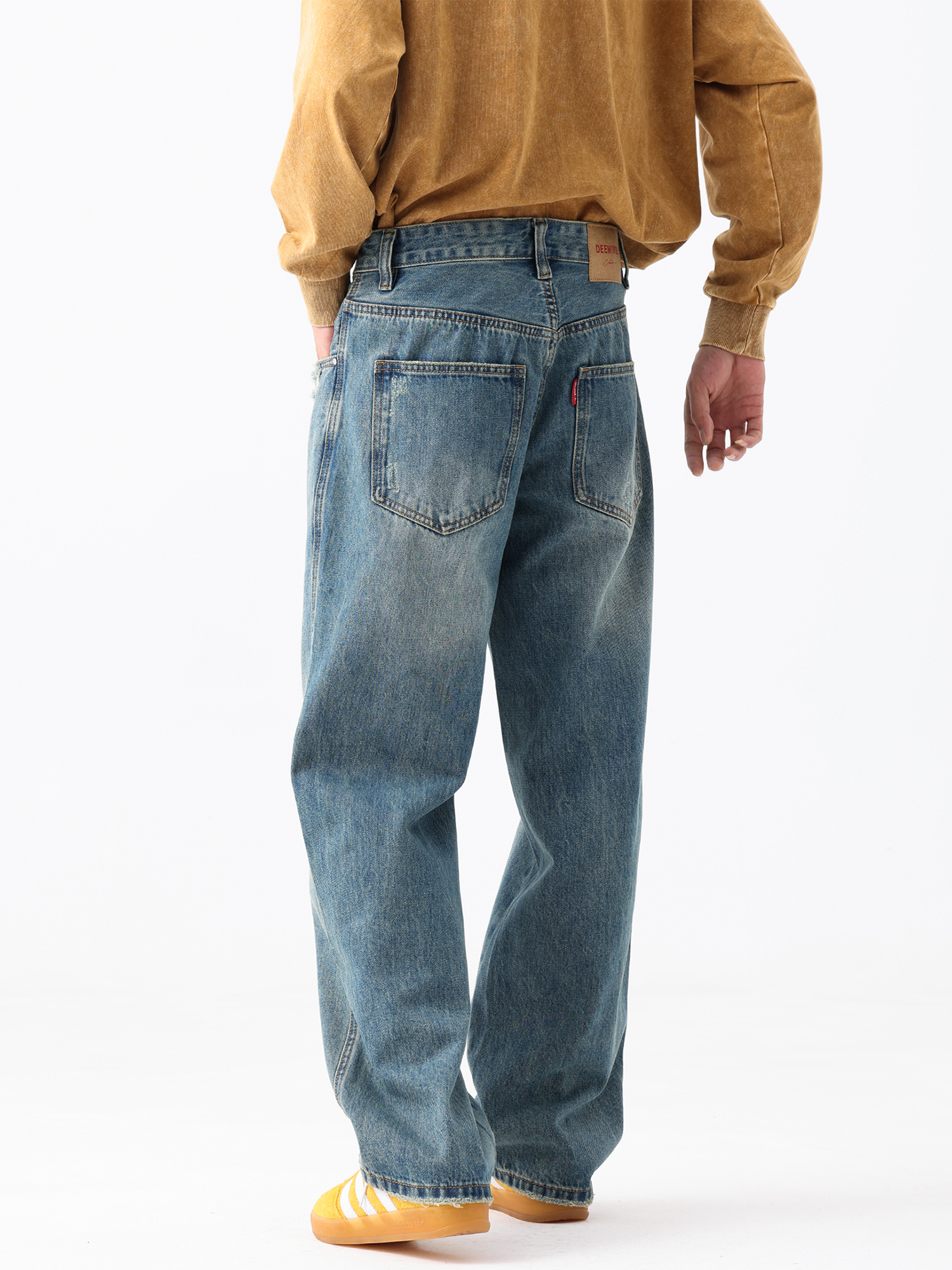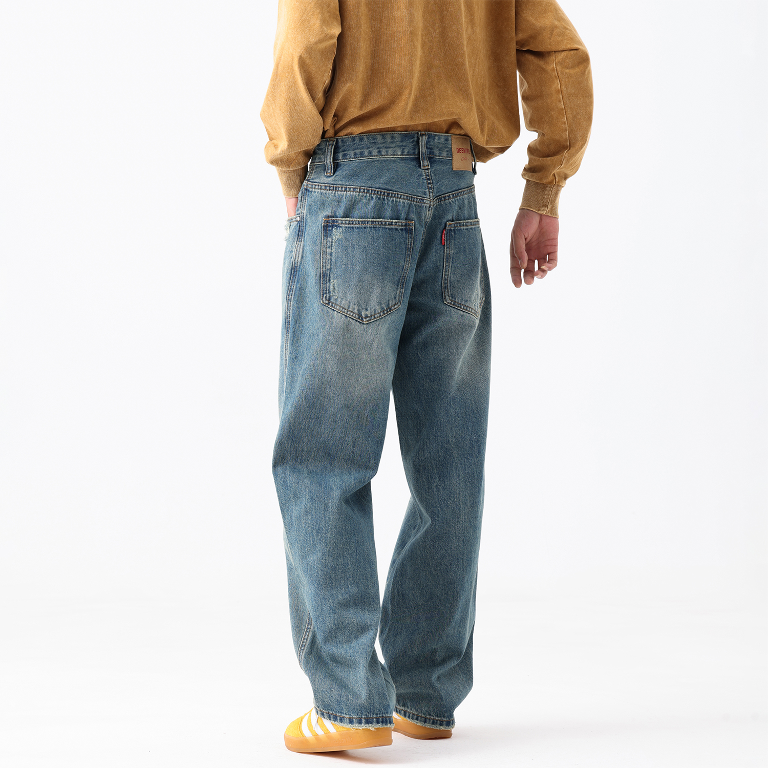 Cotton Mountain Autumn Blue Jeans for Men, Loose Straight Wide-Leg, Plus Size, Vintage New Tang Washed Casual Pants