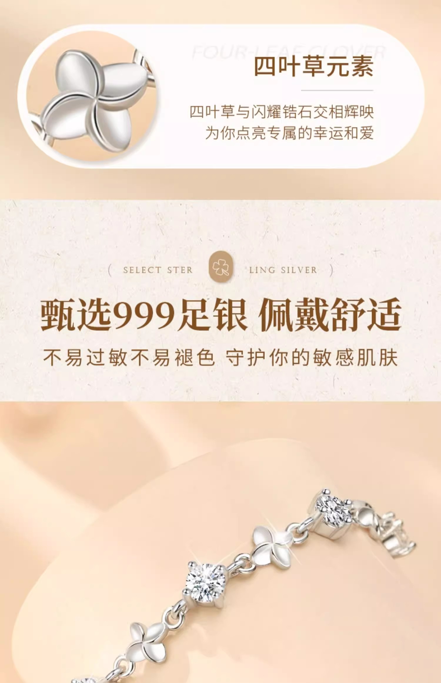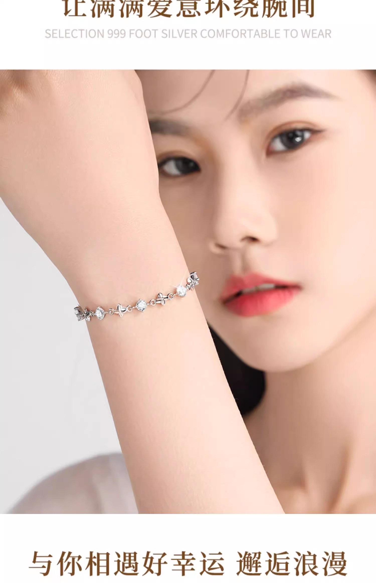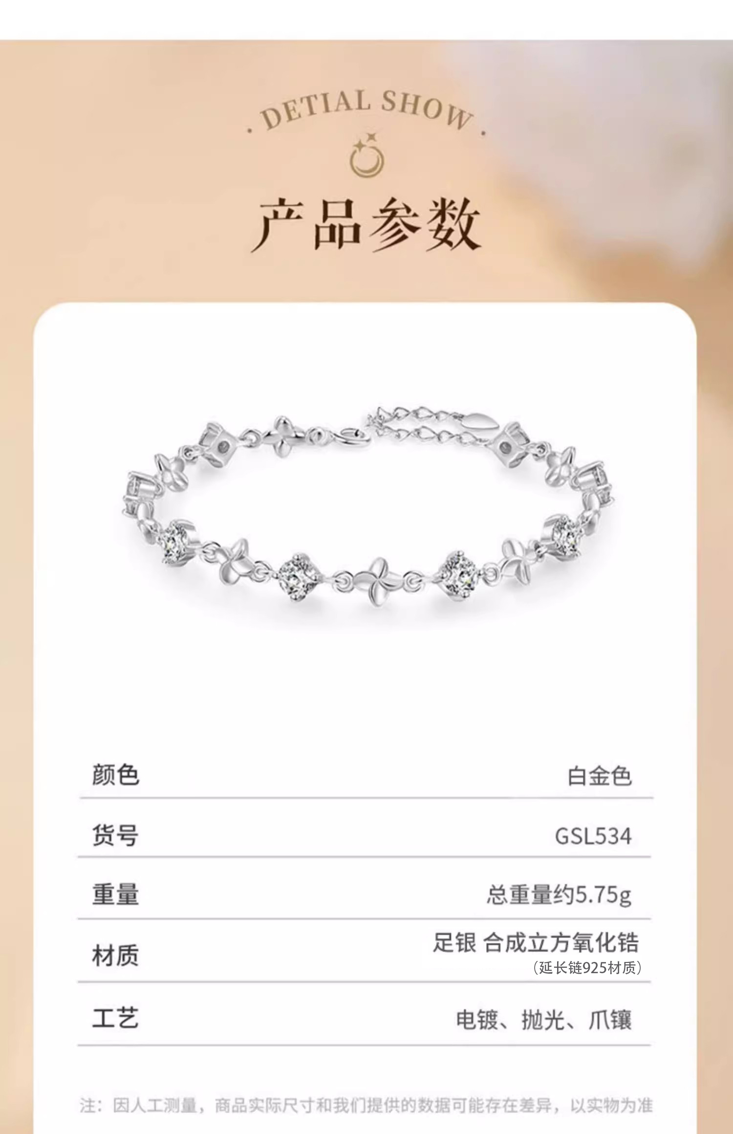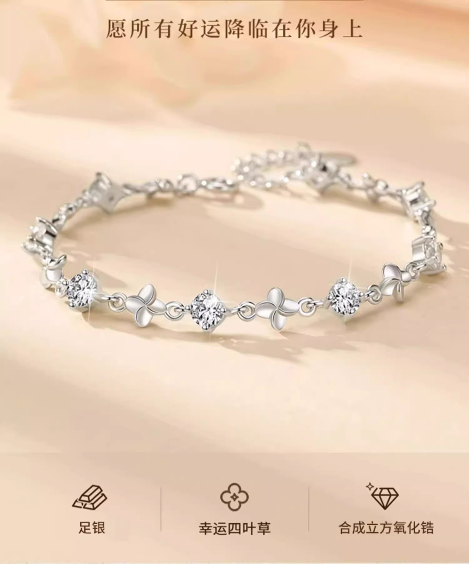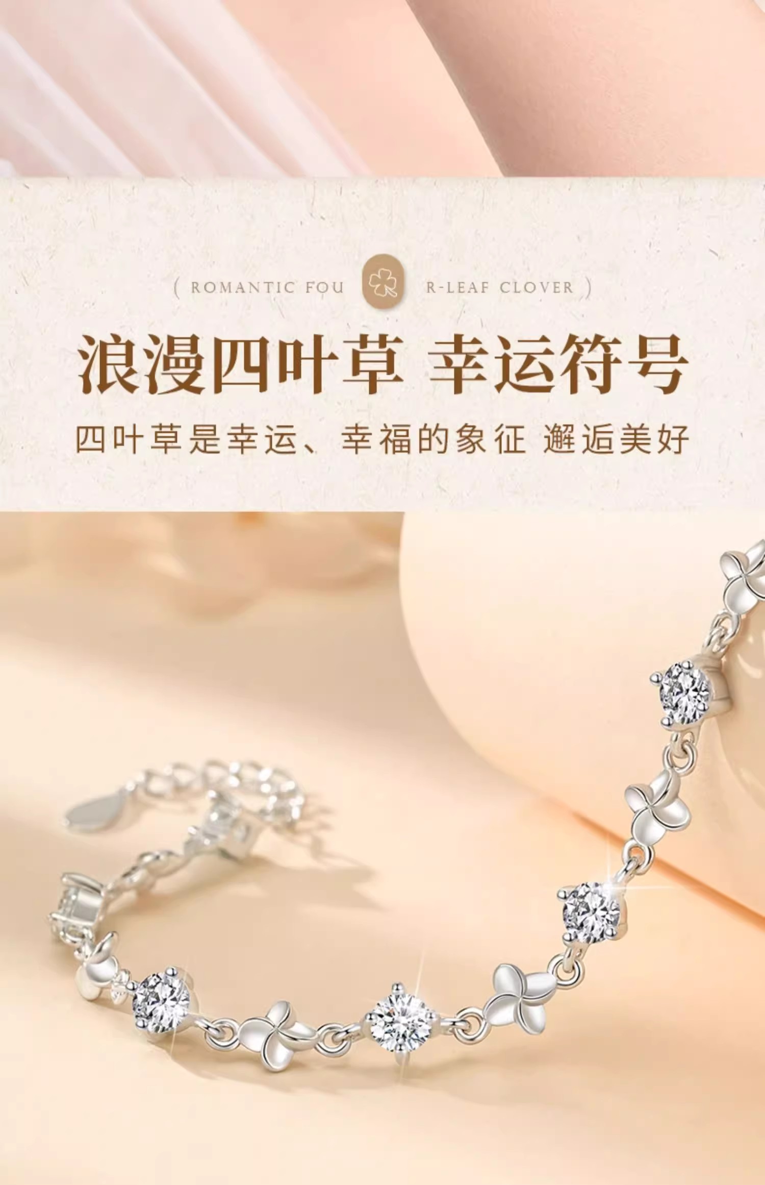 S999 Sterling Silver Four-Leaf Clover Bracelet for Women 2025 New Popular Bracelet for Women Birthday Valentine's Day Gift for Girlfriend