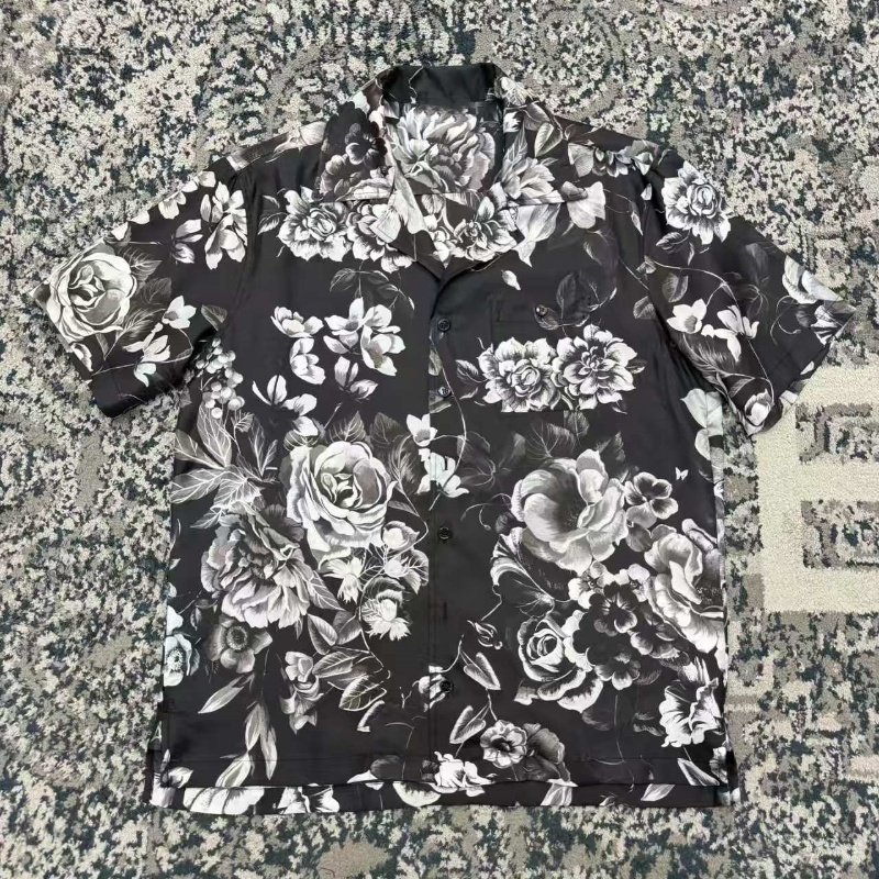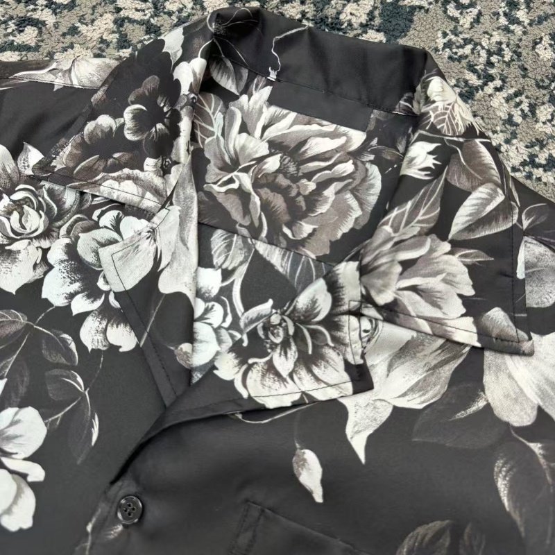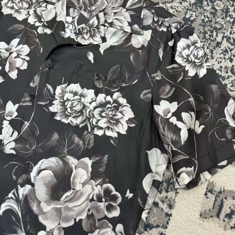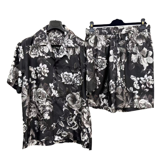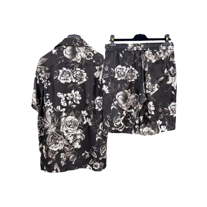 100% Mulberry Silk Suit European and American Style 25 Summer Floral Print Vintage Silk Twill Short-Sleeved Shirt Two-Piece Set