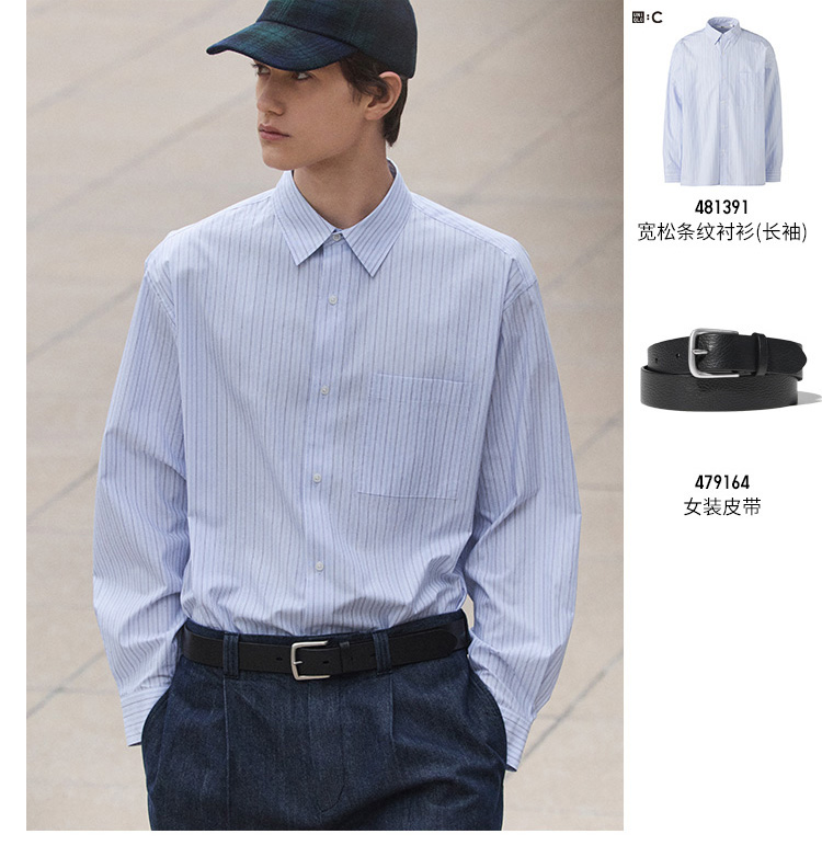 UNIQLO Cooperation/Men's and Women's Loose Stripes Shirt/Long sleeves Shirt Casual 25 Fall and winter New arrival 481391